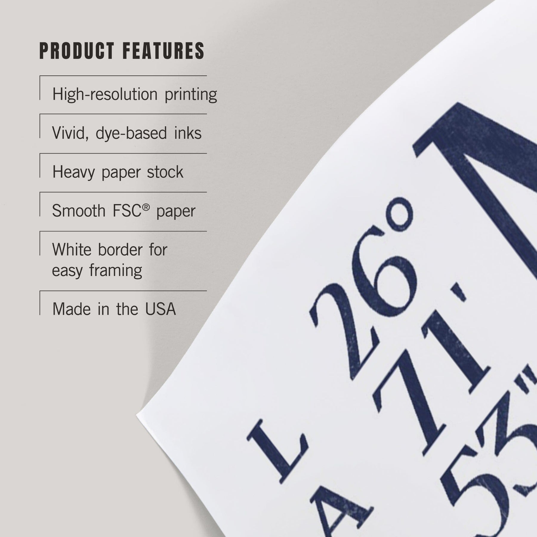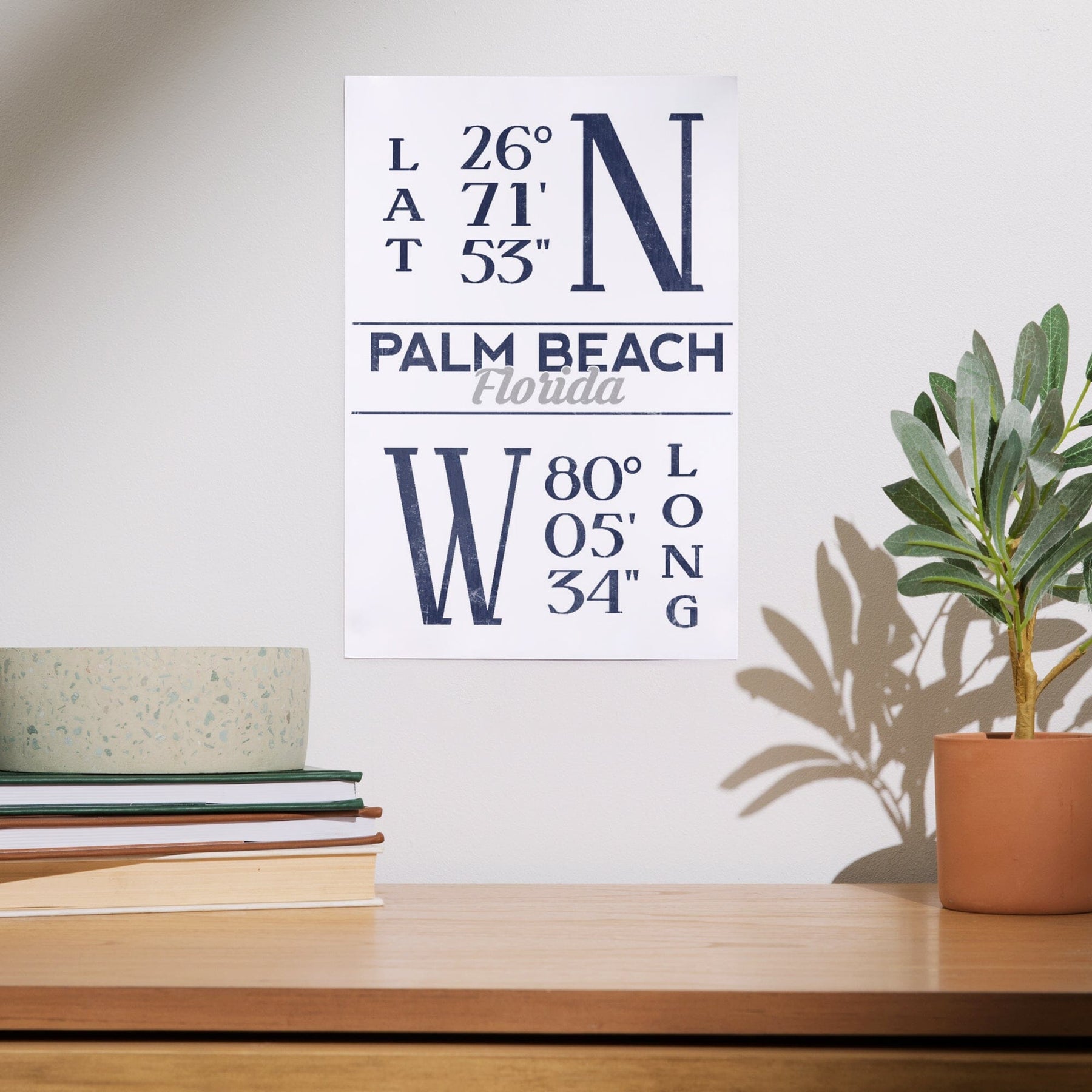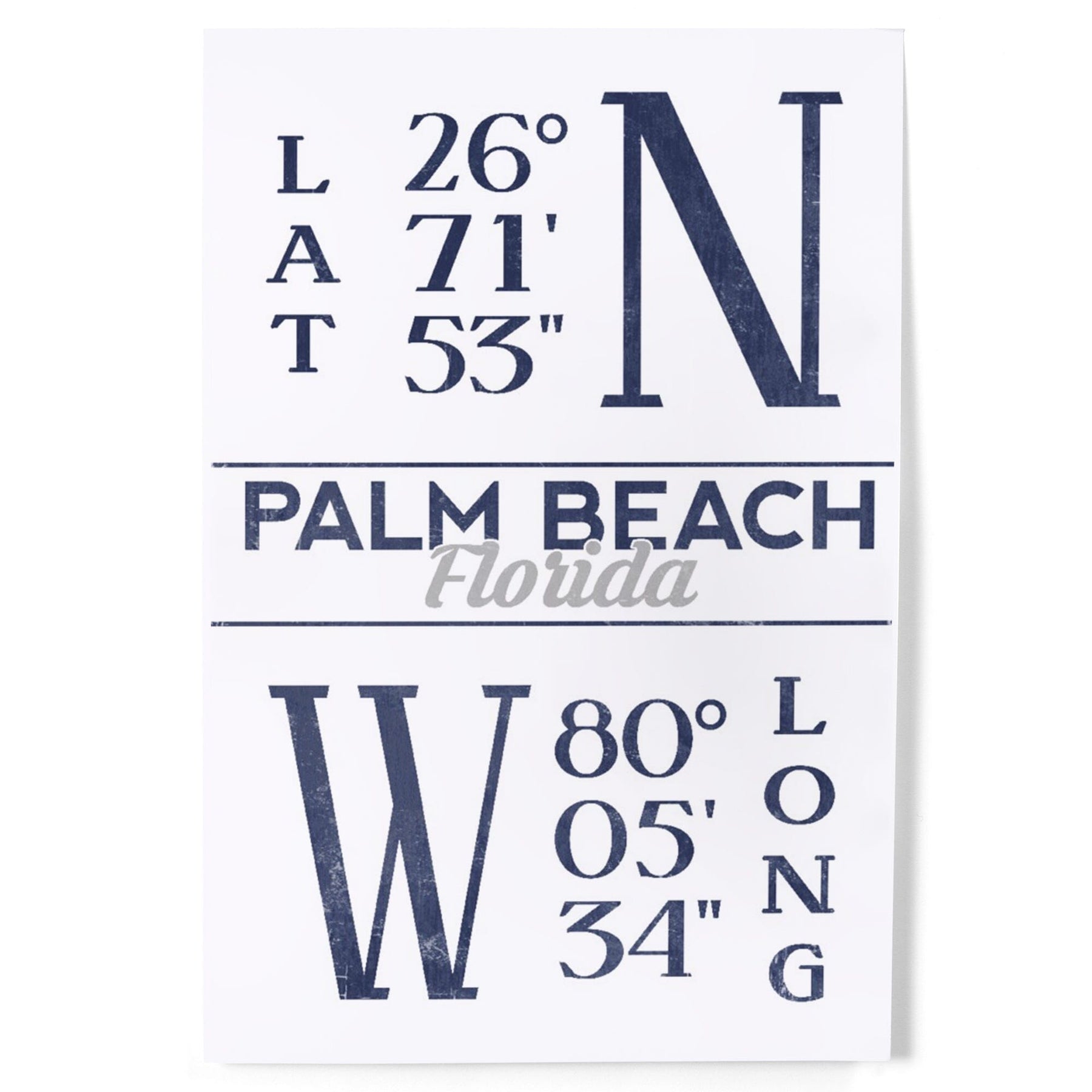 Palm Beach, Florida, Latitude and Longitude (Blue), Art & Giclee Prints Art Lantern Press