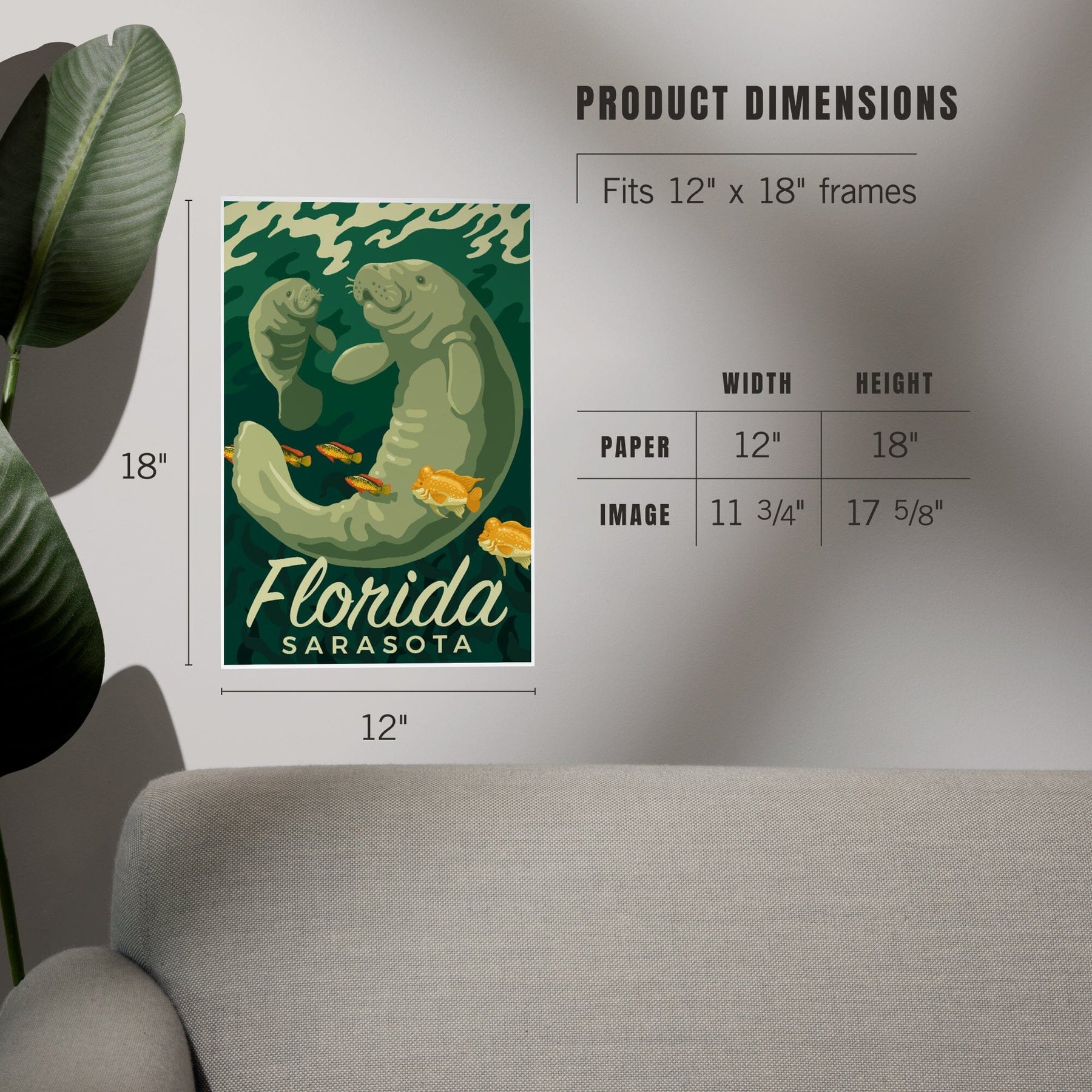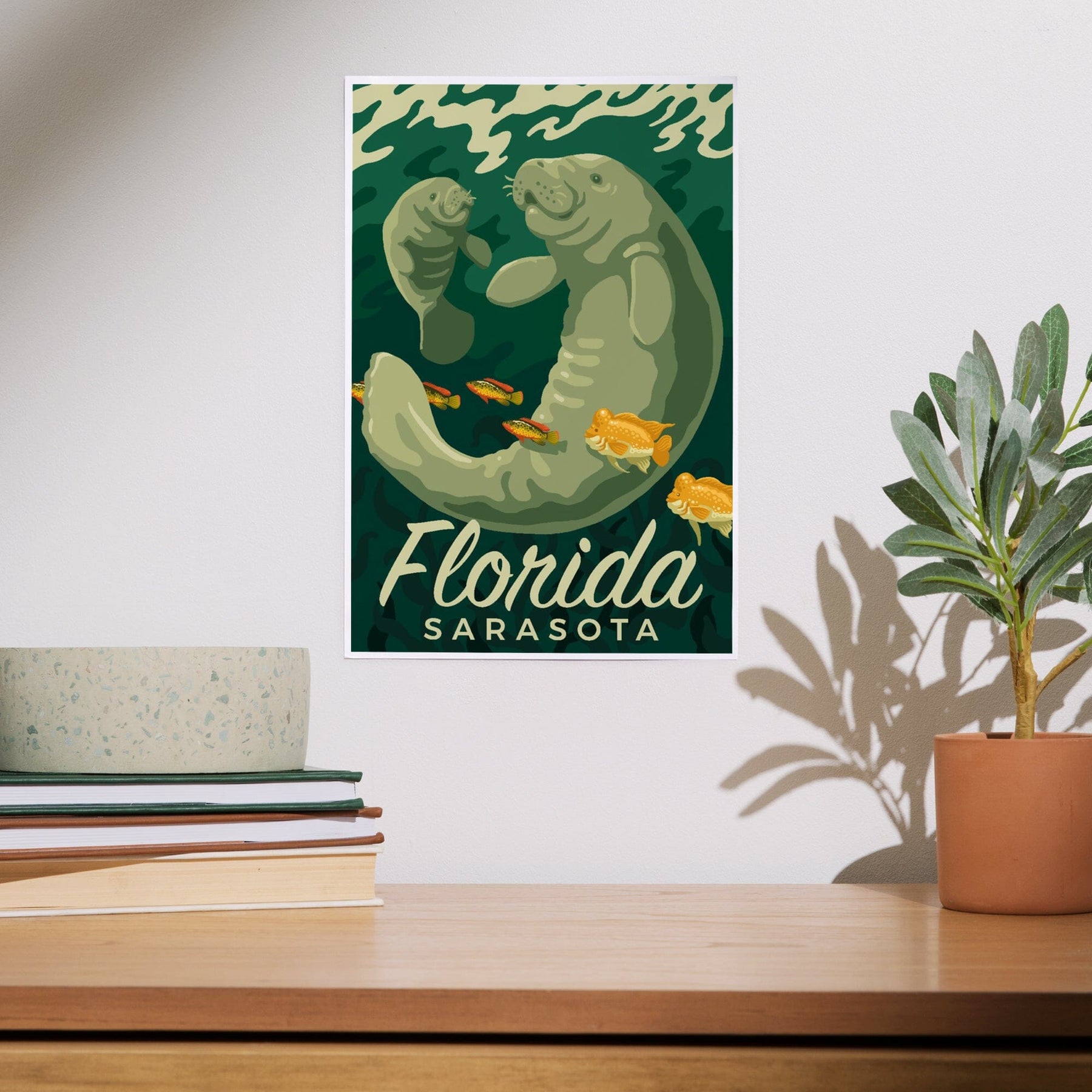Sarasota, Florida, Manatee and Calf Swimming, Art & Giclee Prints Art Lantern Press