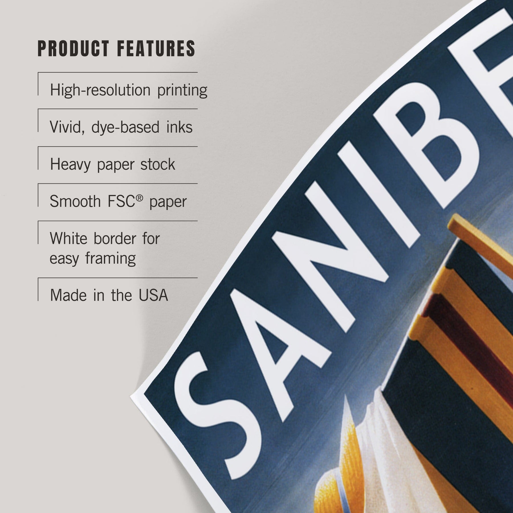 Sanibel, Florida, Beach Chair and Ball, Art & Giclee Prints Art Lantern Press