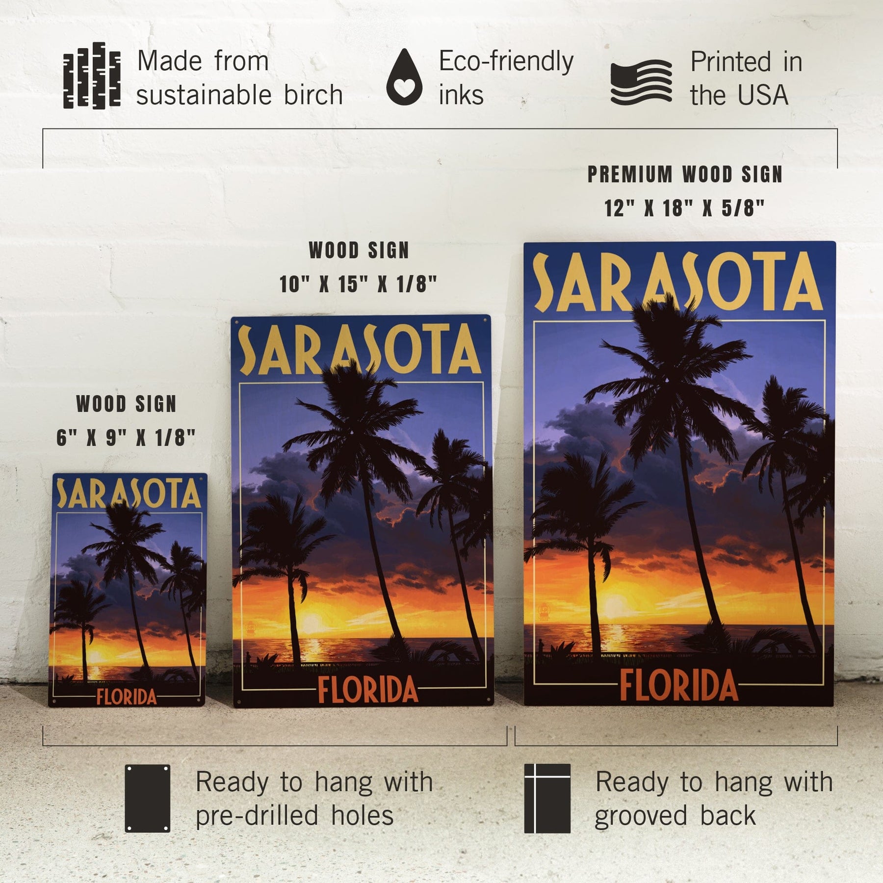 Sarasota, Florida, Palms & Sunset, Lantern Press Artwork, Wood Signs and Postcards