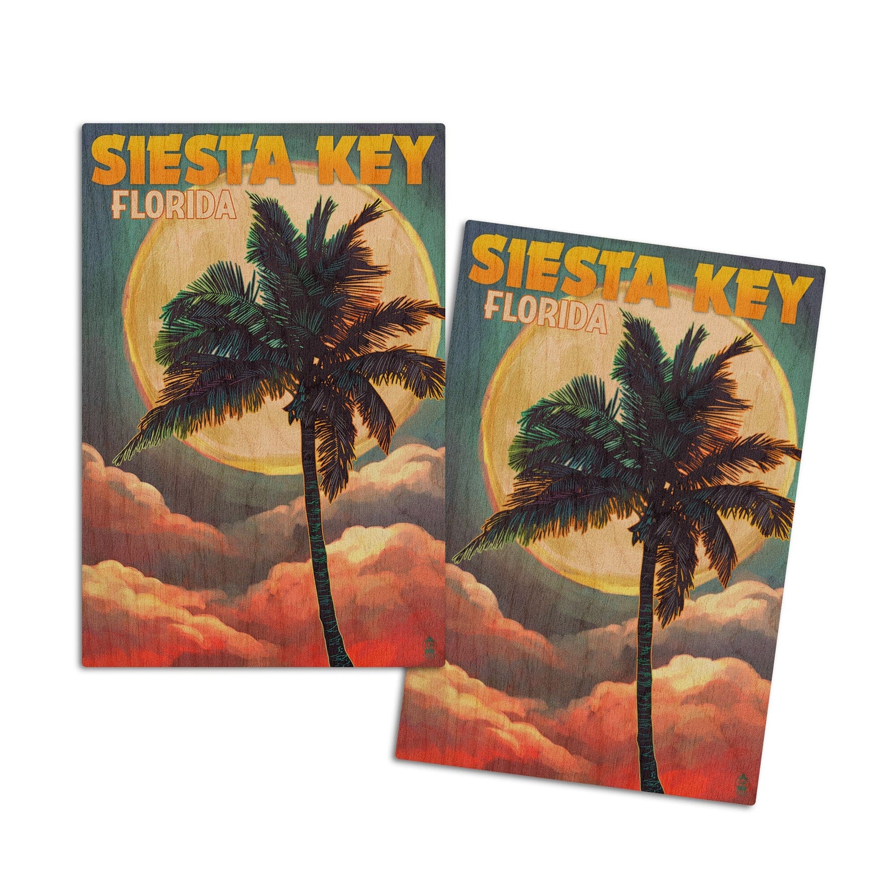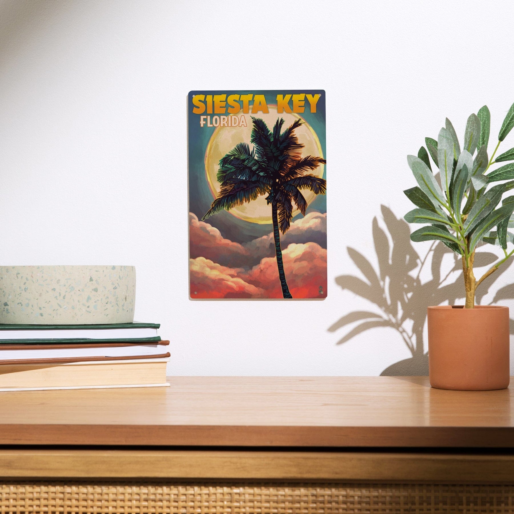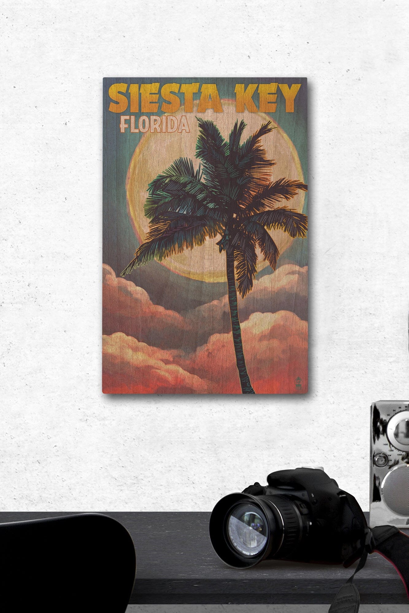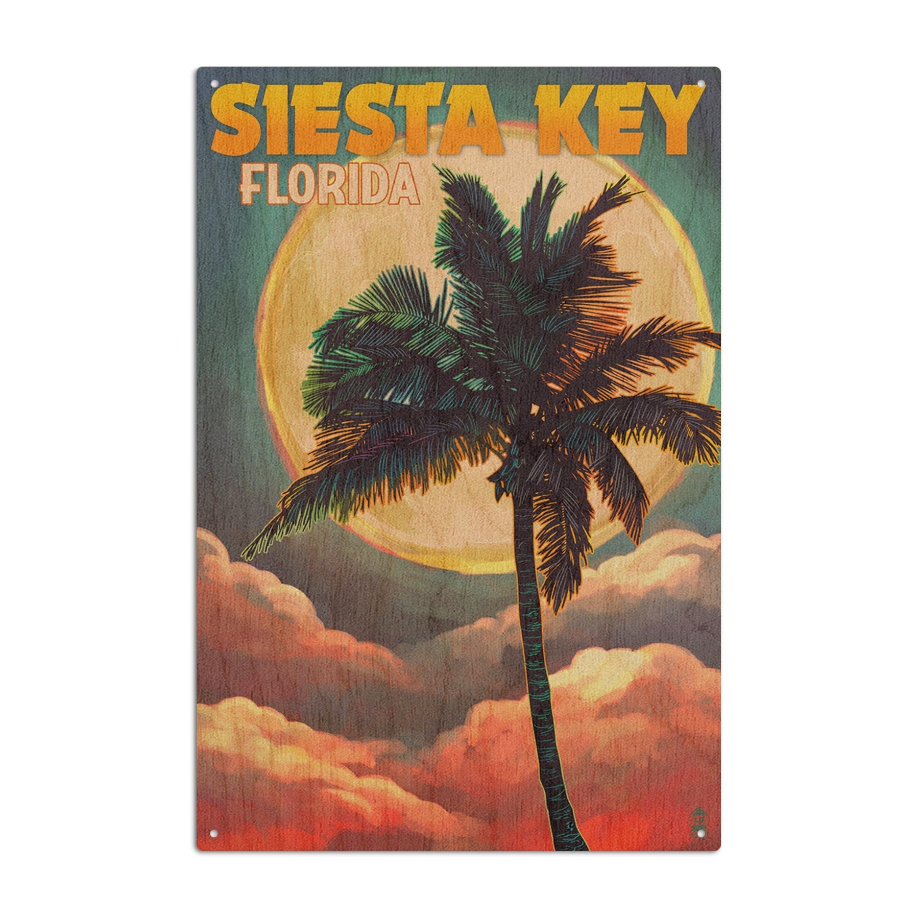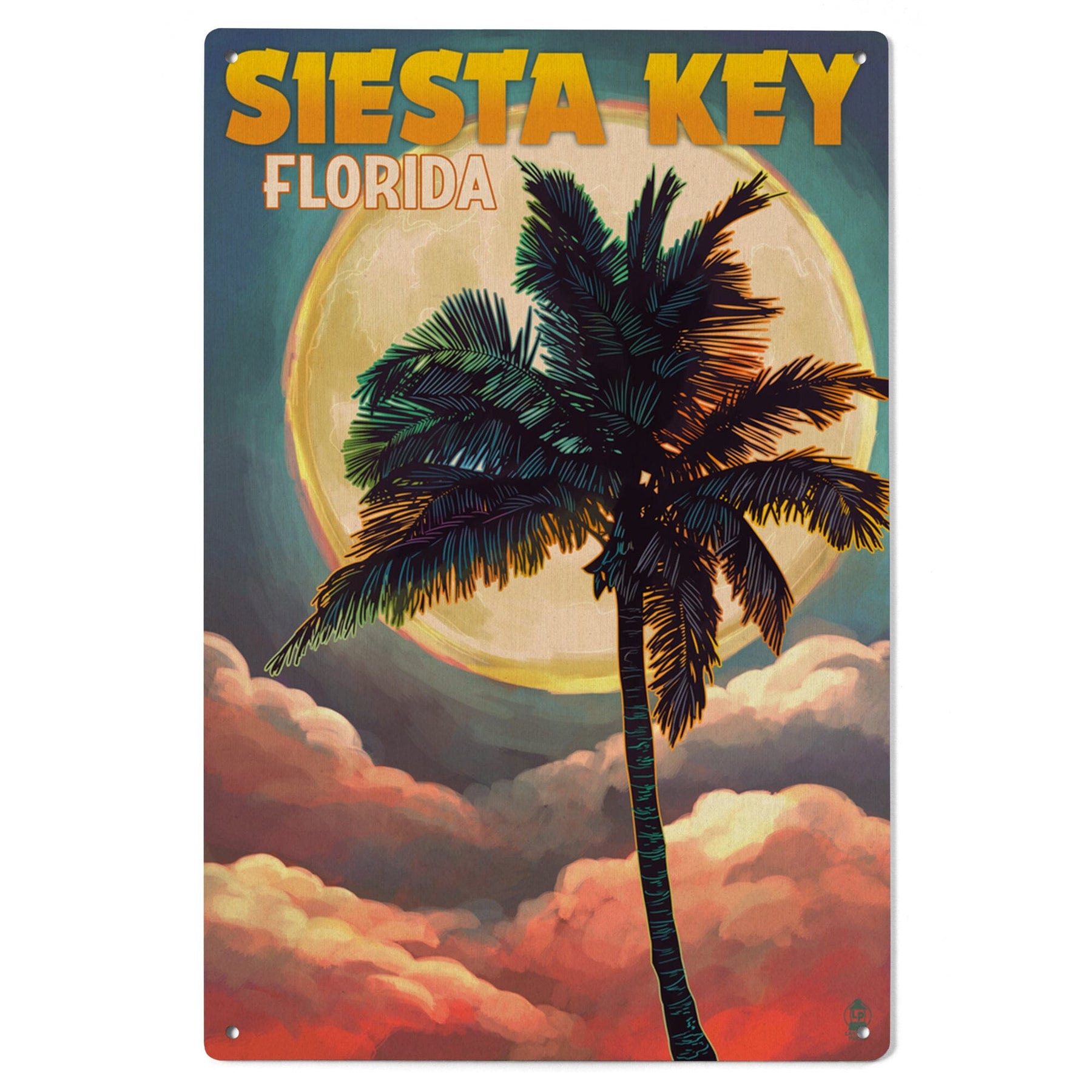 Siesta Key, Florida, Palm and Moon, Lantern Press Artwork, Wood Signs and Postcards