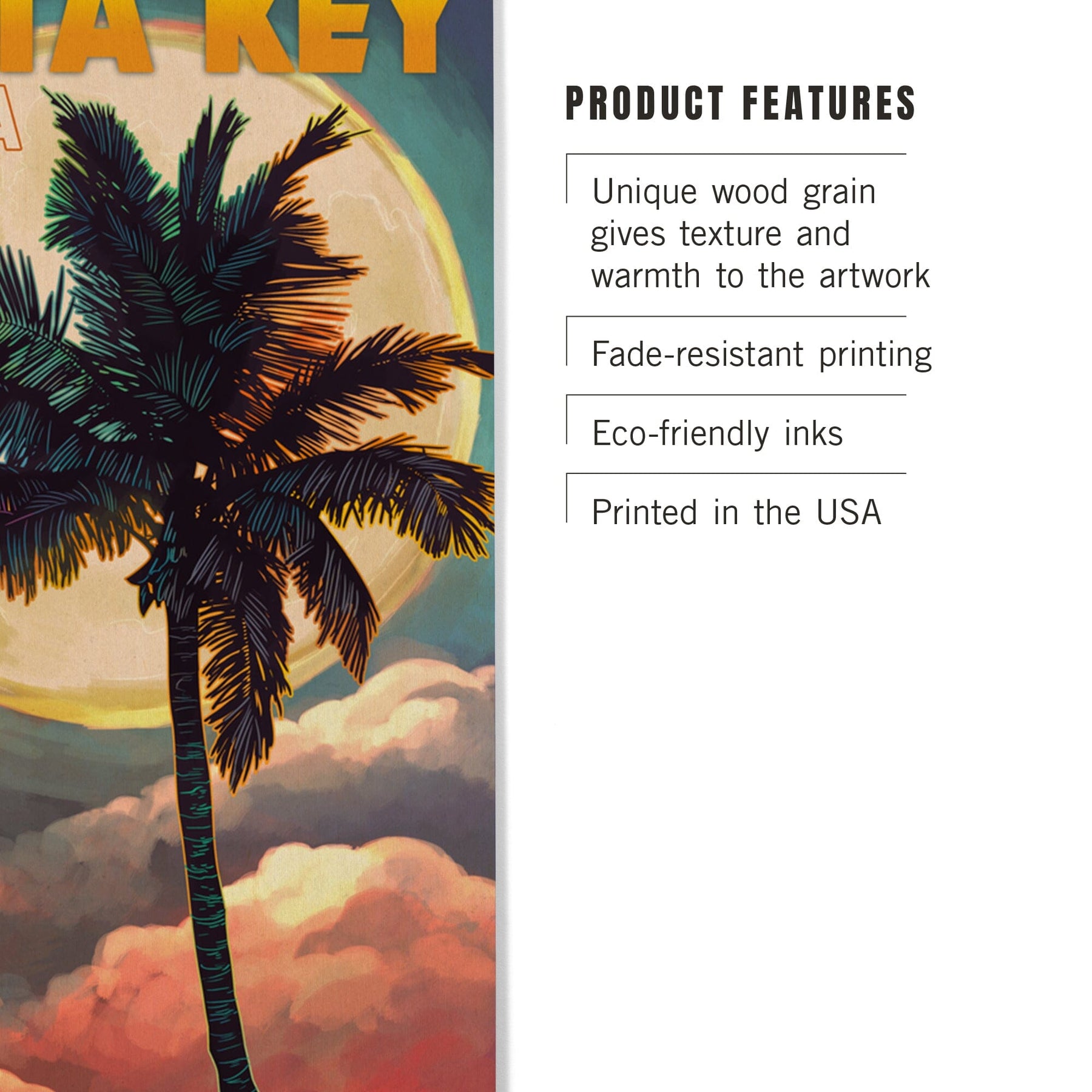Siesta Key, Florida, Palm and Moon, Lantern Press Artwork, Wood Signs and Postcards Wood Lantern Press