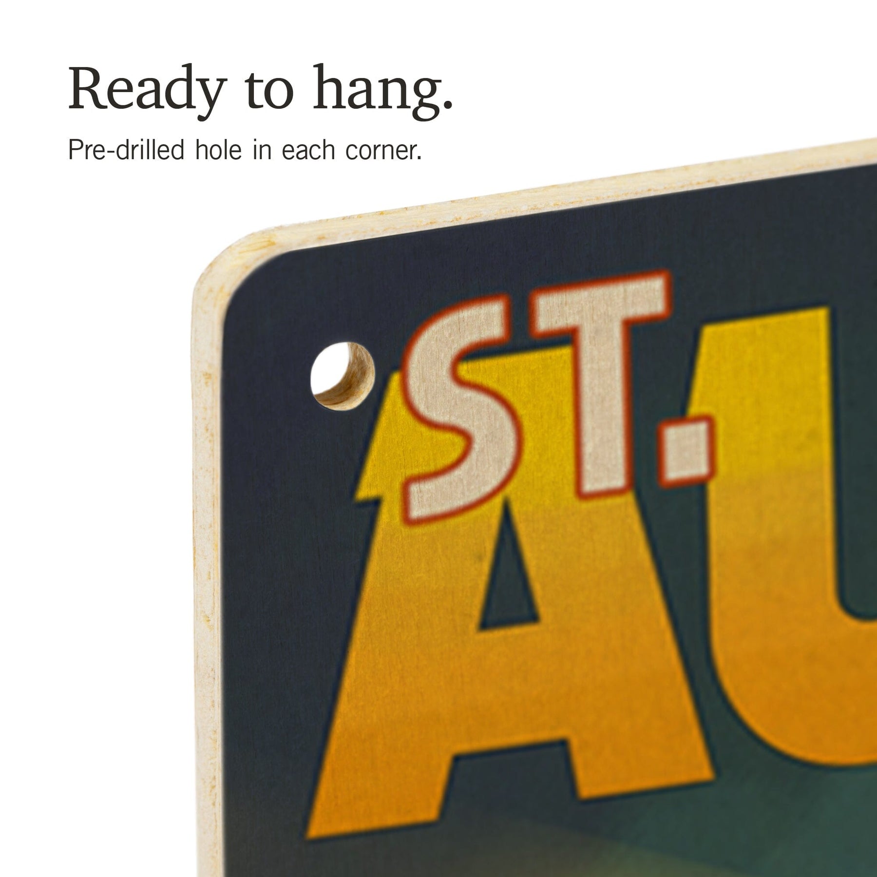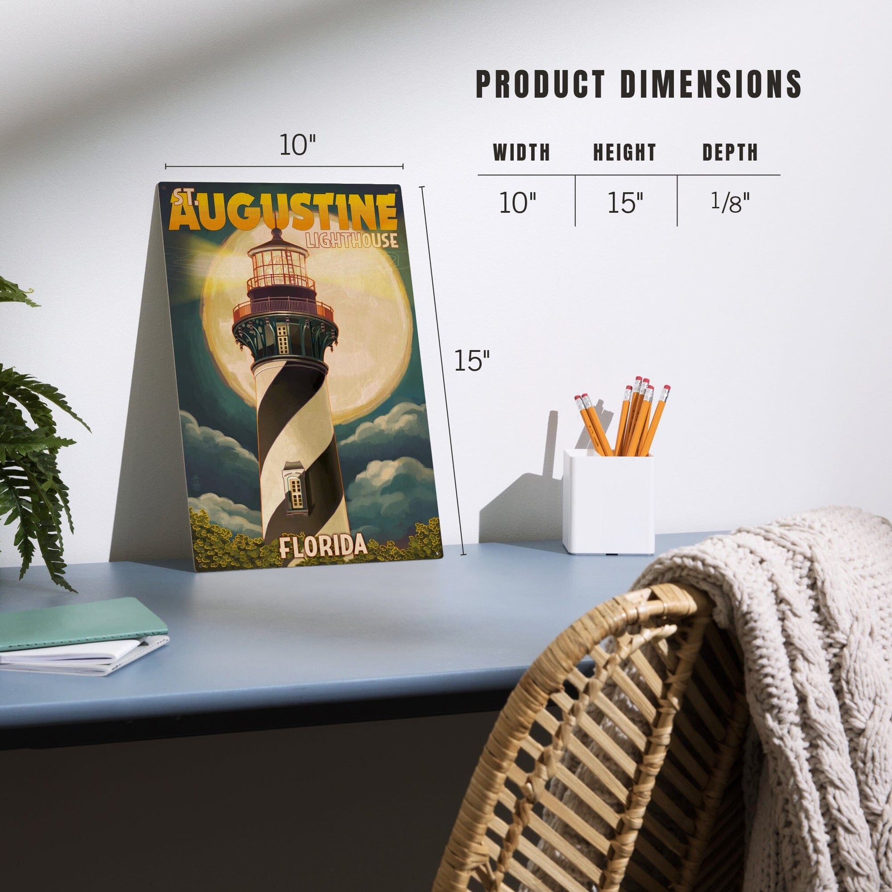 St. Augustine, Florida, Lighthouse & Moon, Lantern Press Artwork, Wood Signs and Postcards Wood Lantern Press