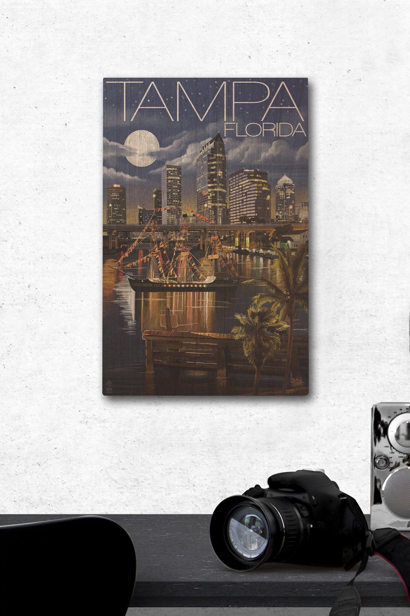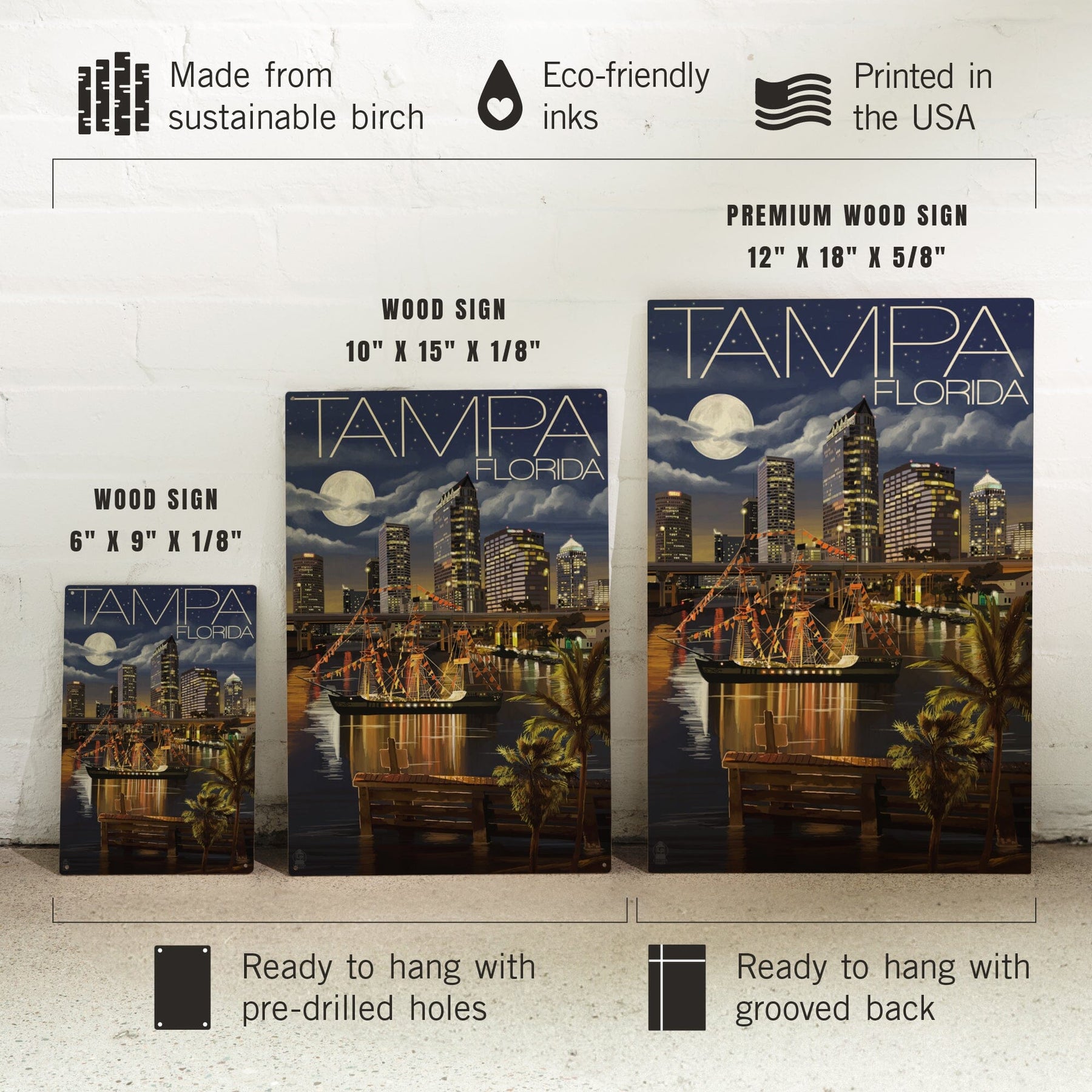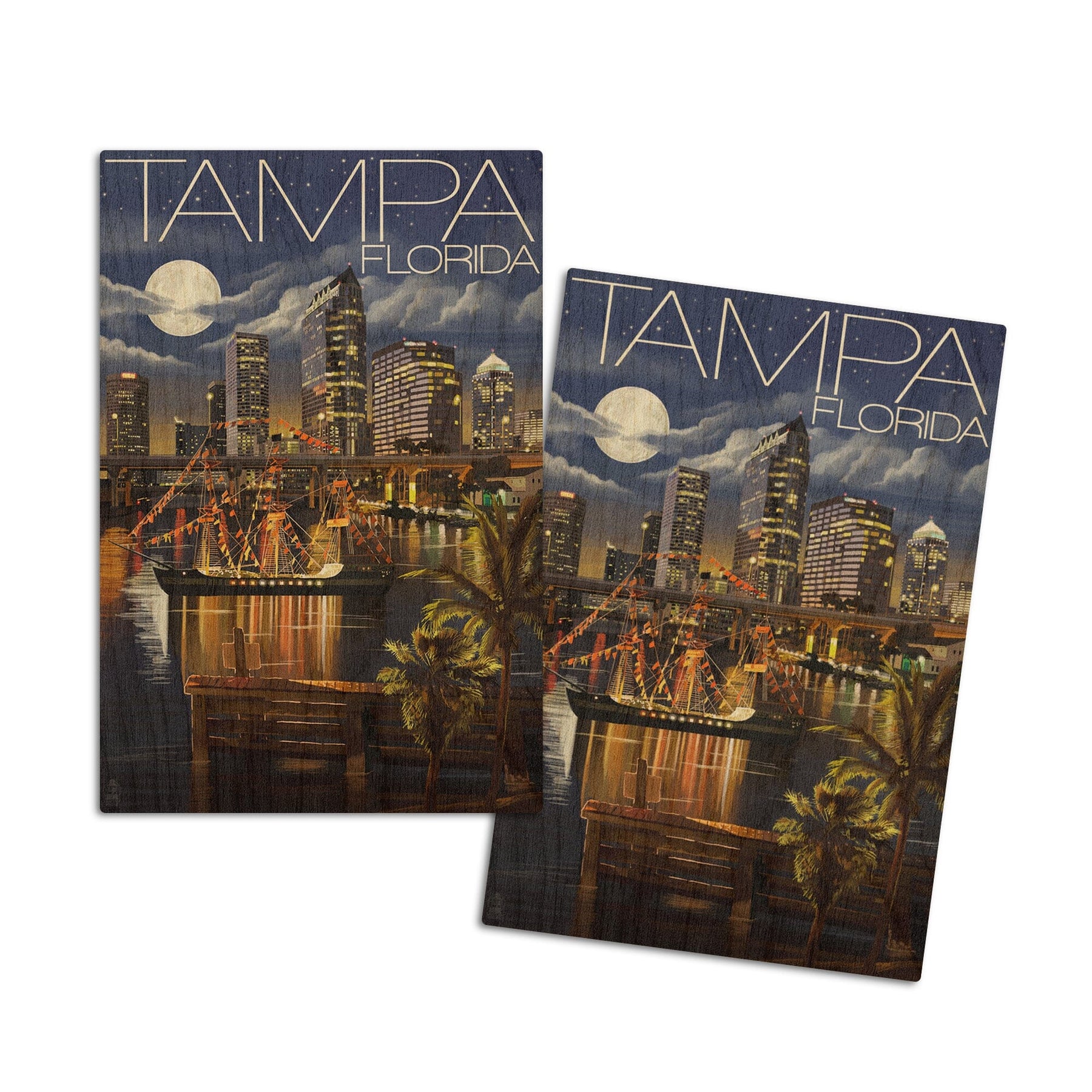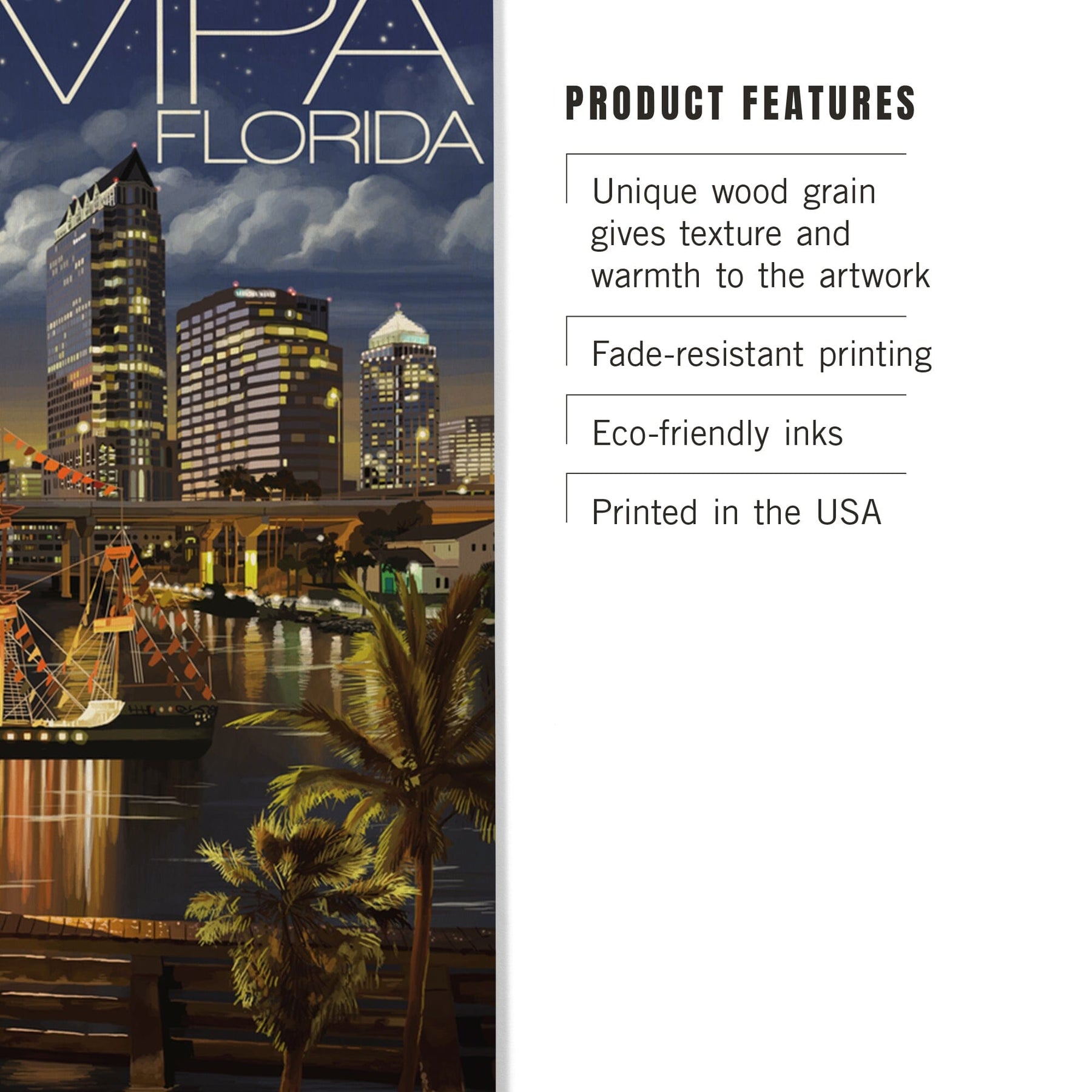 Tampa, Florida, Skyline at Night, Lantern Press Artwork, Wood Signs and Postcards Wood Lantern Press