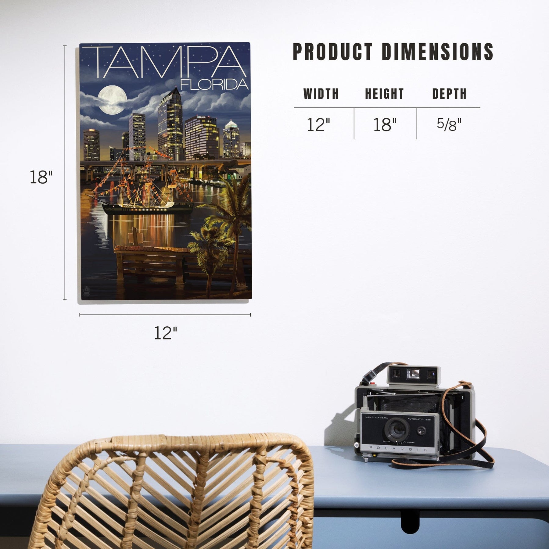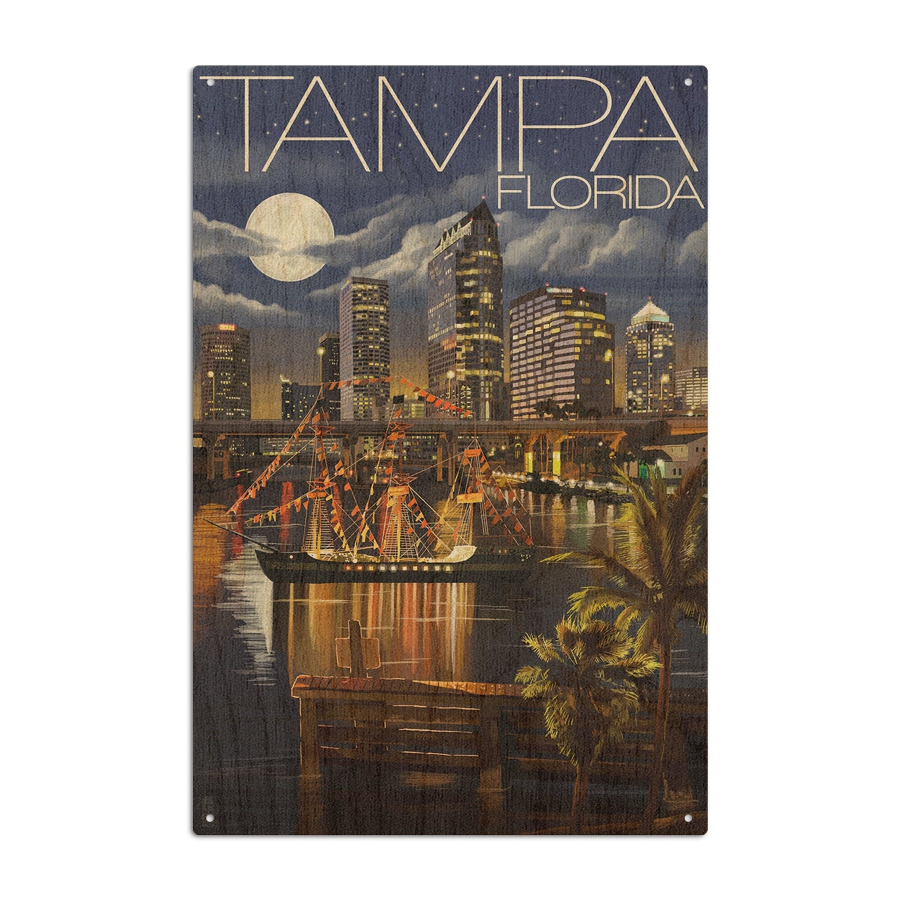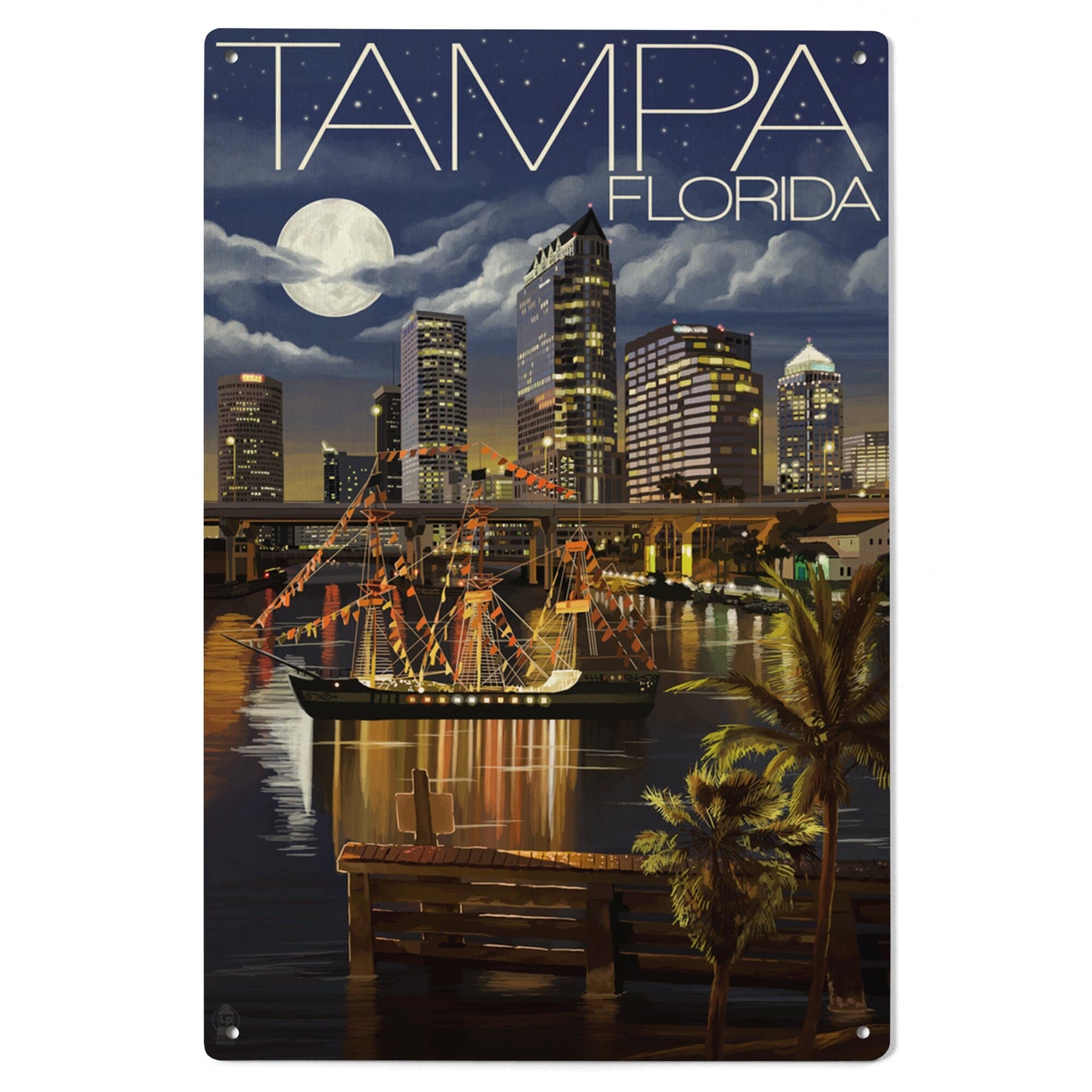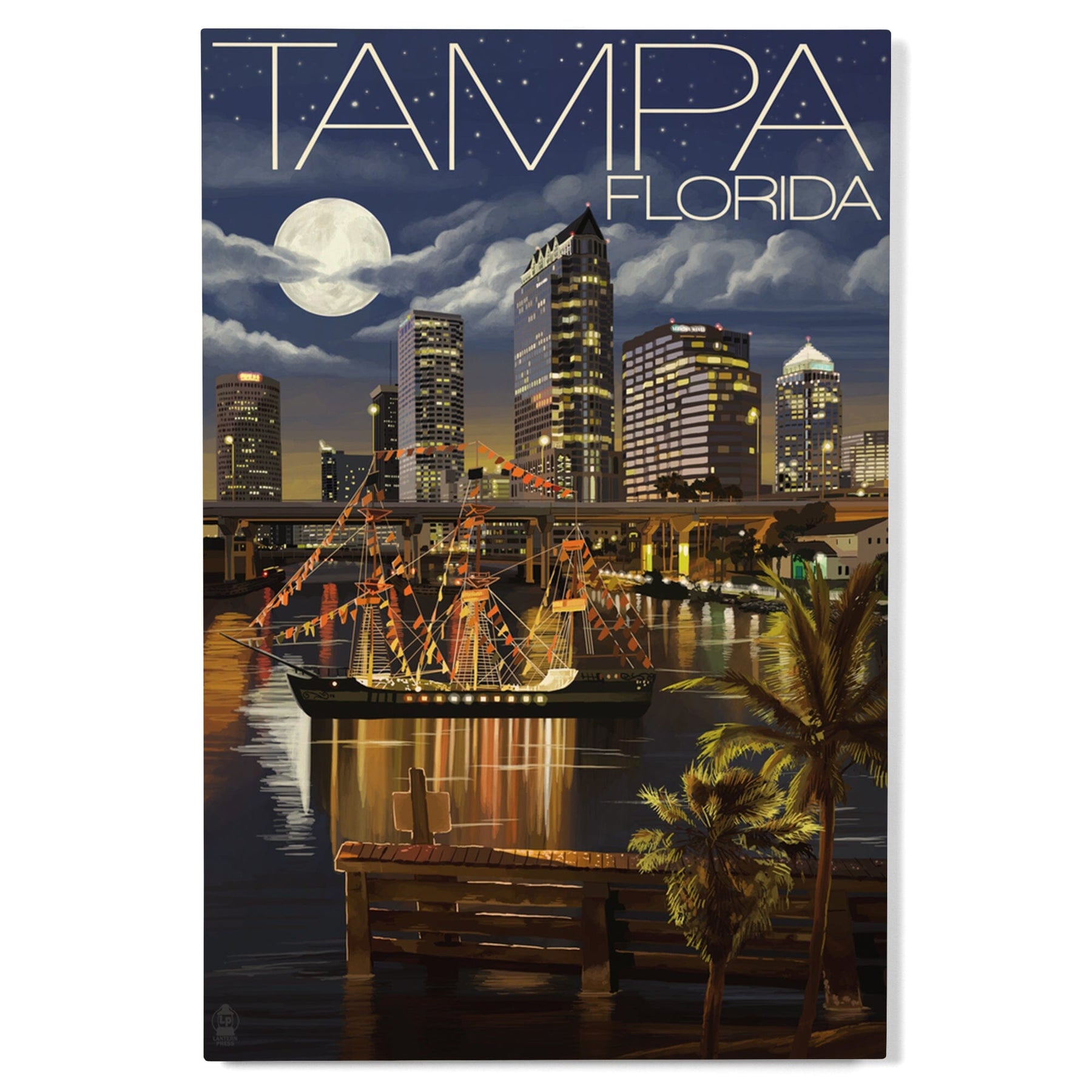 Tampa, Florida, Skyline at Night, Lantern Press Artwork, Wood Signs and Postcards Wood Lantern Press