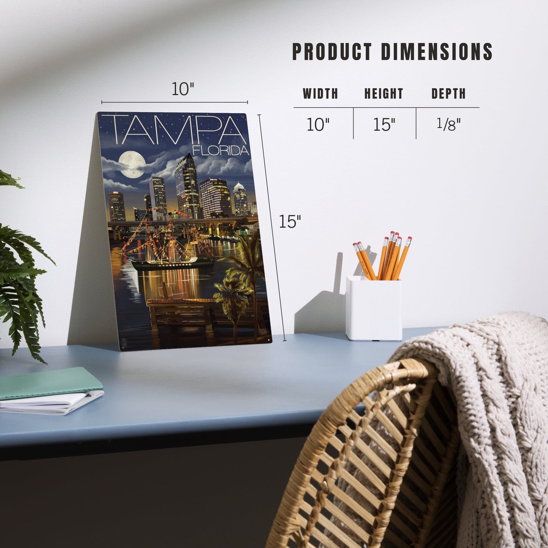 Tampa, Florida, Skyline at Night, Lantern Press Artwork, Wood Signs and Postcards