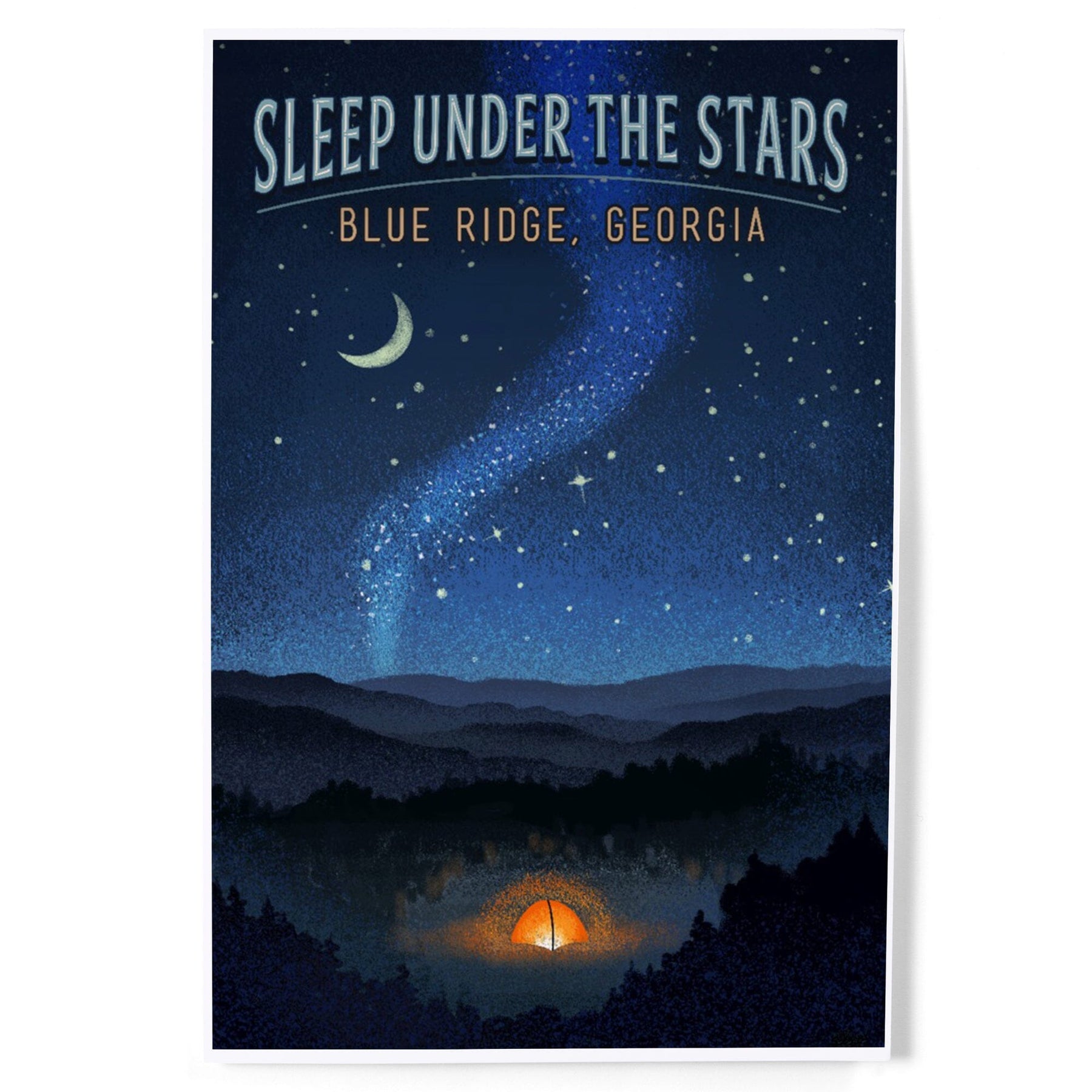 Blue Ridge, Georgia, Sleep Under the Stars, Tent and Night Sky, Art & Giclee Prints - Lantern Press