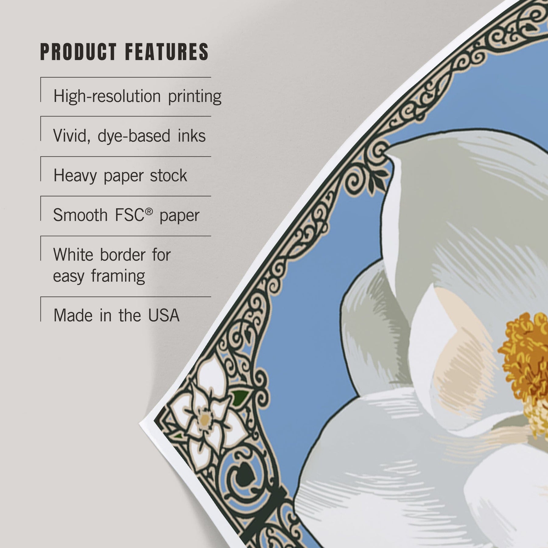 Savannah, Georgia, Single White Magnolia, Art & Giclee Prints Art Lantern Press