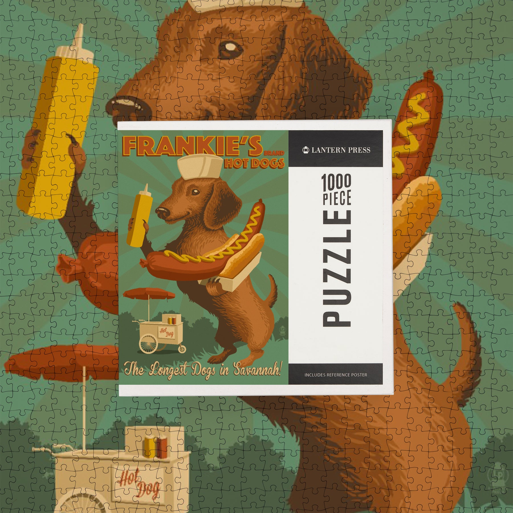 Savannah, Georgia, Dachshund, Retro Hotdog Ad, Jigsaw Puzzle Puzzle Lantern Press