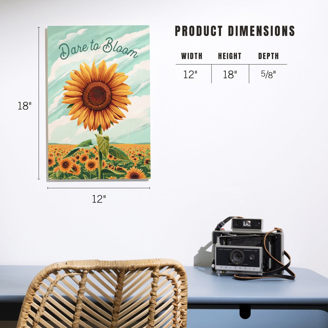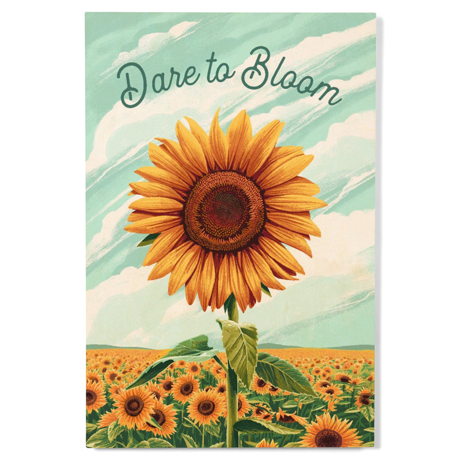 Dare to Bloom, Sunflower, Wood Signs and Postcards Wood Lantern Press