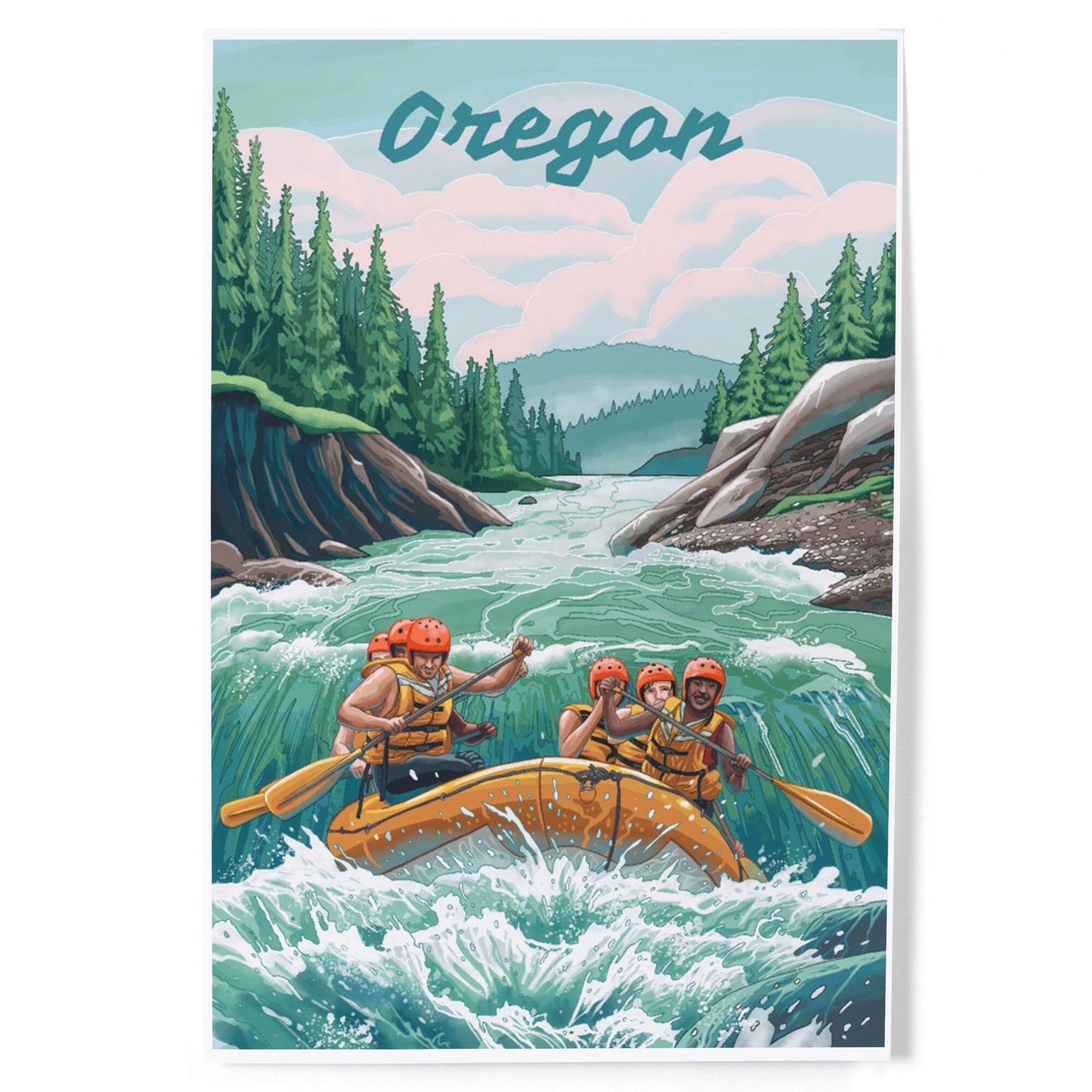 Oregon, Seek Adventure, River Rafting Art Lantern Press