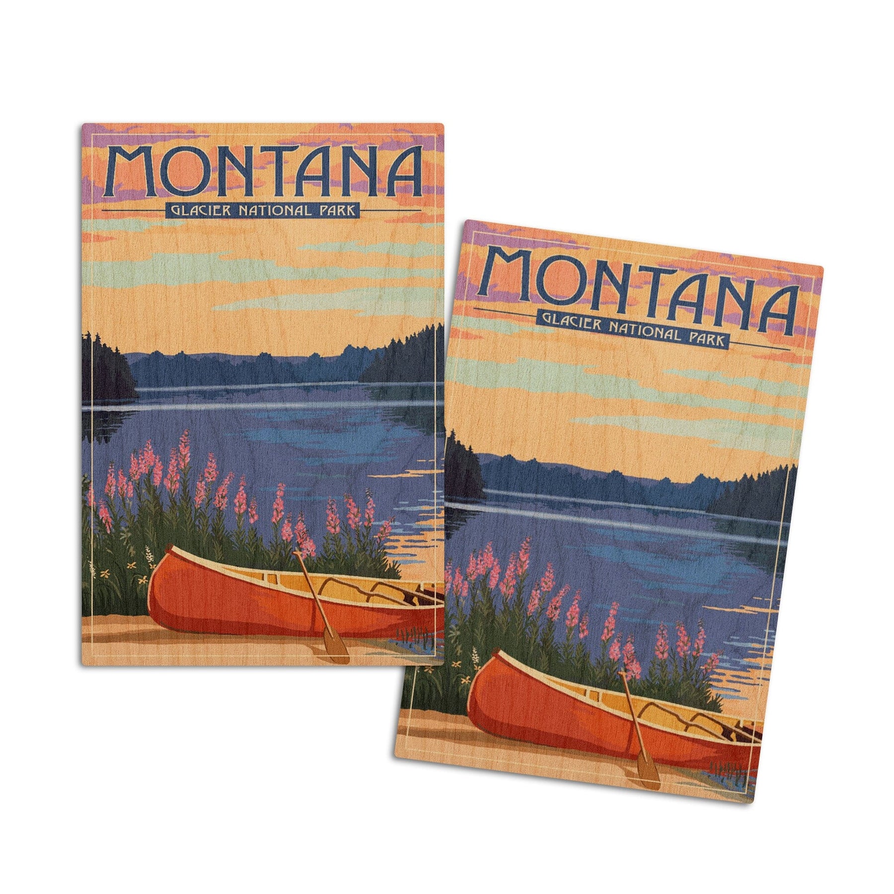 Glacier National Park, Montana, Canoe & Lake, Lantern Press Artwork, Wood Signs and Postcards - Lantern Press