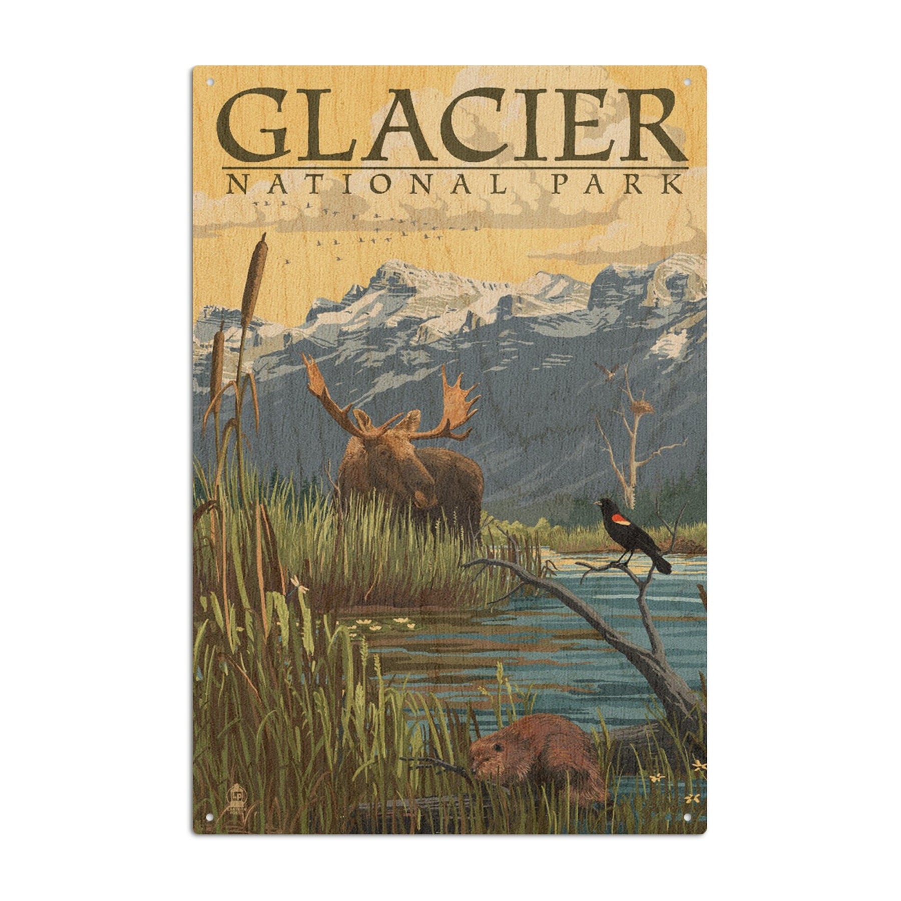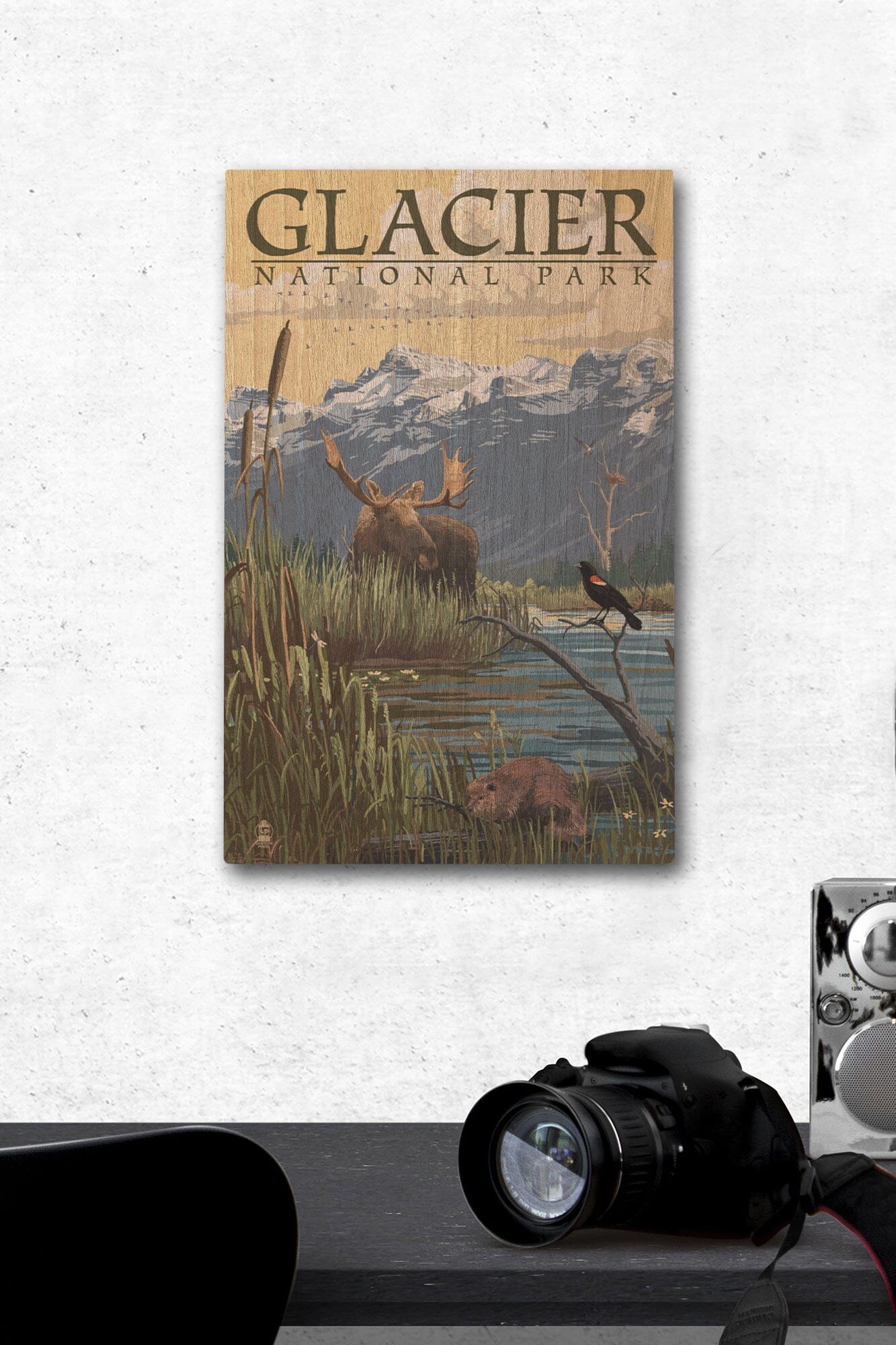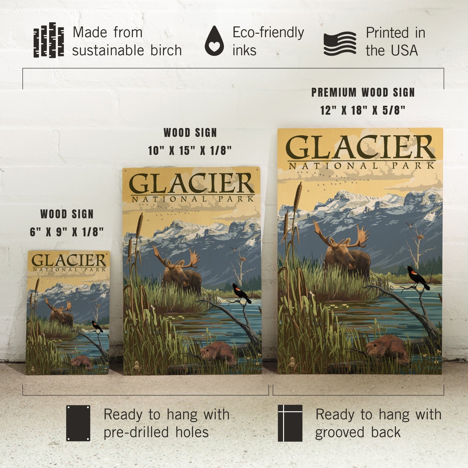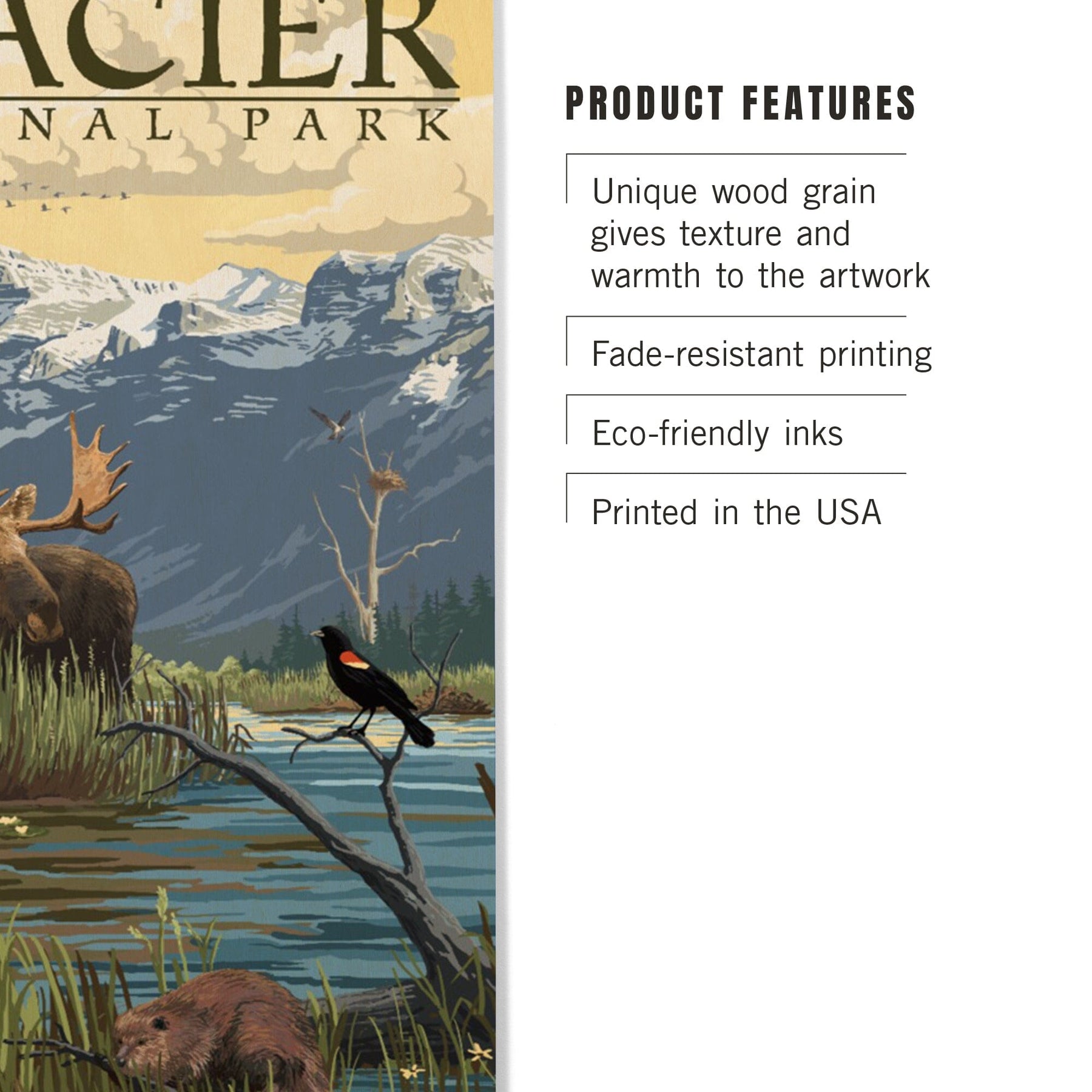 Glacier National Park, Montana, Mountain & Marsh Scene, Lantern Press Artwork, Wood Signs and Postcards