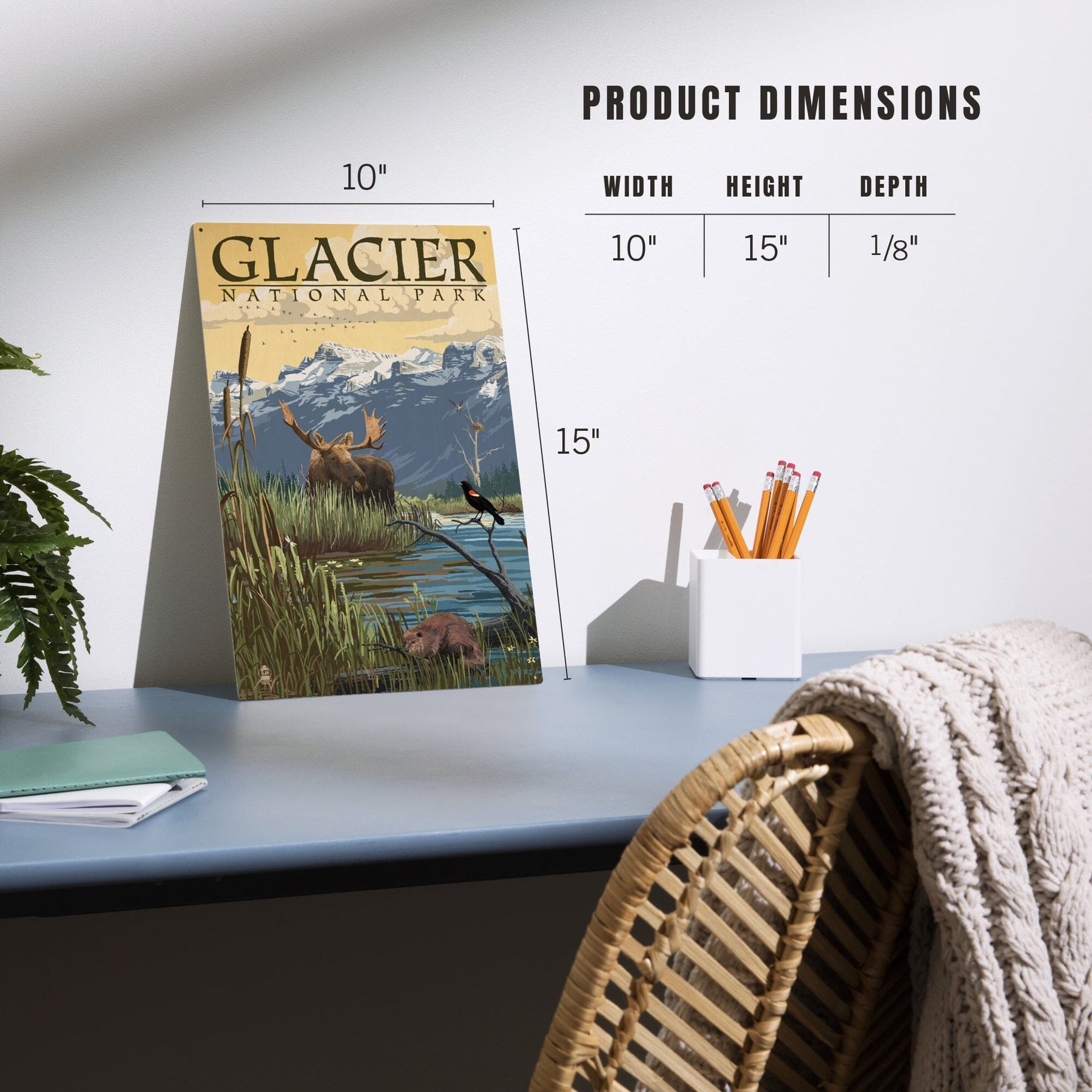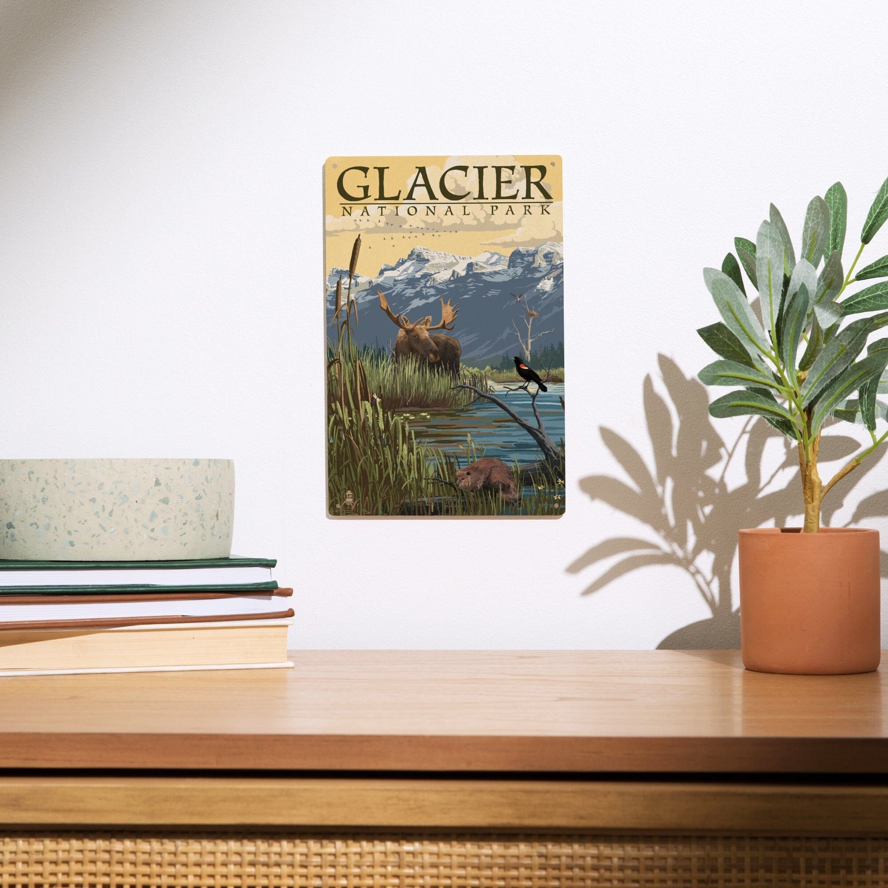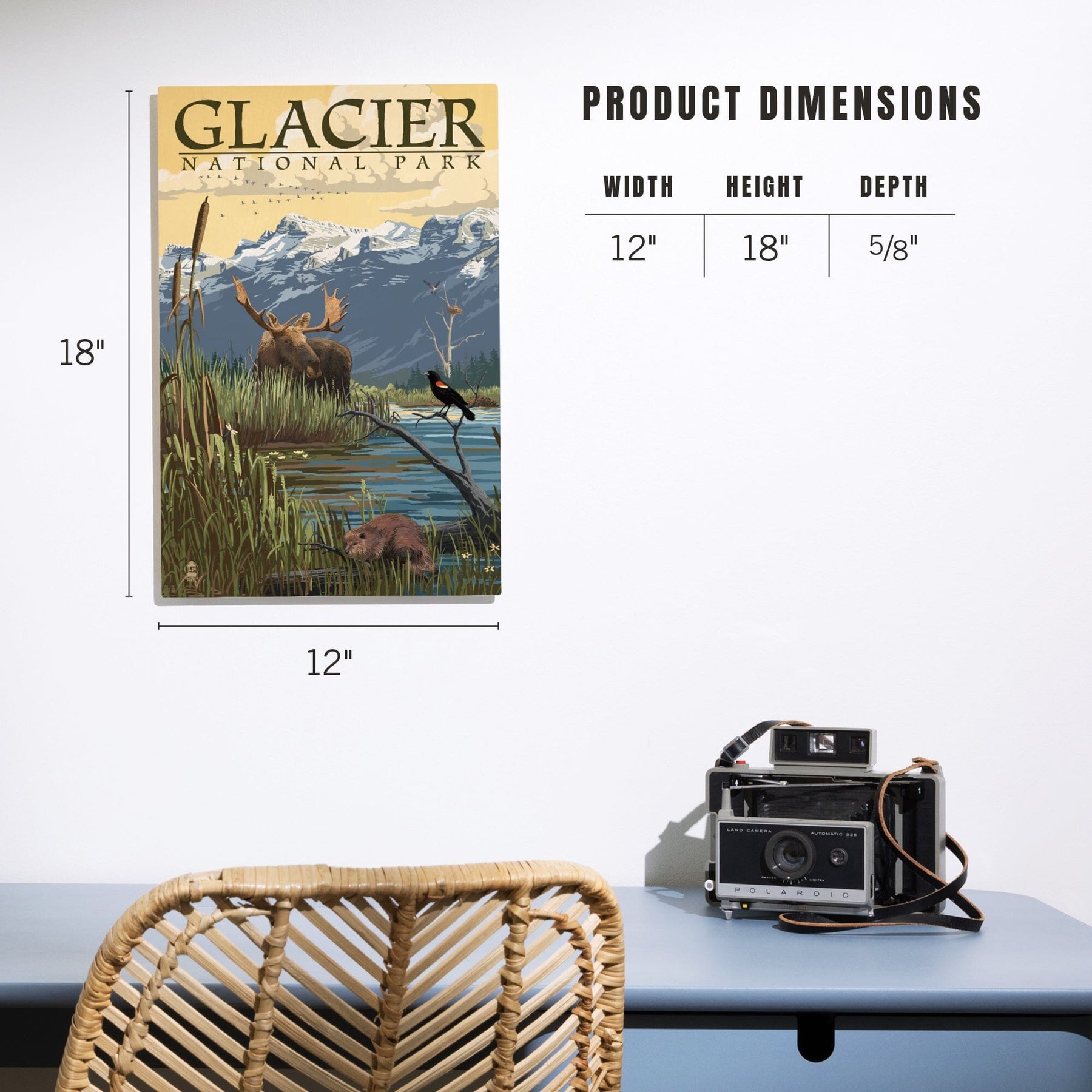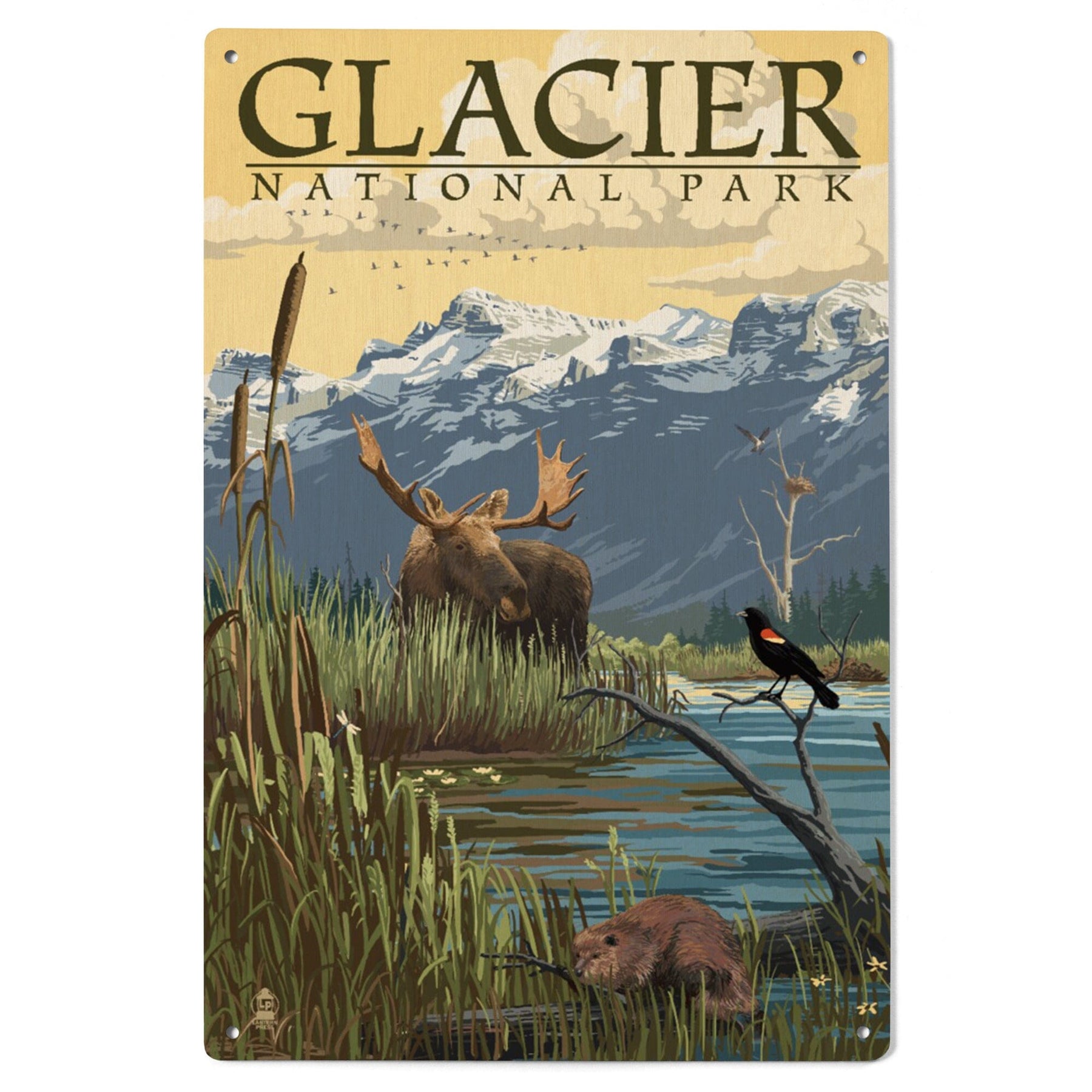 Glacier National Park, Montana, Mountain & Marsh Scene, Lantern Press Artwork, Wood Signs and Postcards