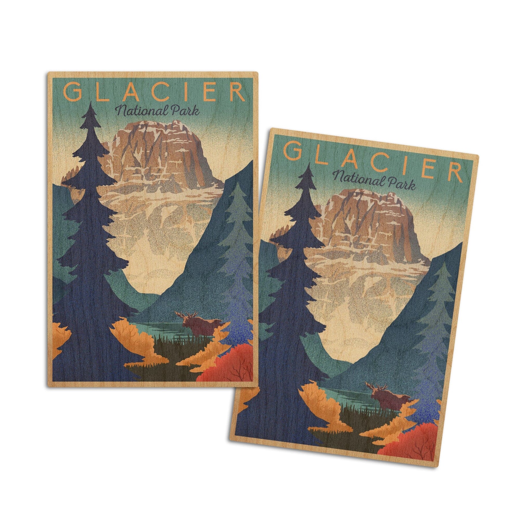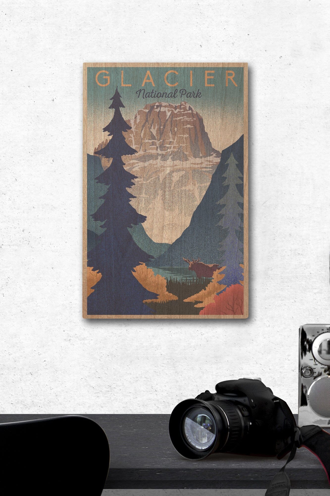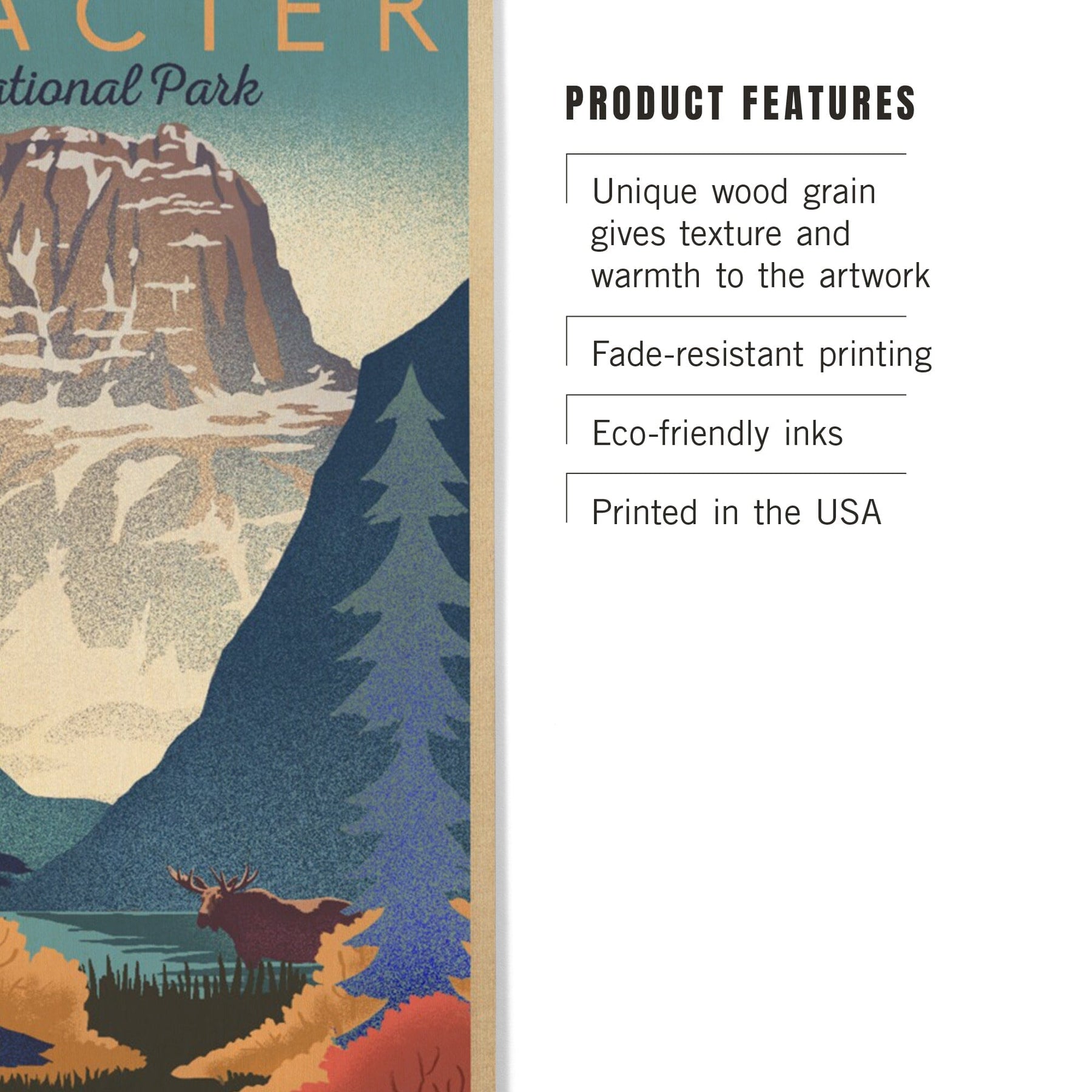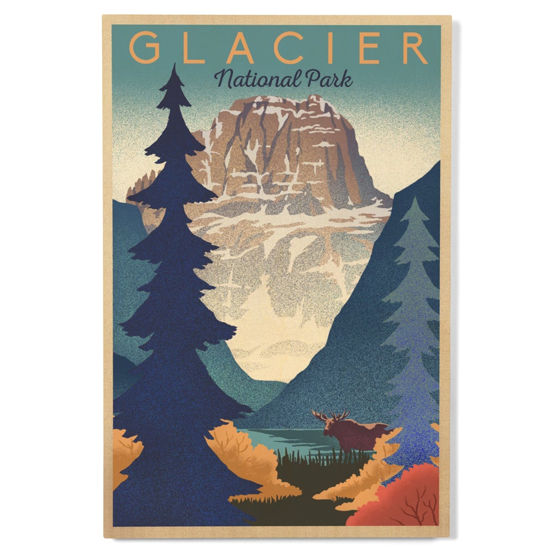 Glacier National Park, Mountain Scene, Lithograph, Lantern Press Artwork, Wood Signs and Postcards - Lantern Press