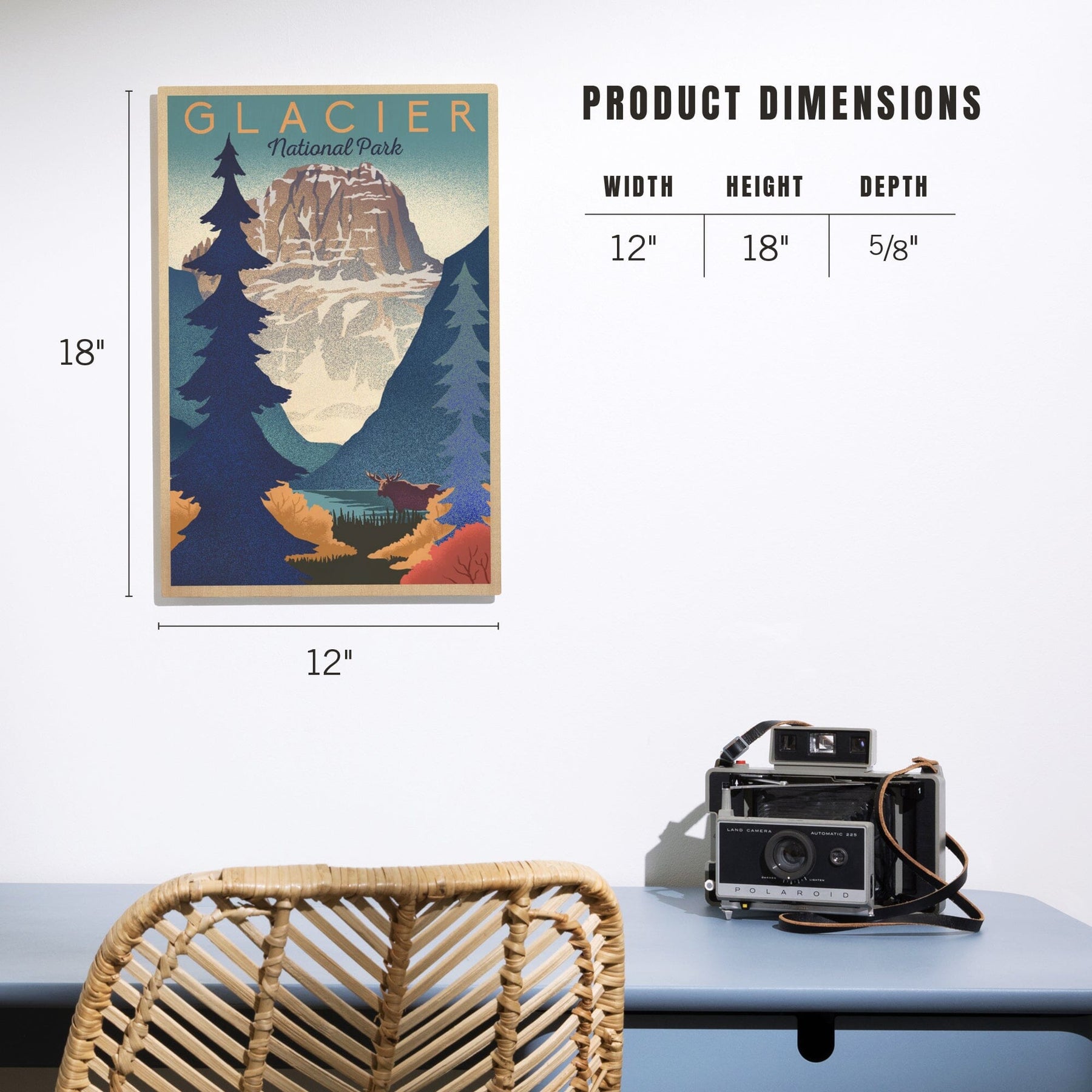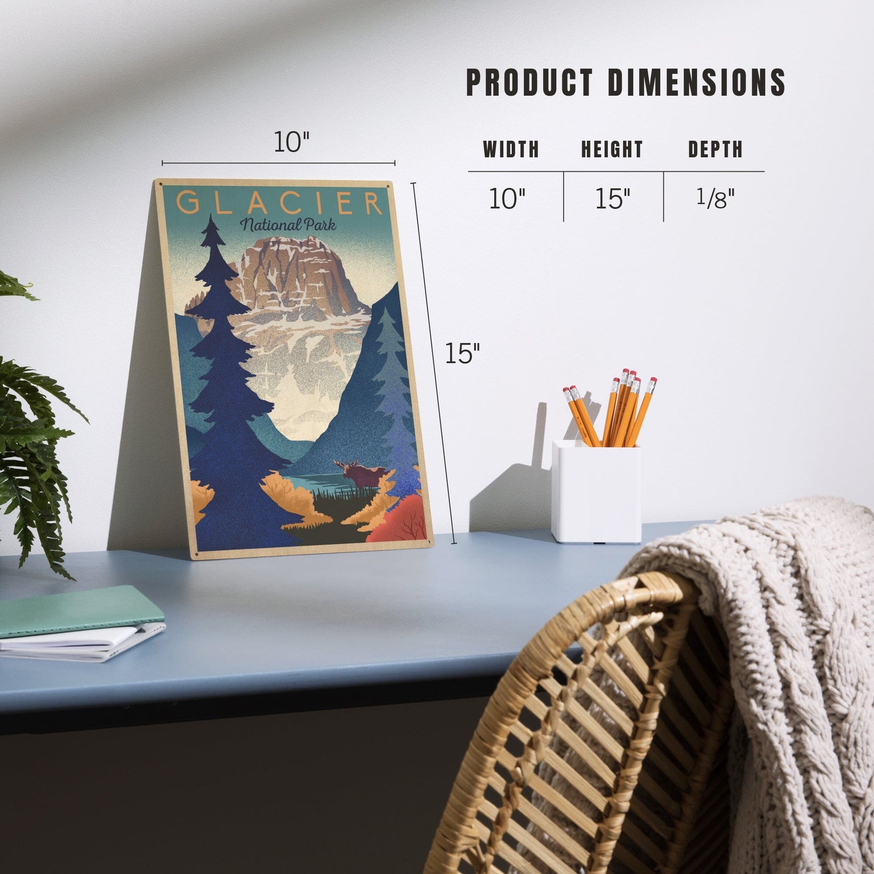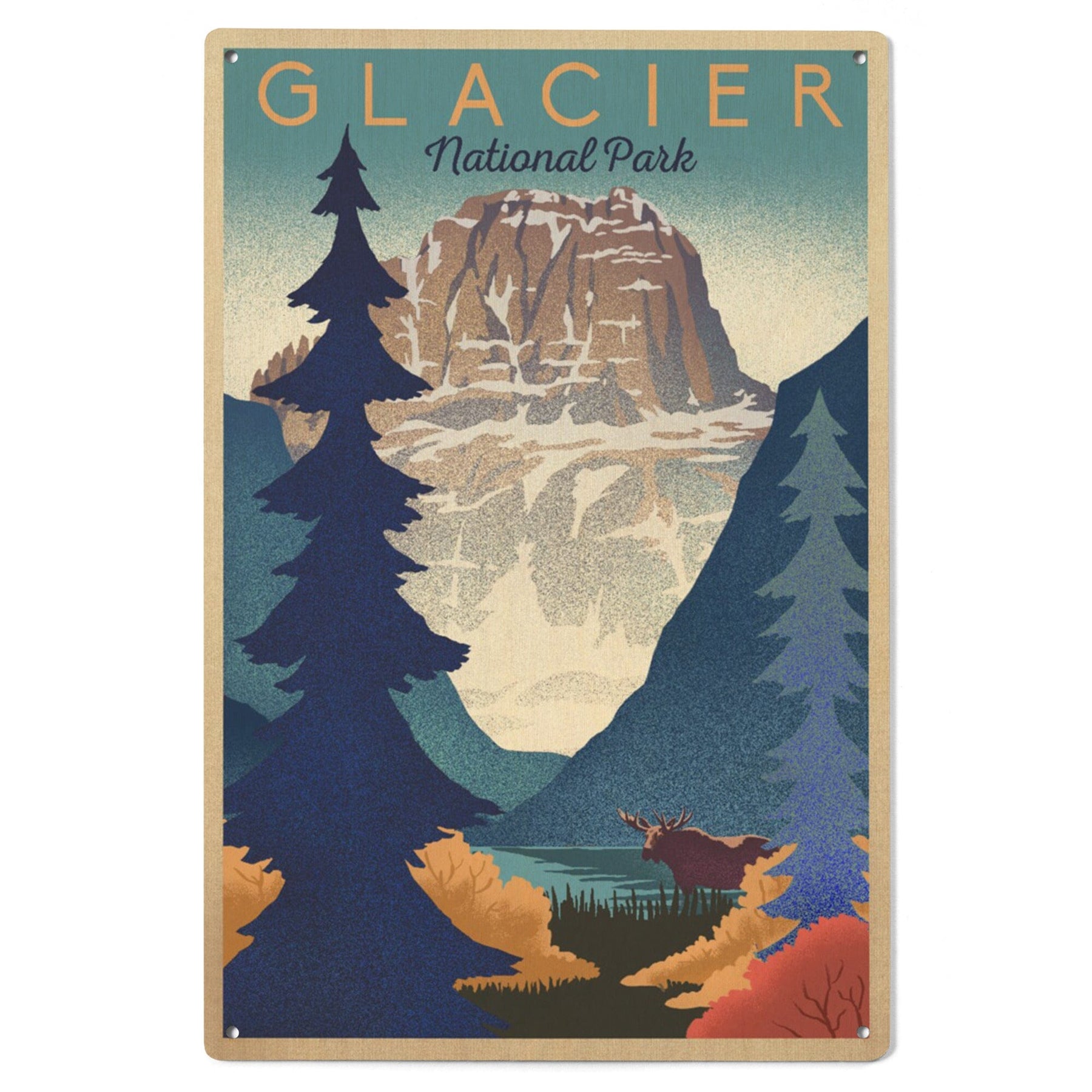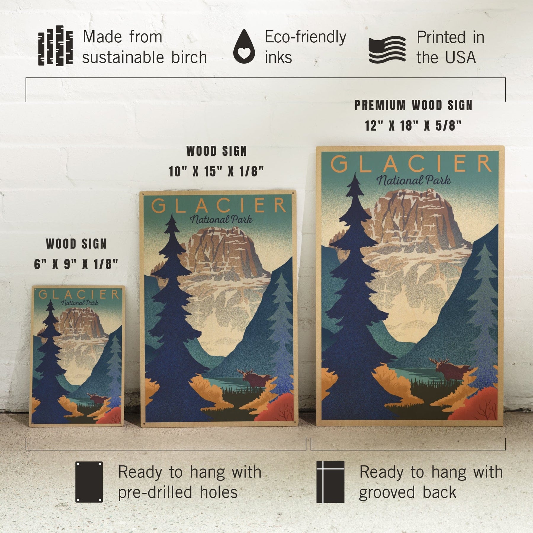 Glacier National Park, Mountain Scene, Lithograph, Lantern Press Artwork, Wood Signs and Postcards