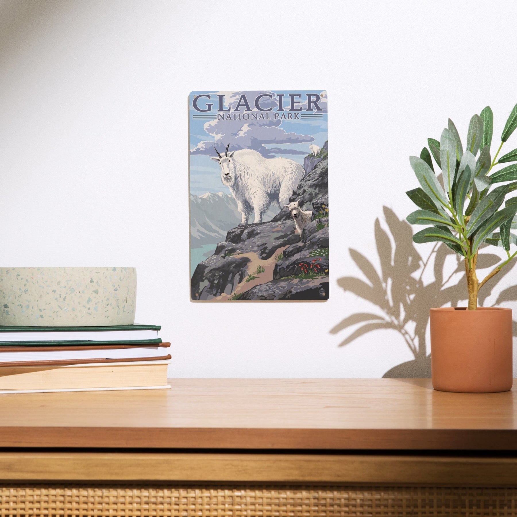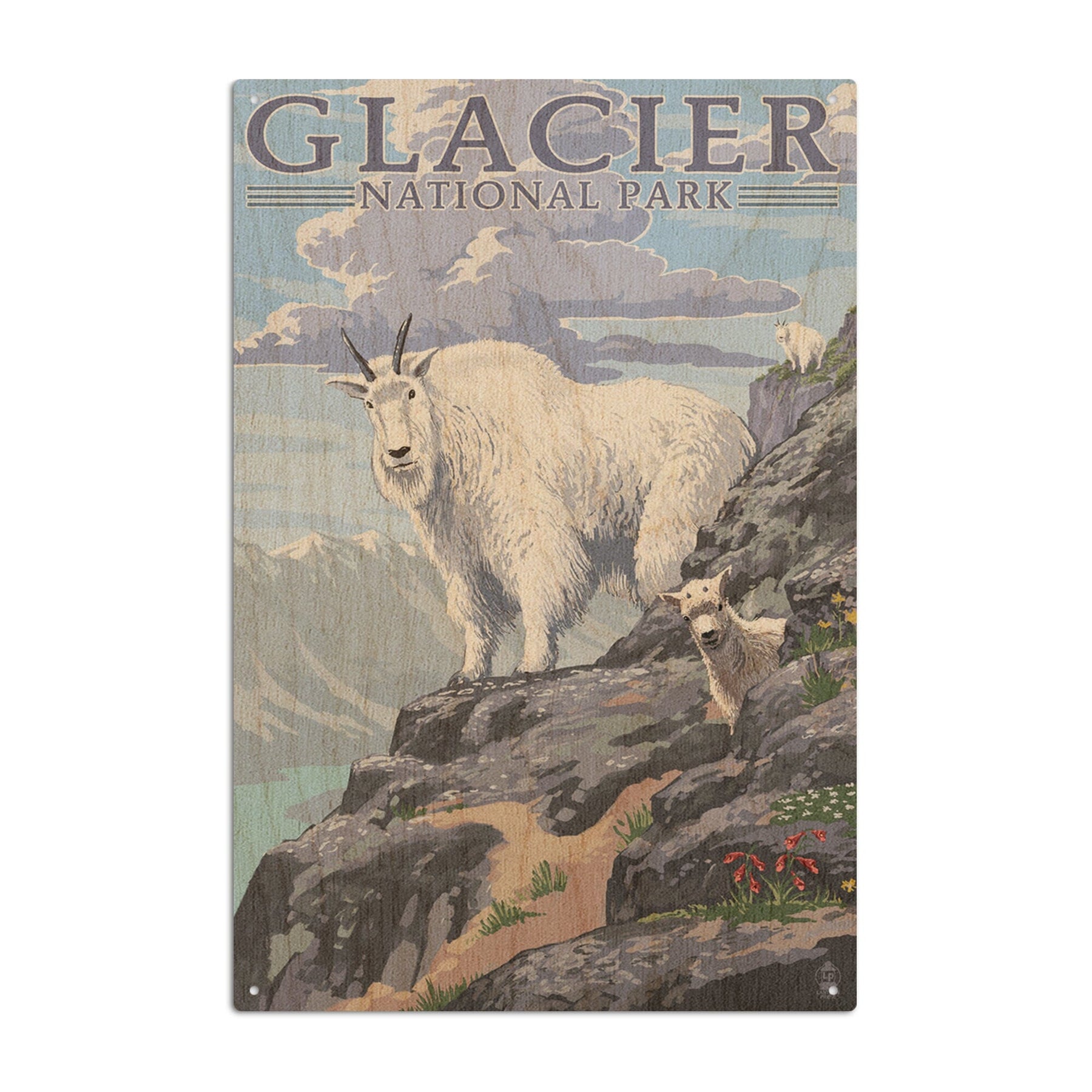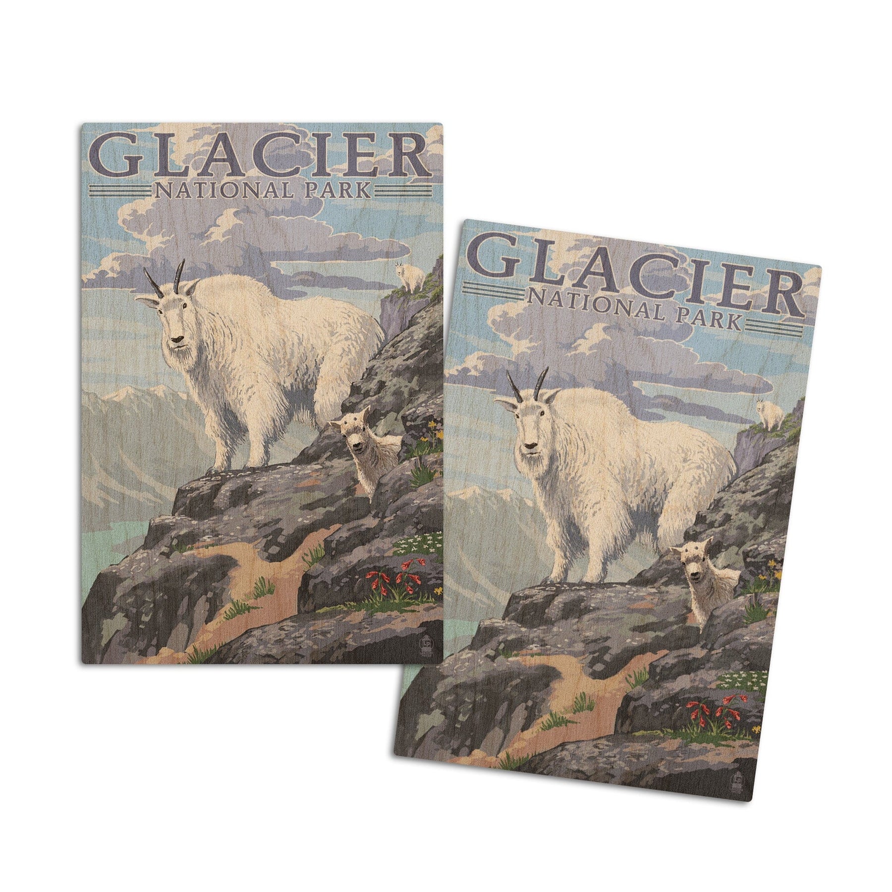 Glacier National Park, Montana, Mountain Goat & Kid, Lantern Press Artwork, Wood Signs and Postcards - Lantern Press