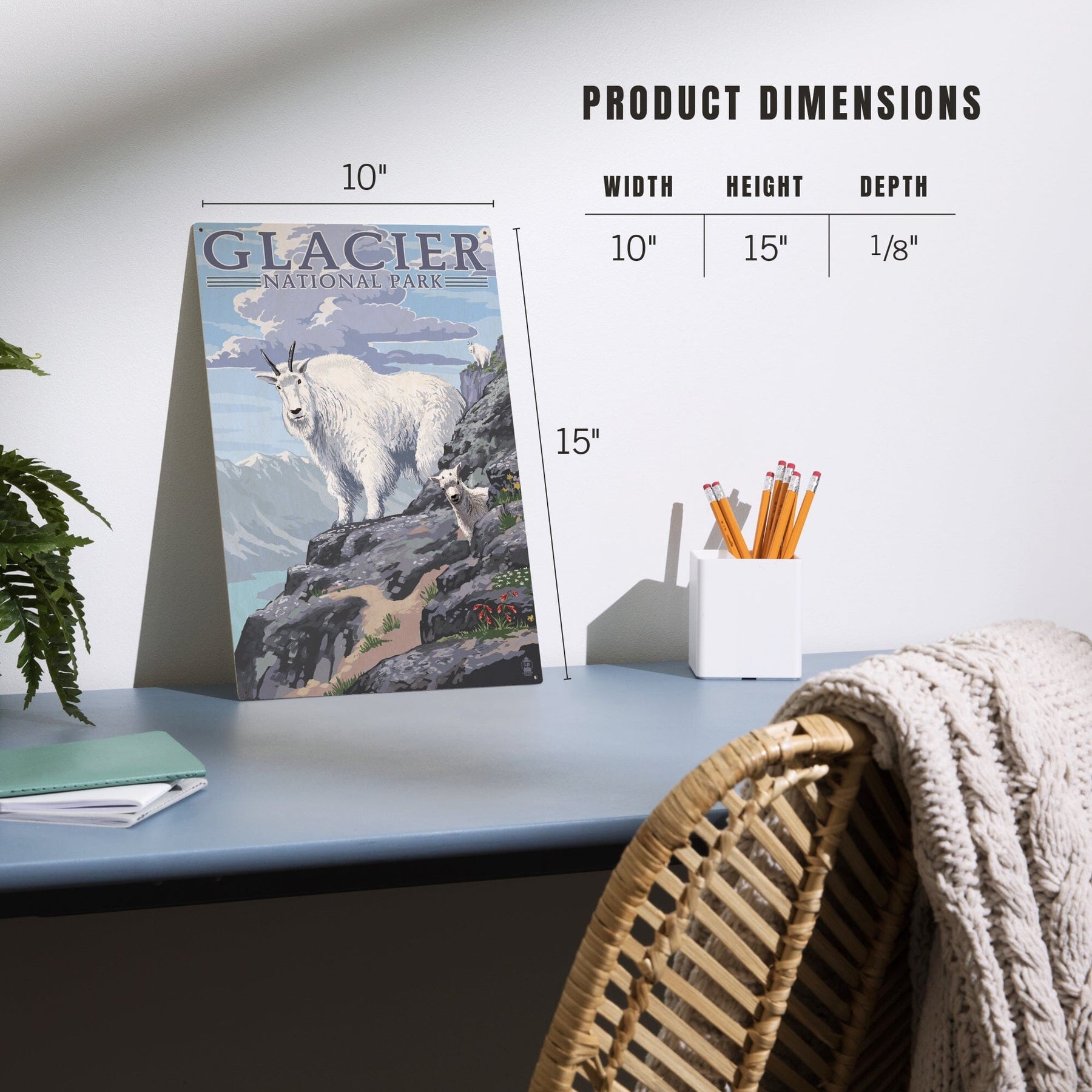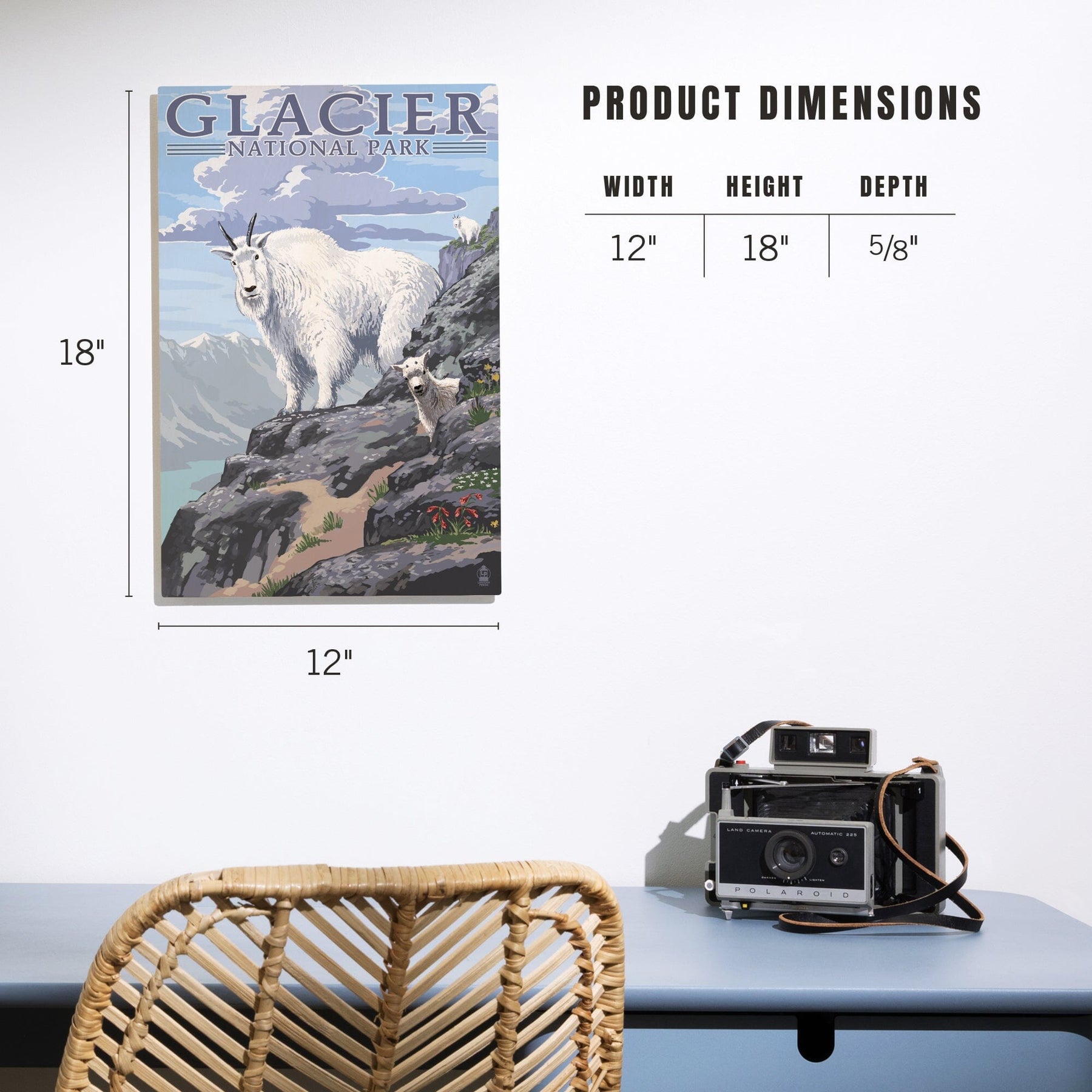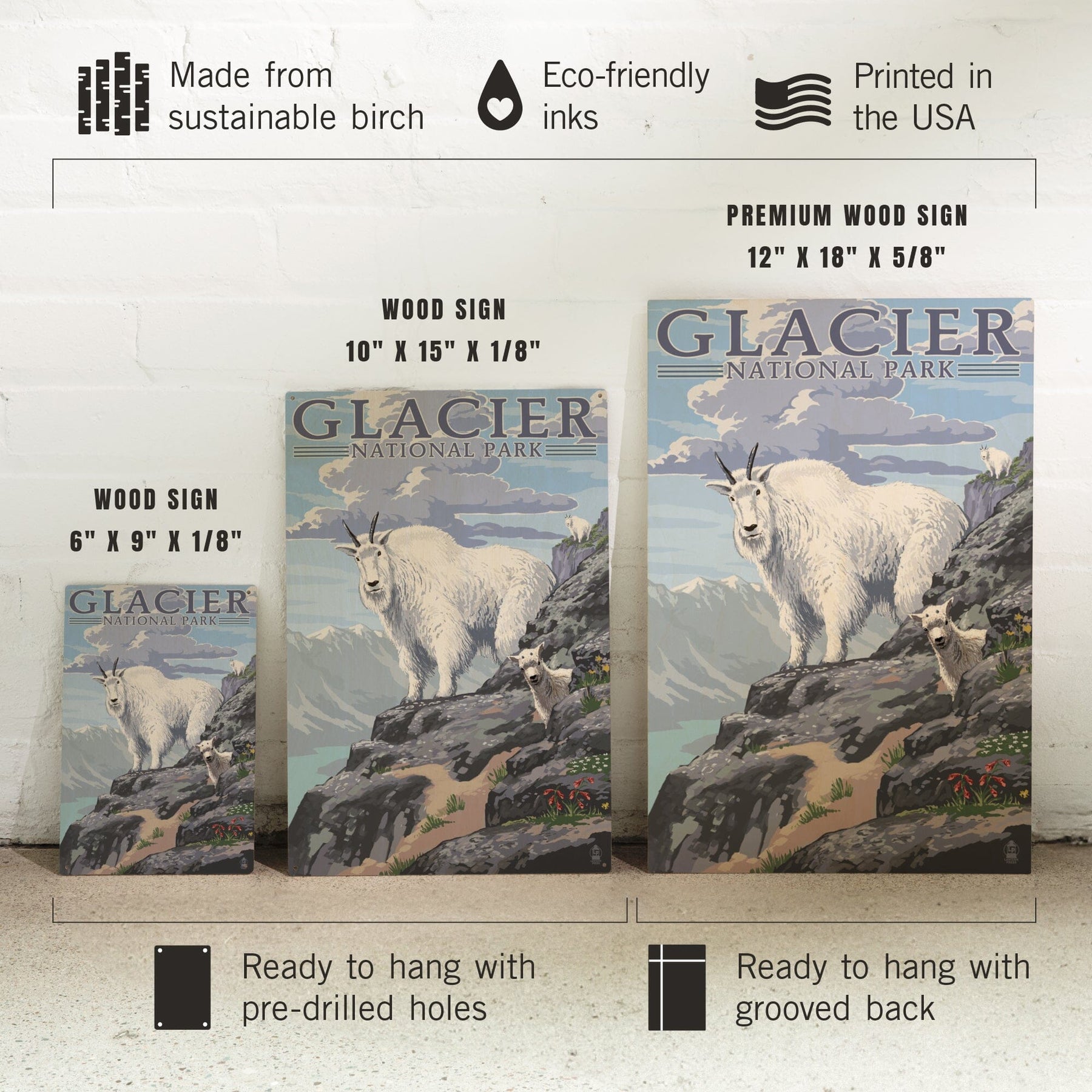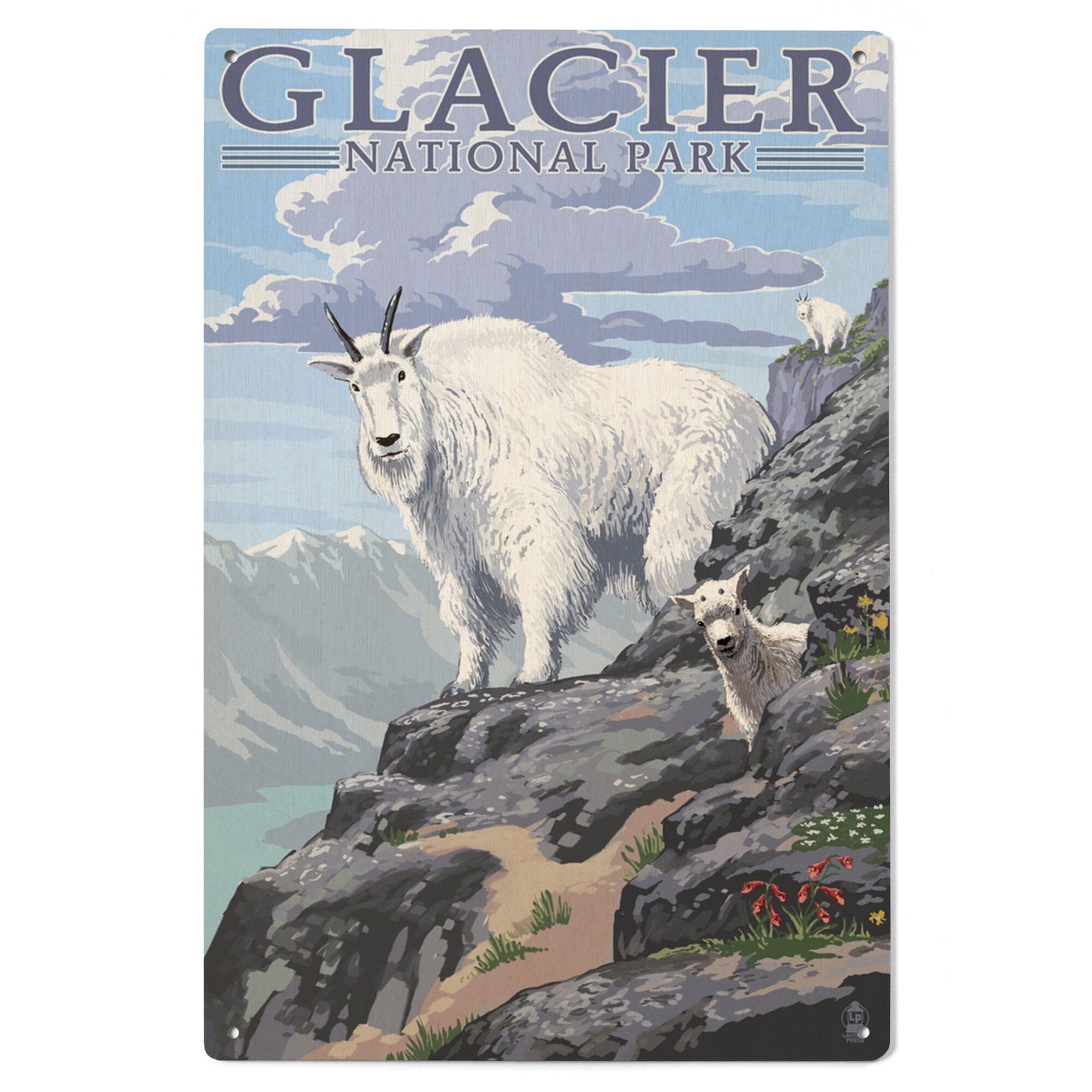 Glacier National Park, Montana, Mountain Goat & Kid, Lantern Press Artwork, Wood Signs and Postcards - Lantern Press