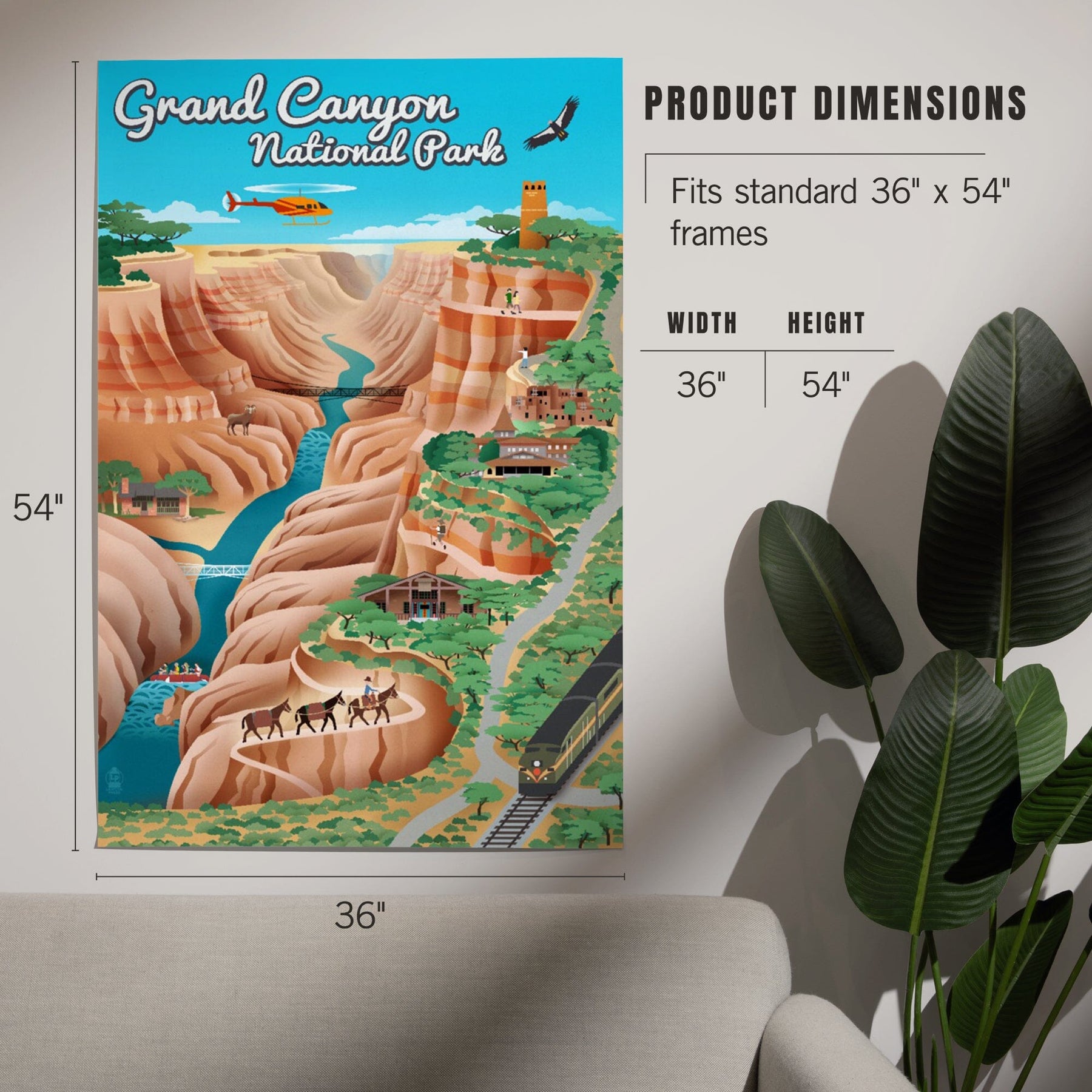 Grand Canyon National Park, Arizona, Retro View, Art & Giclee Prints - Lantern Press