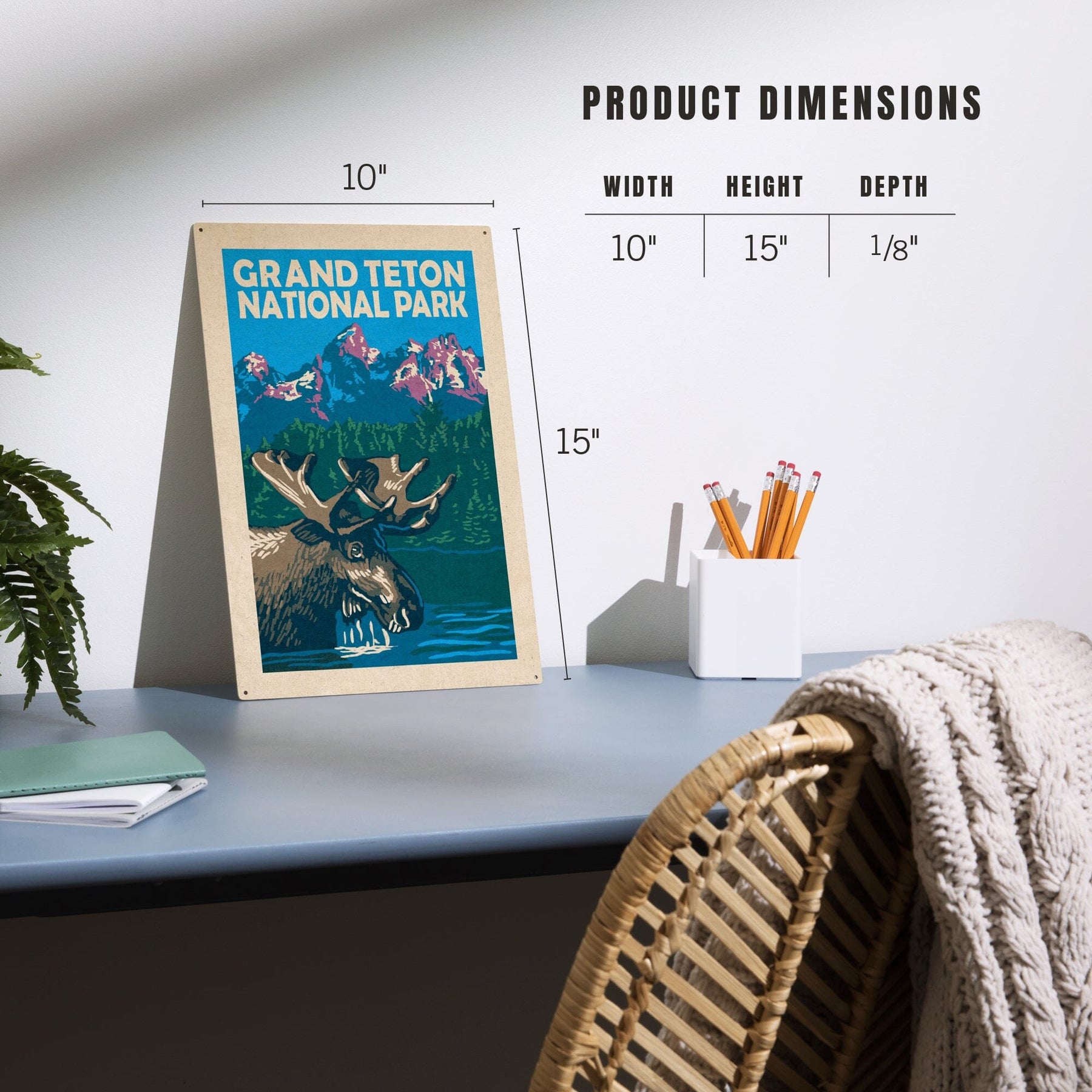Grand Teton National Park, Moose in Lake, Woodblock, Lantern Press Artwork, Wood Signs and Postcards