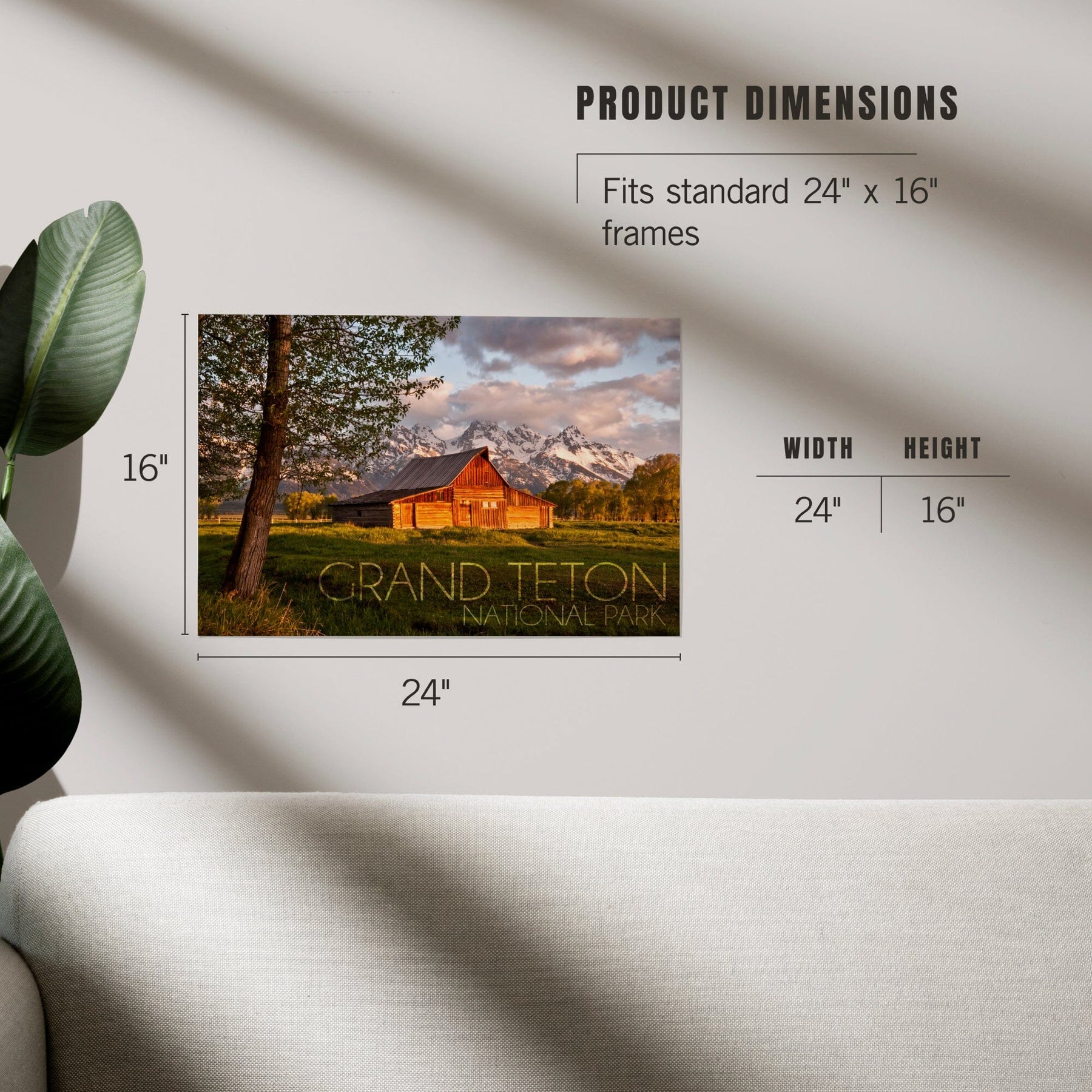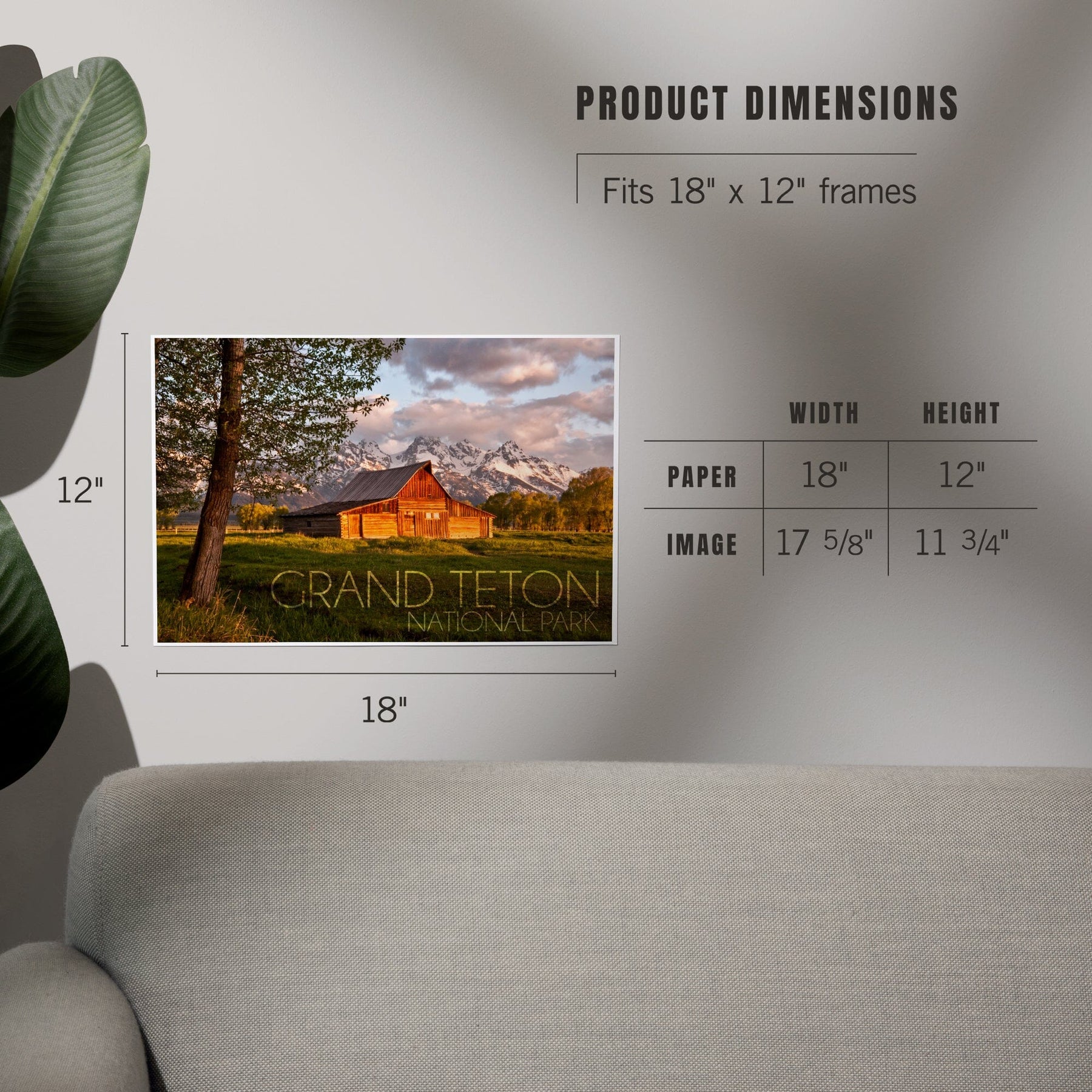 Grand Teton National Park, Wyoming, Barn and Tree, Art & Giclee Prints - Lantern Press