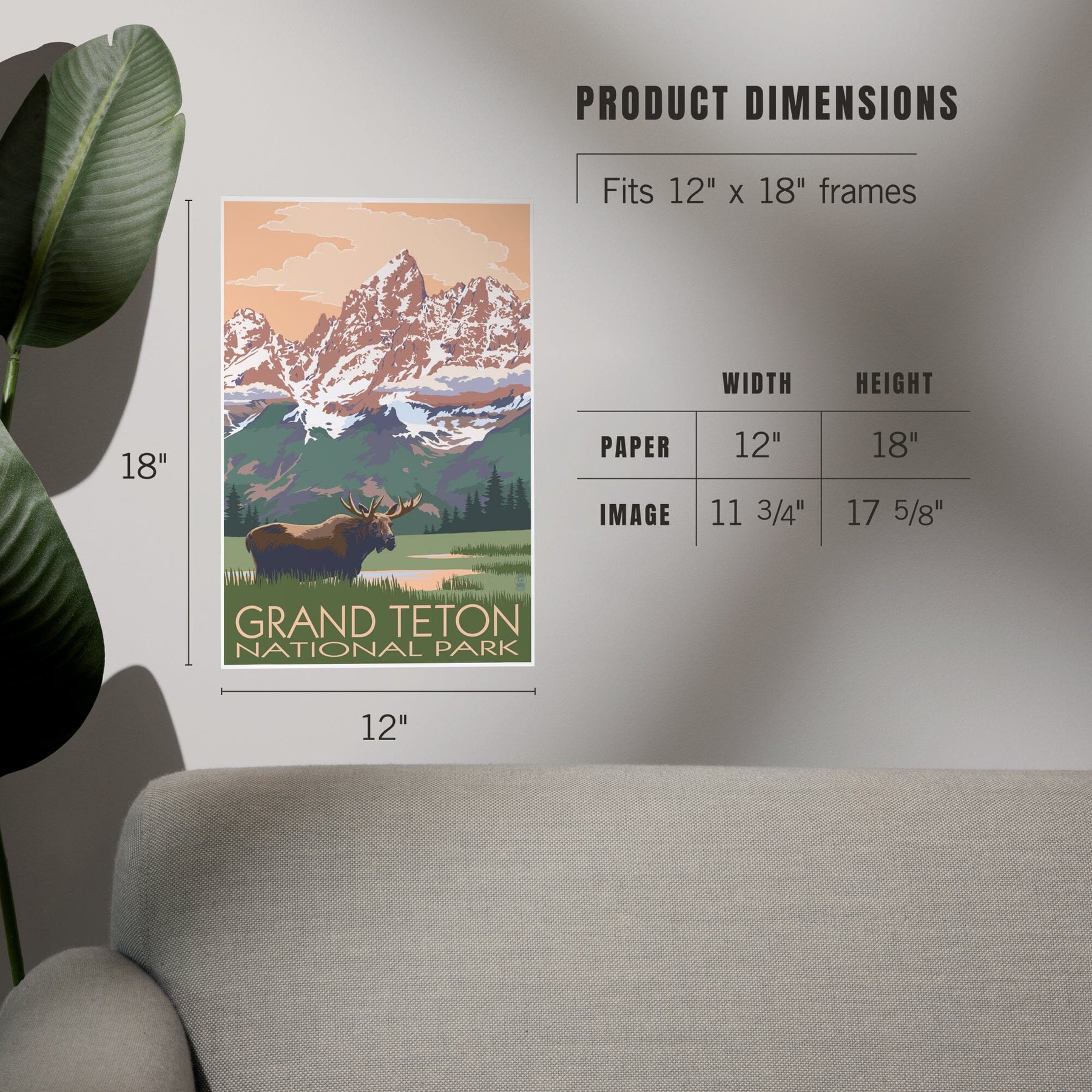Grand Teton National Park, Wyoming, Moose and Mountains, Art & Giclee Prints - Lantern Press