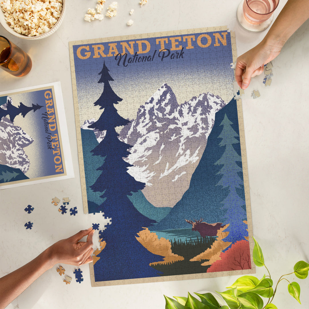Grand Teton National Park, Wyoming, Moose and Mountains, Art & Giclee Prints - Lantern Press