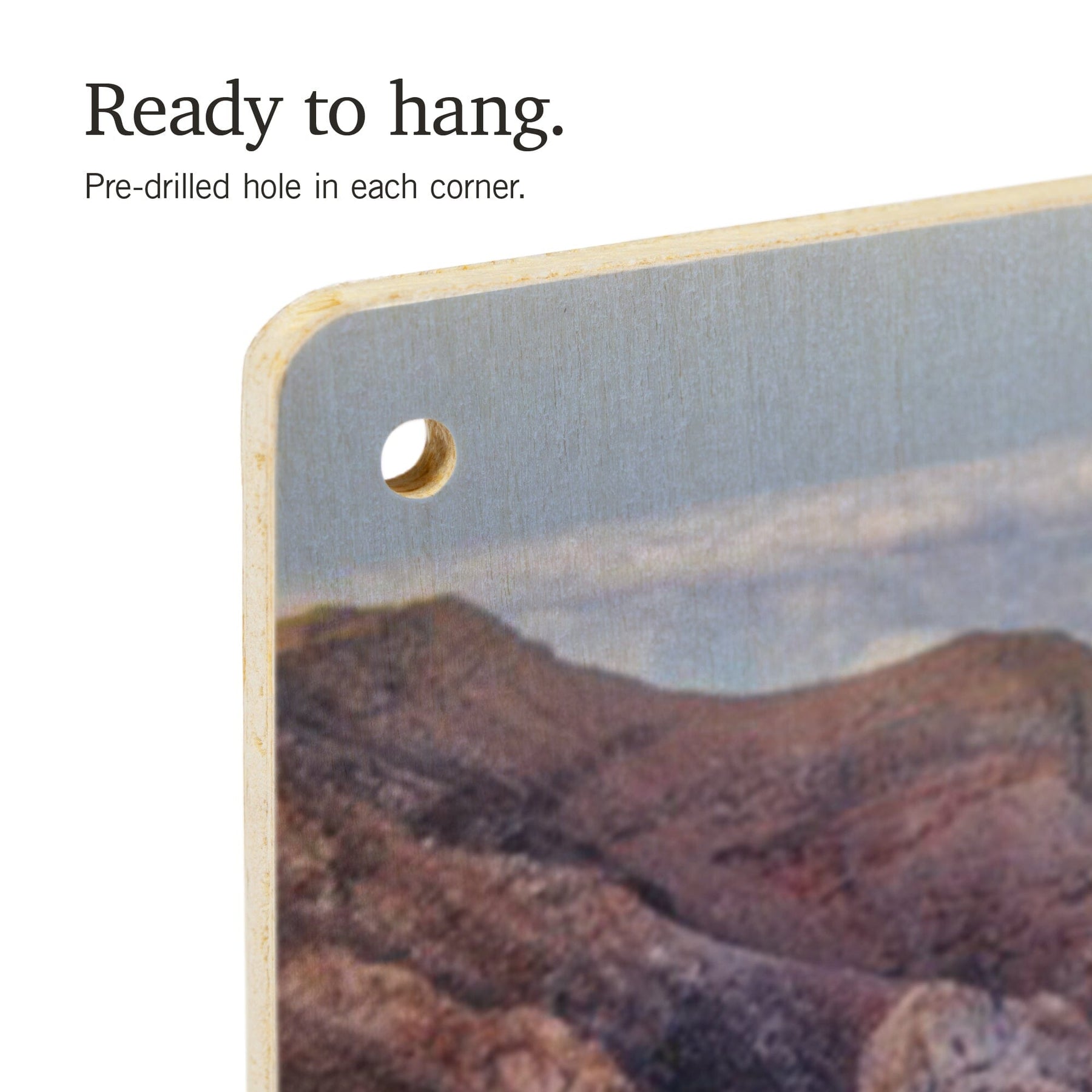 • Hole in each corner, ready to hang