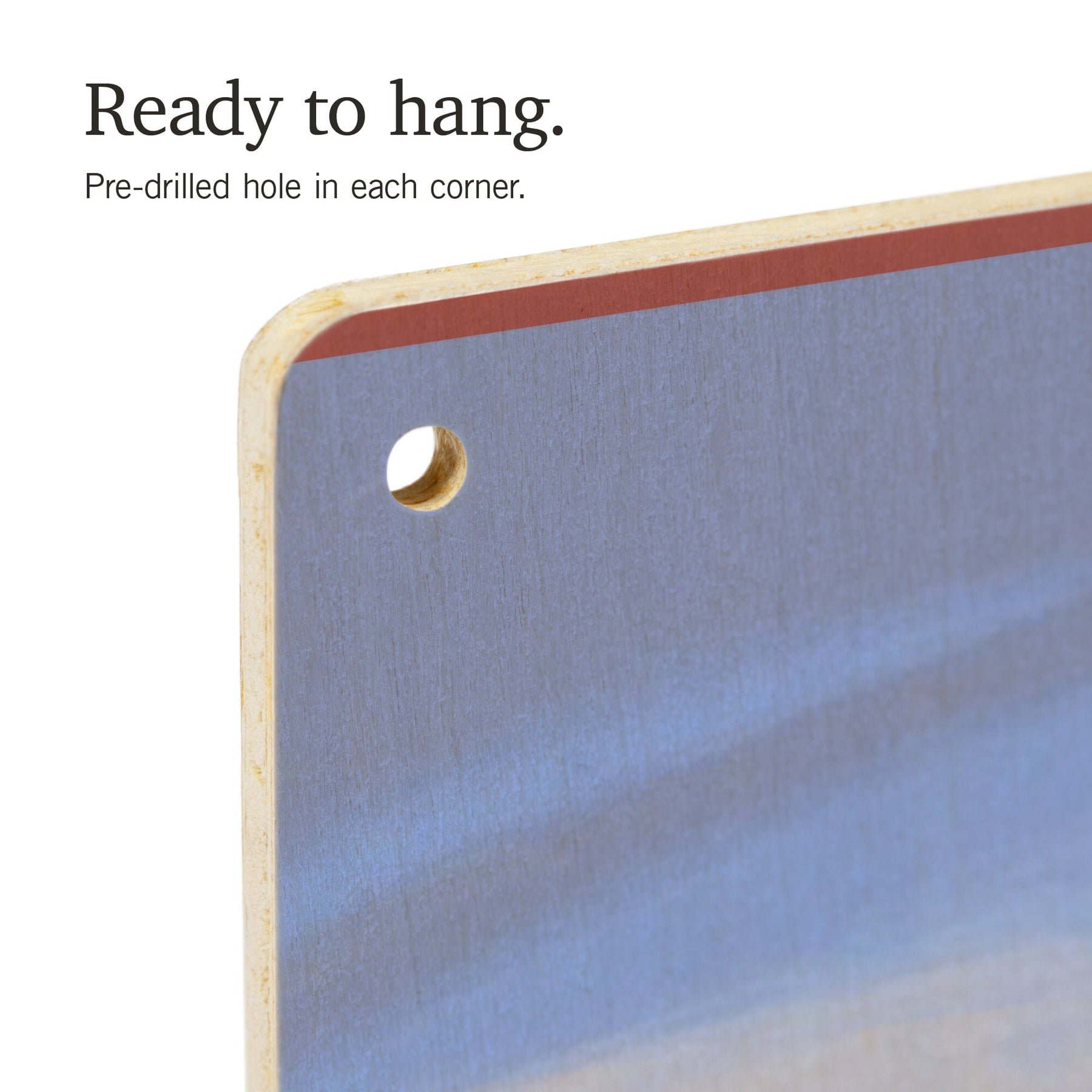 • Hole in each corner, ready to hang