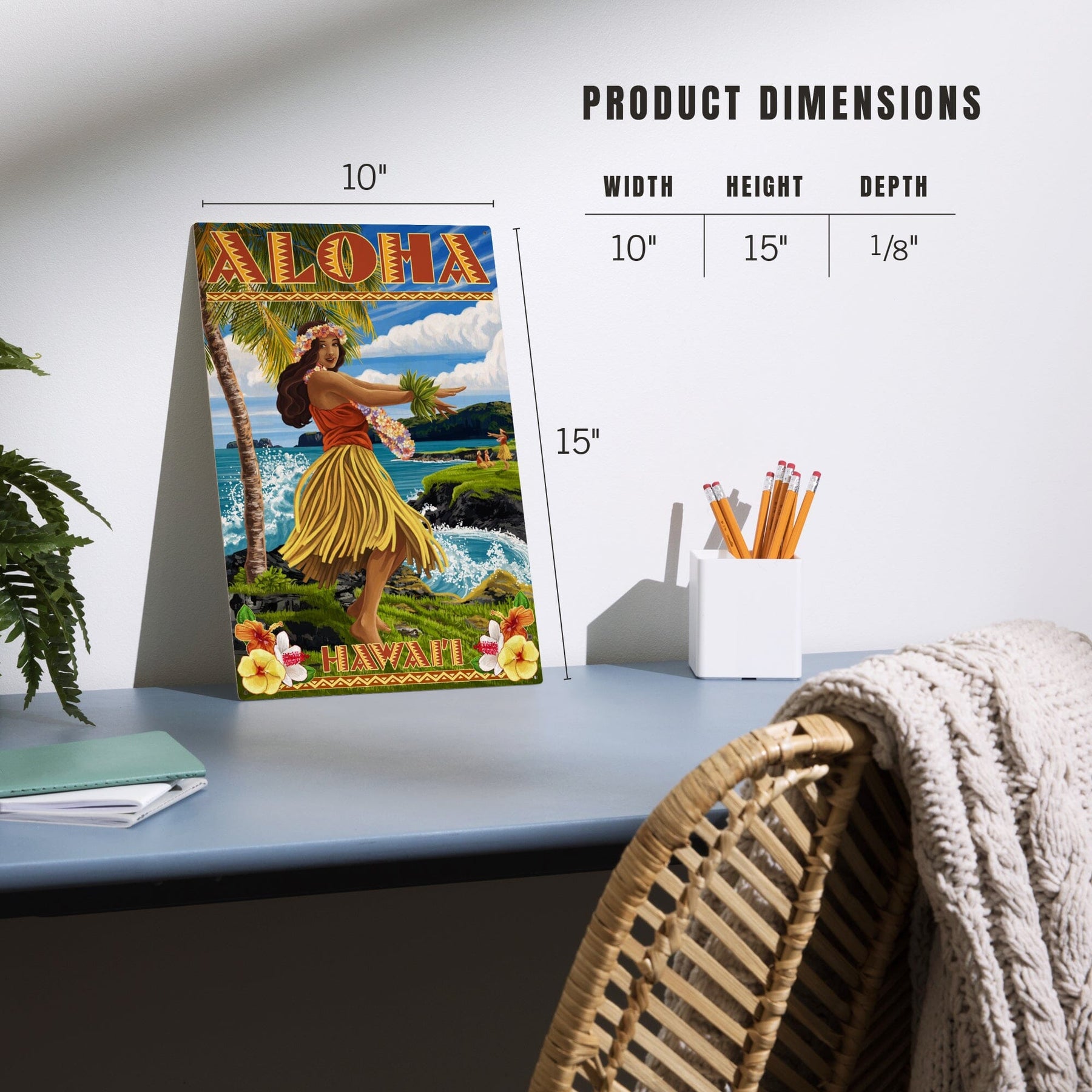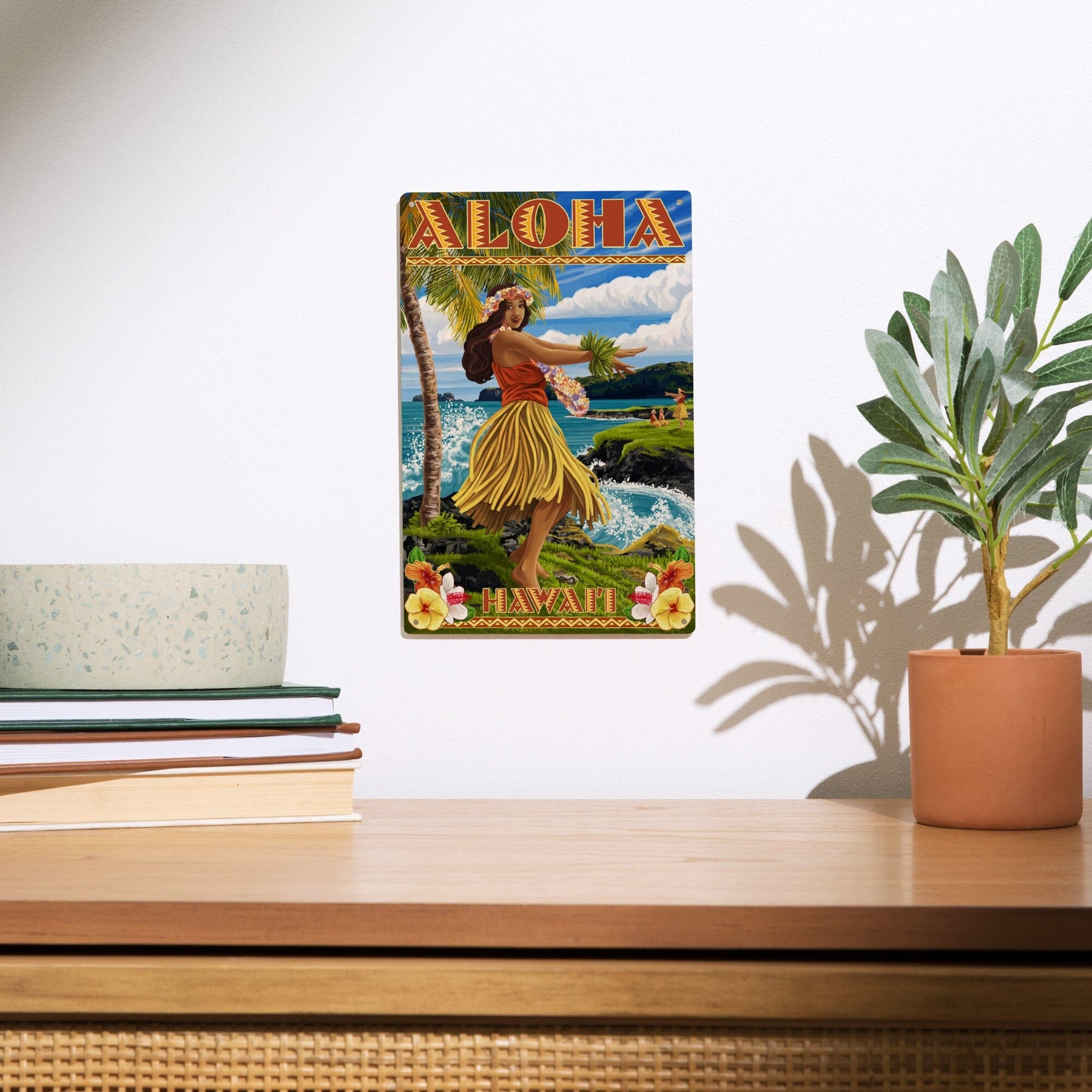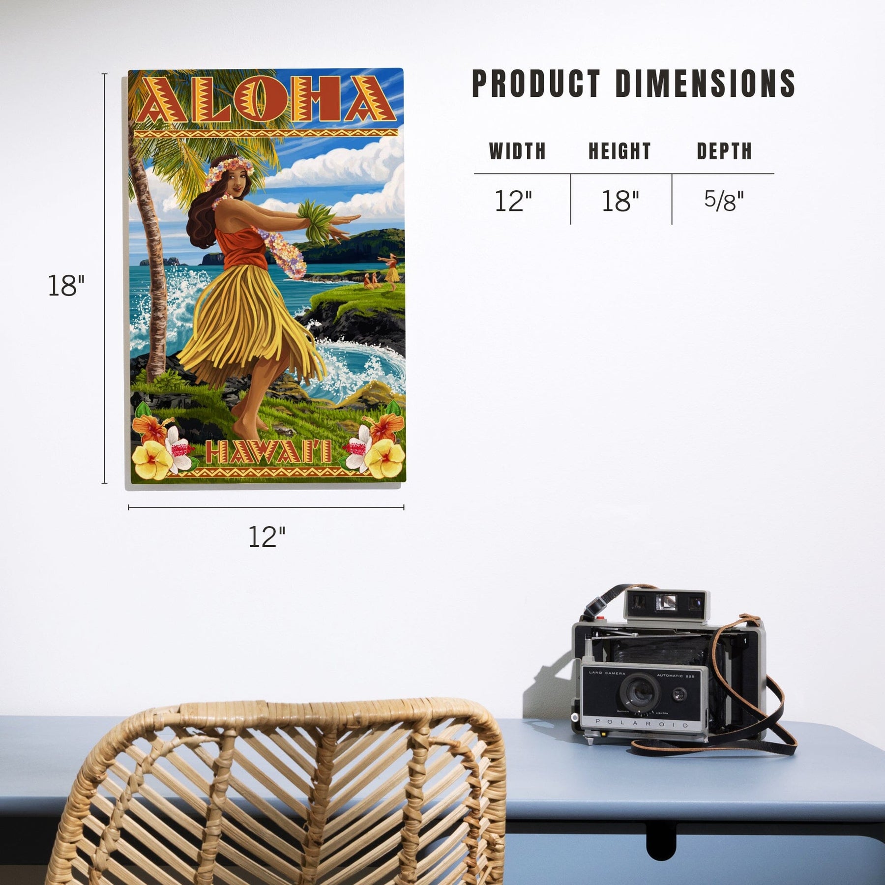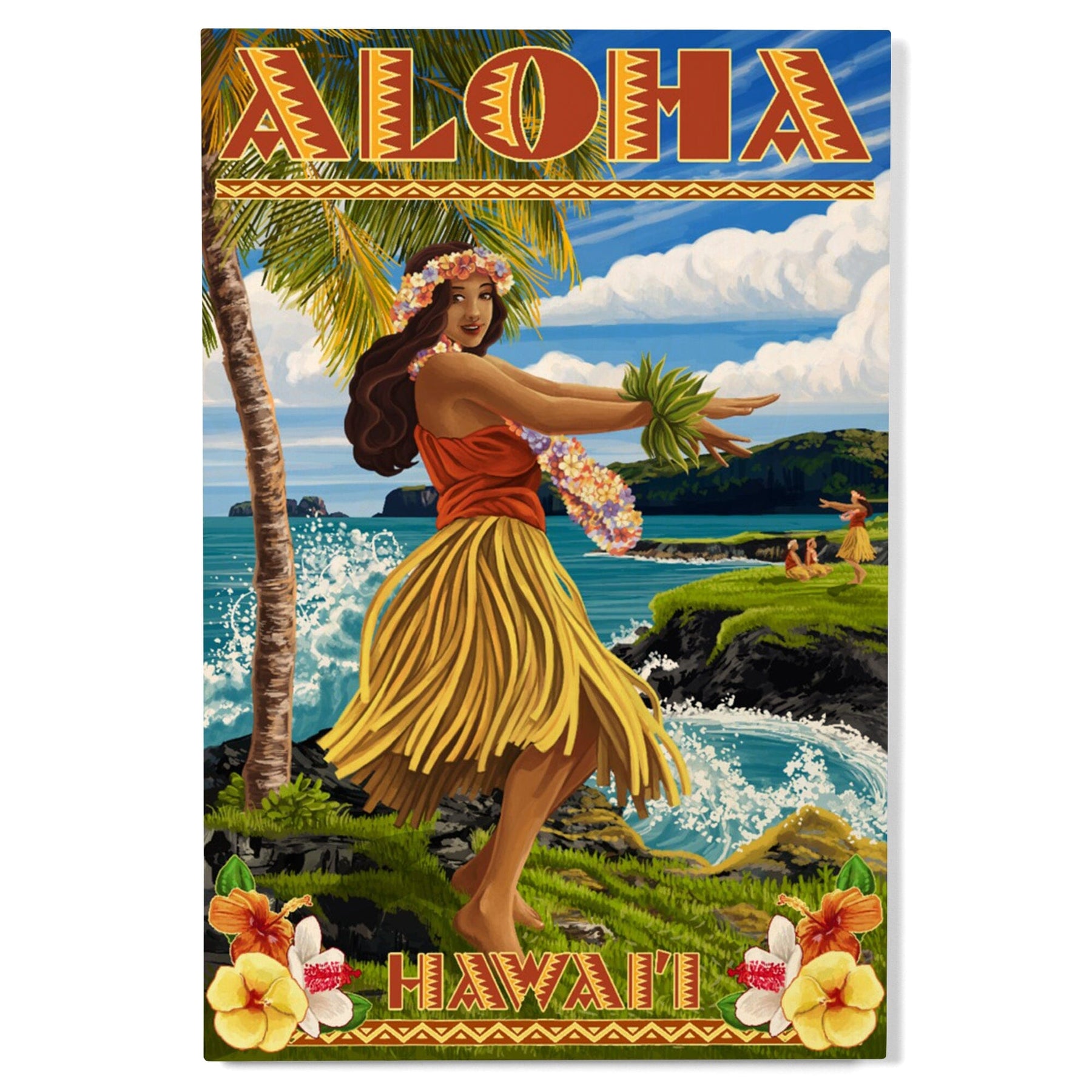 Hawaii, Aloha, Hula Girl on Coast (Flower Border), Lantern Press Artwork, Wood Signs and Postcards