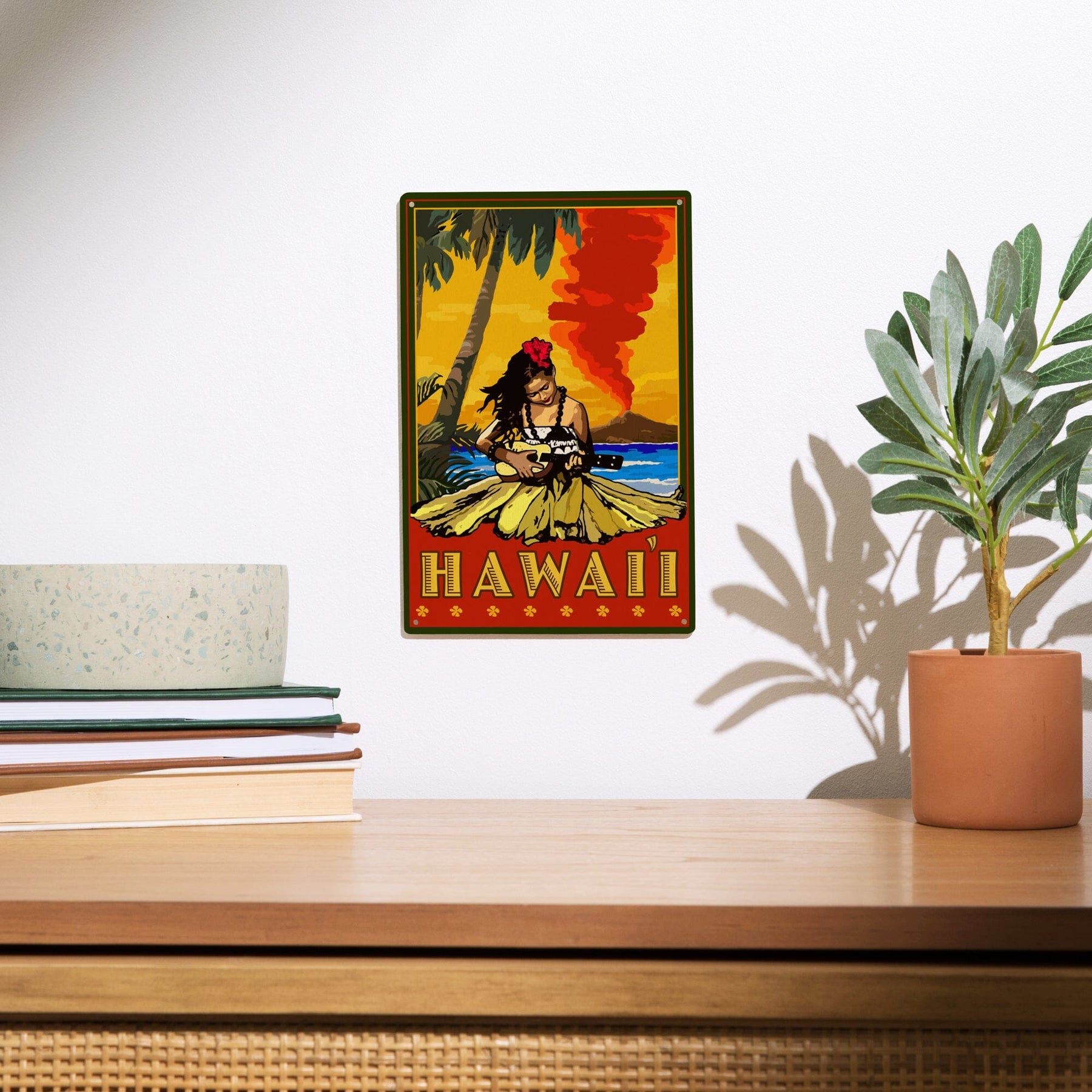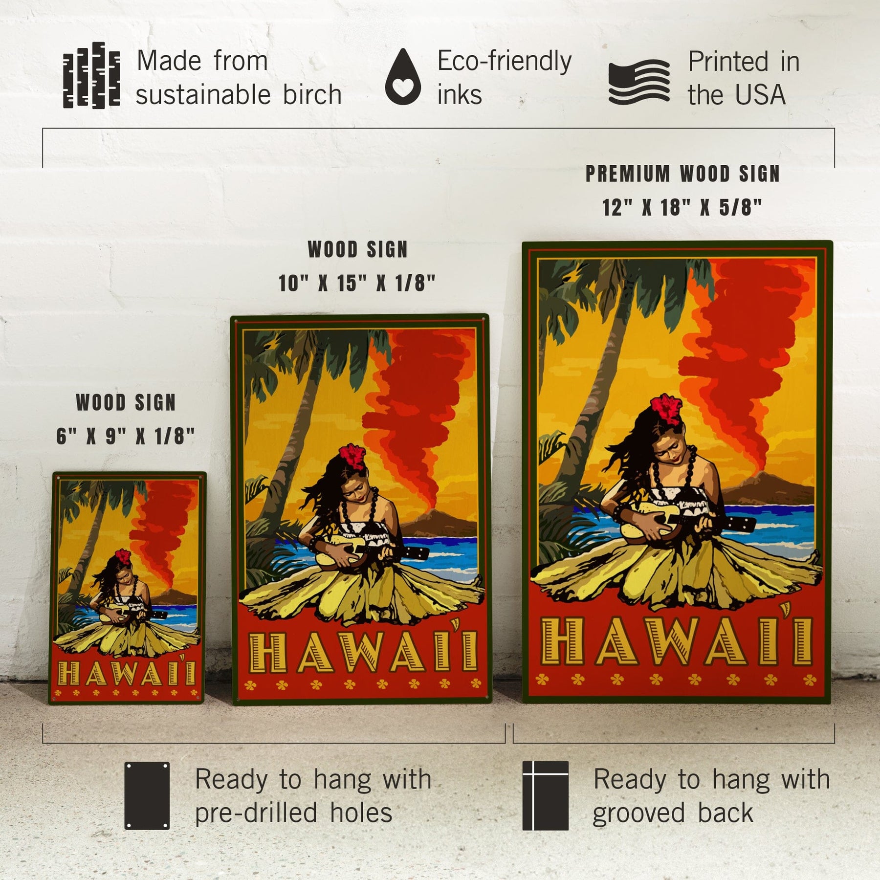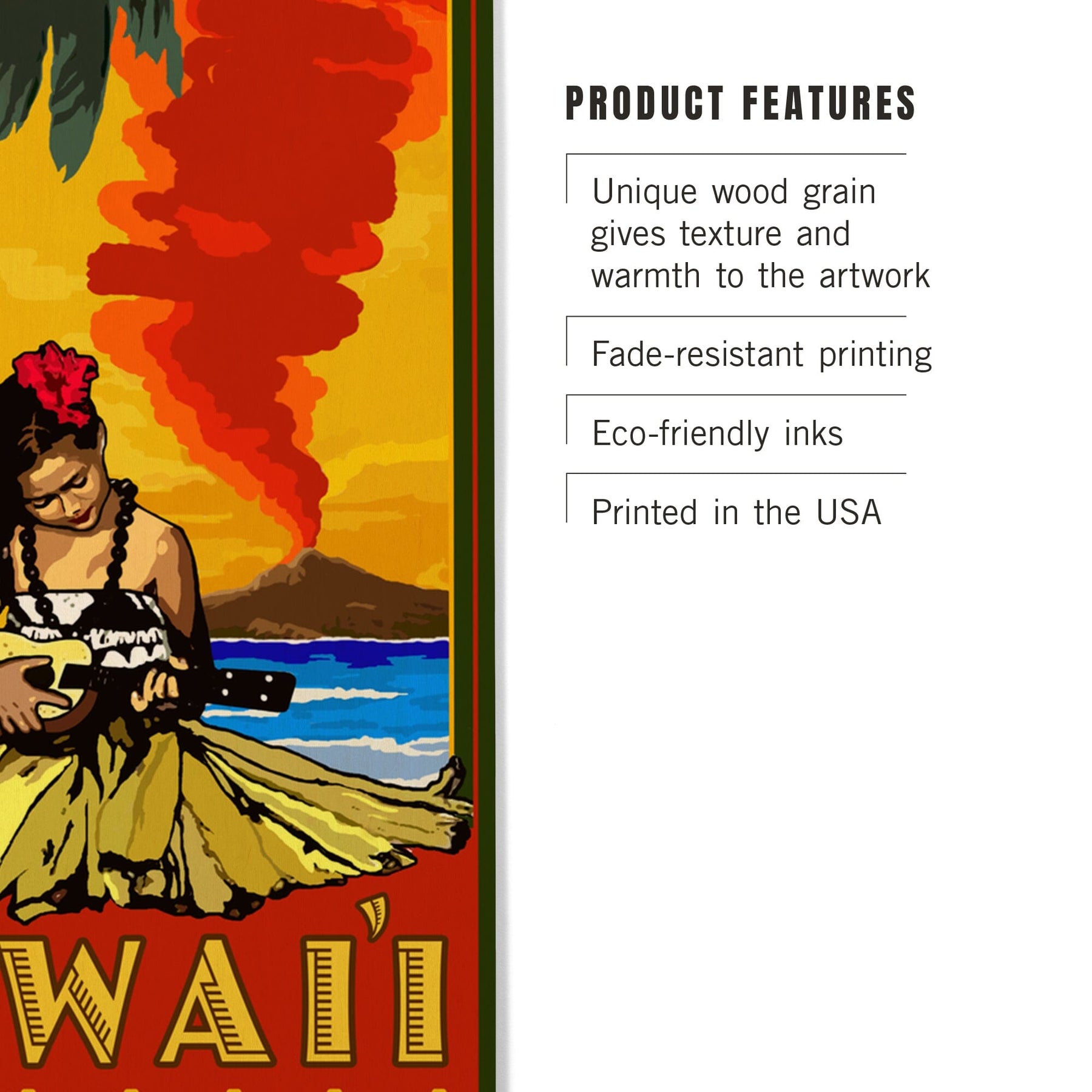 Hawaii, Hula Girl & Ukulele, Lantern Press Artwork, Wood Signs and Postcards