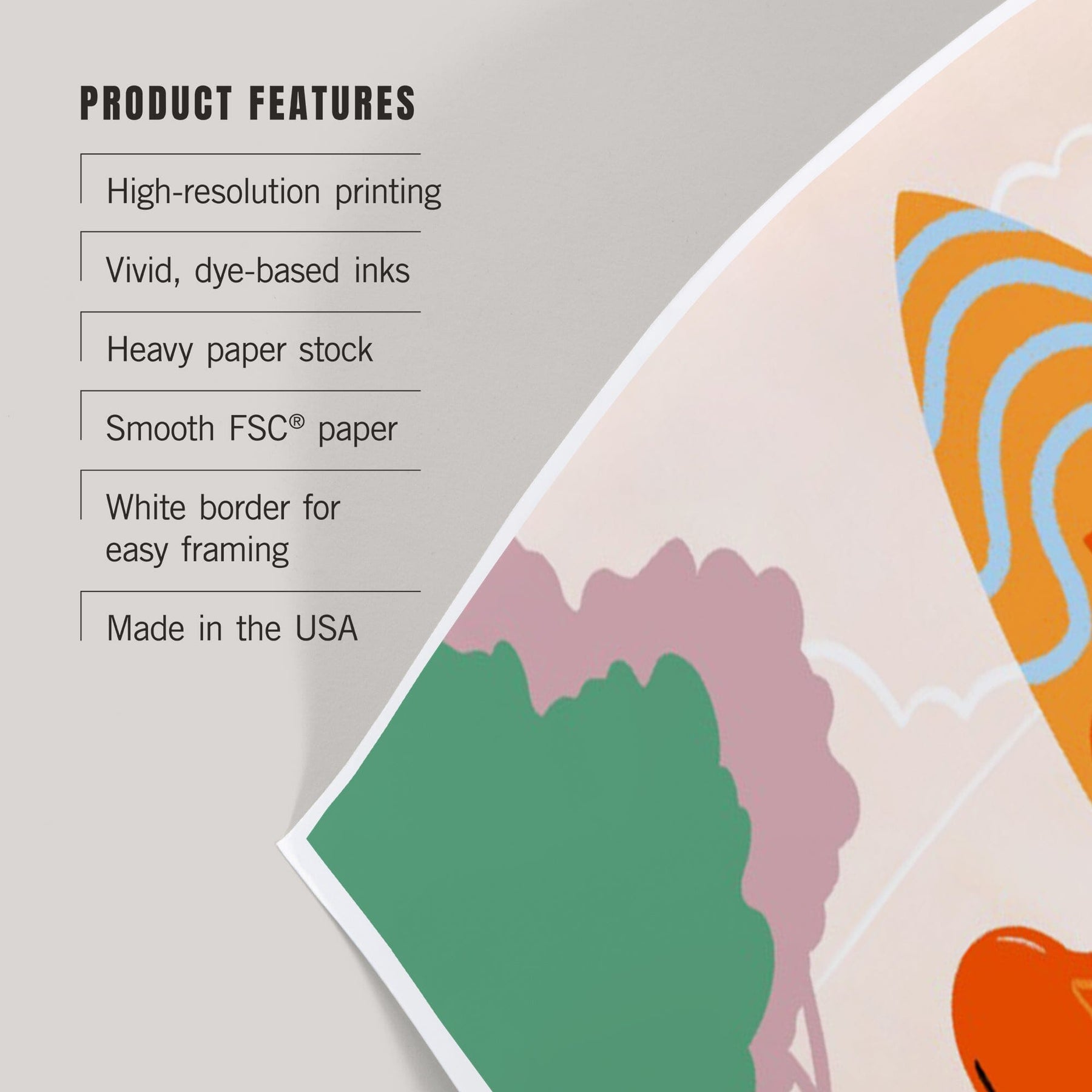 • Art prints include white borders along all edges of at least 1/4 inch