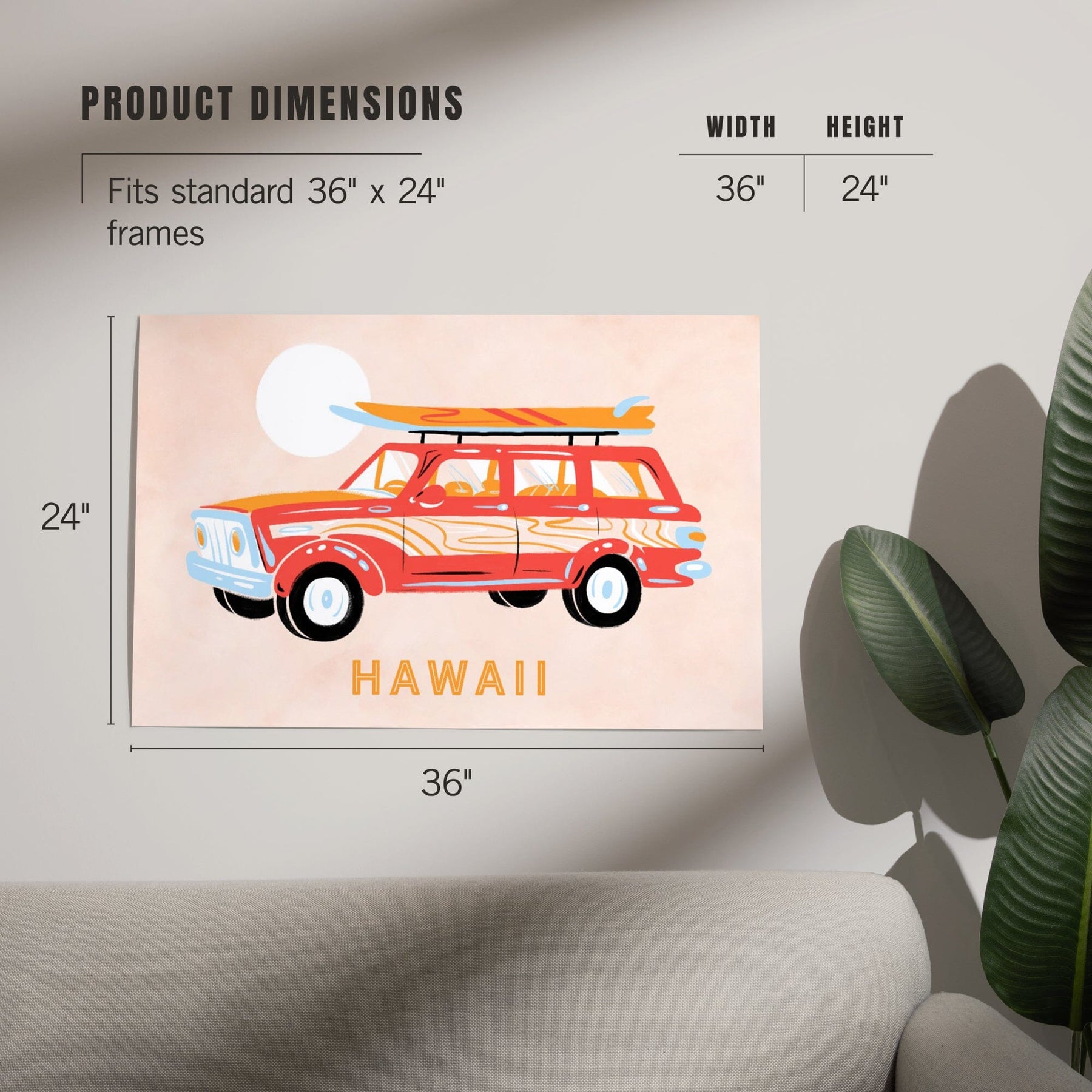 Hawaii, Secret Surf Spot Collection, Woody Wagon and Surfboards, Art & Giclee Prints - Lantern Press