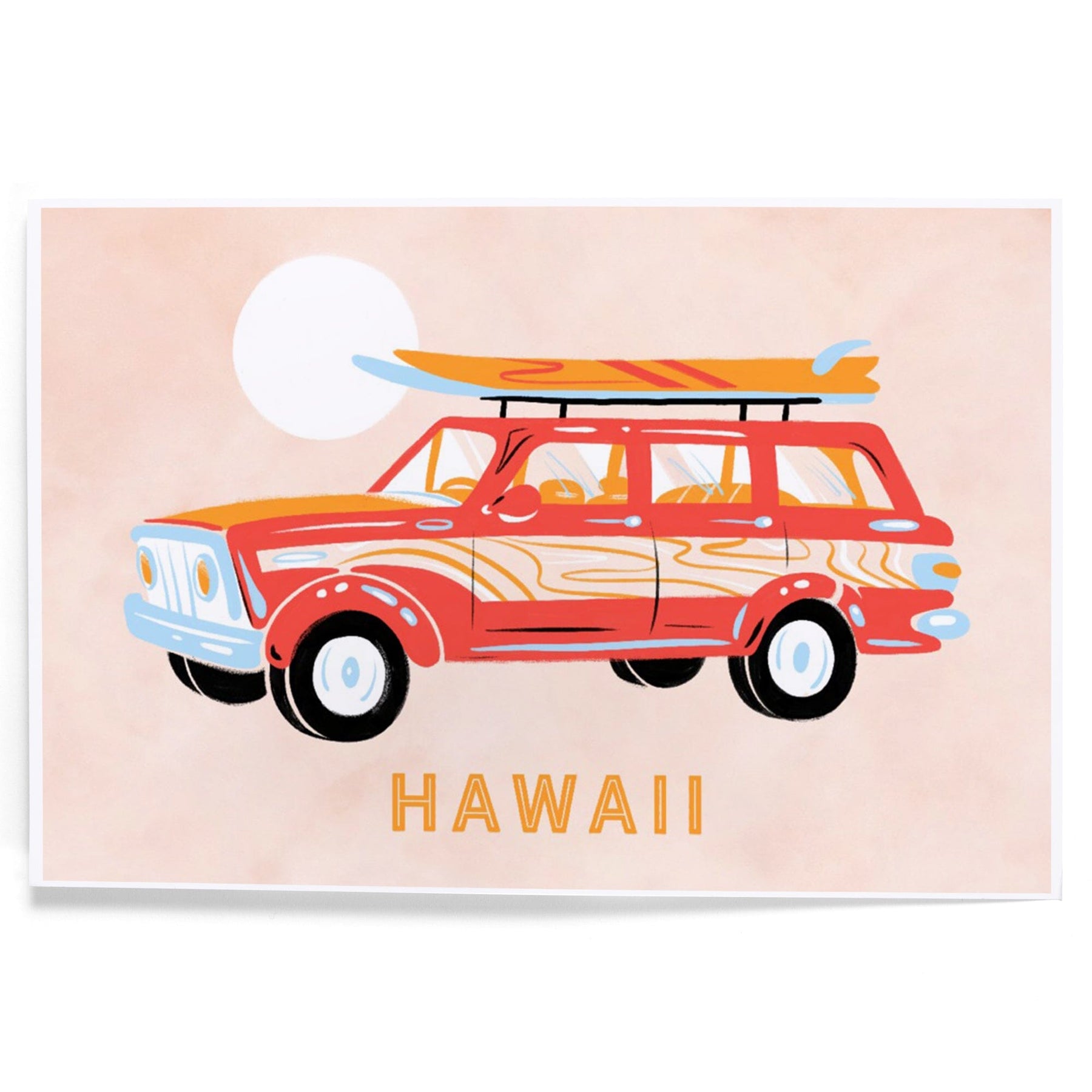 Hawaii, Secret Surf Spot Collection, Woody Wagon and Surfboards, Art & Giclee Prints