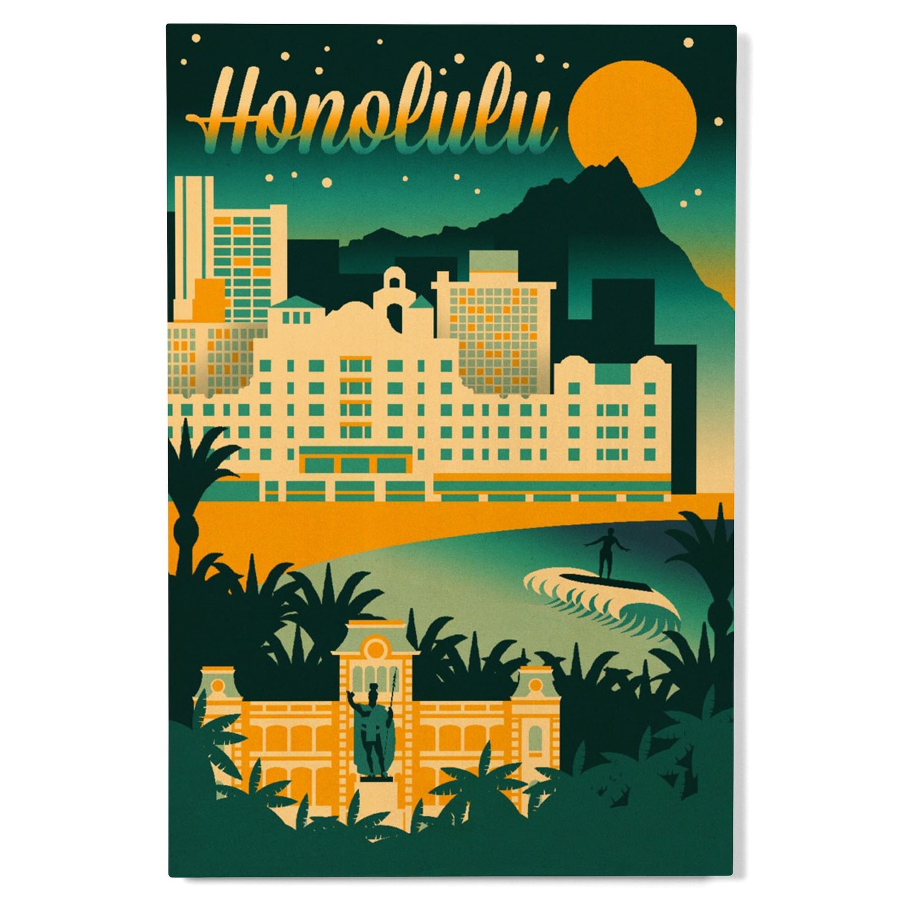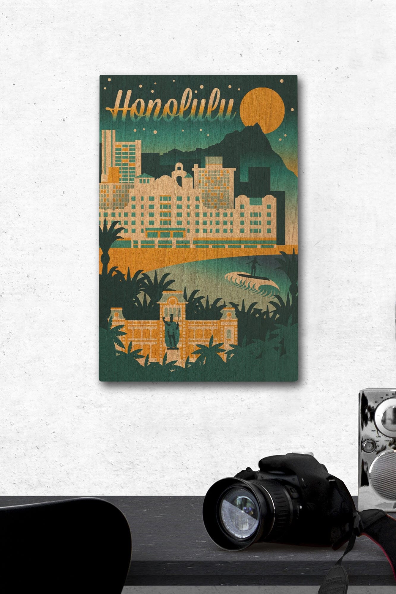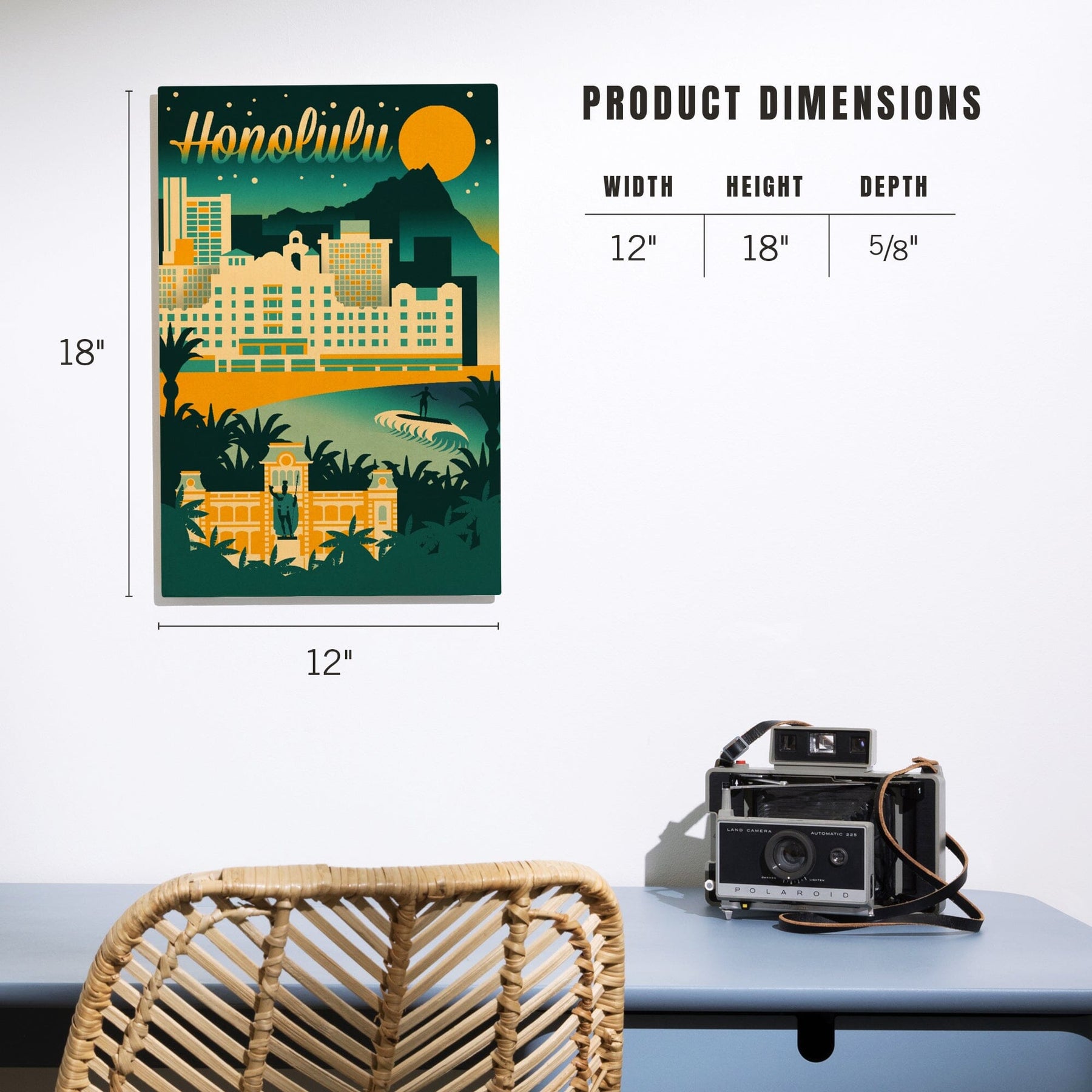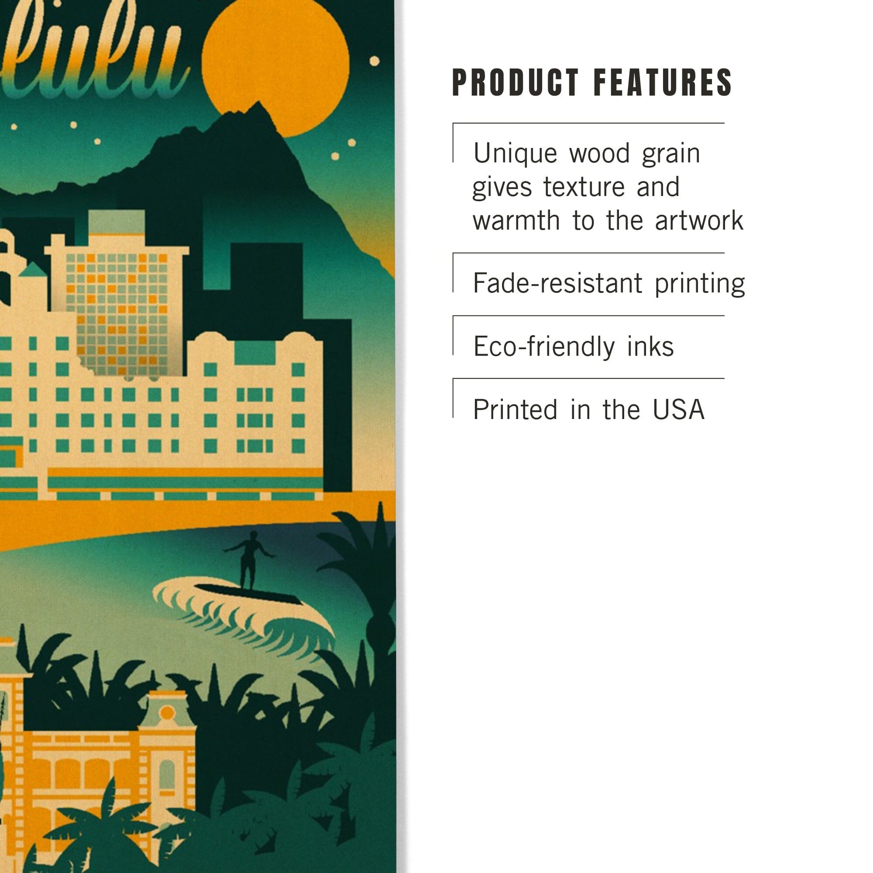 Honolulu, Hawaii, Retro Skyline Chromatic Series, Lantern Press Artwork, Wood Signs and Postcards