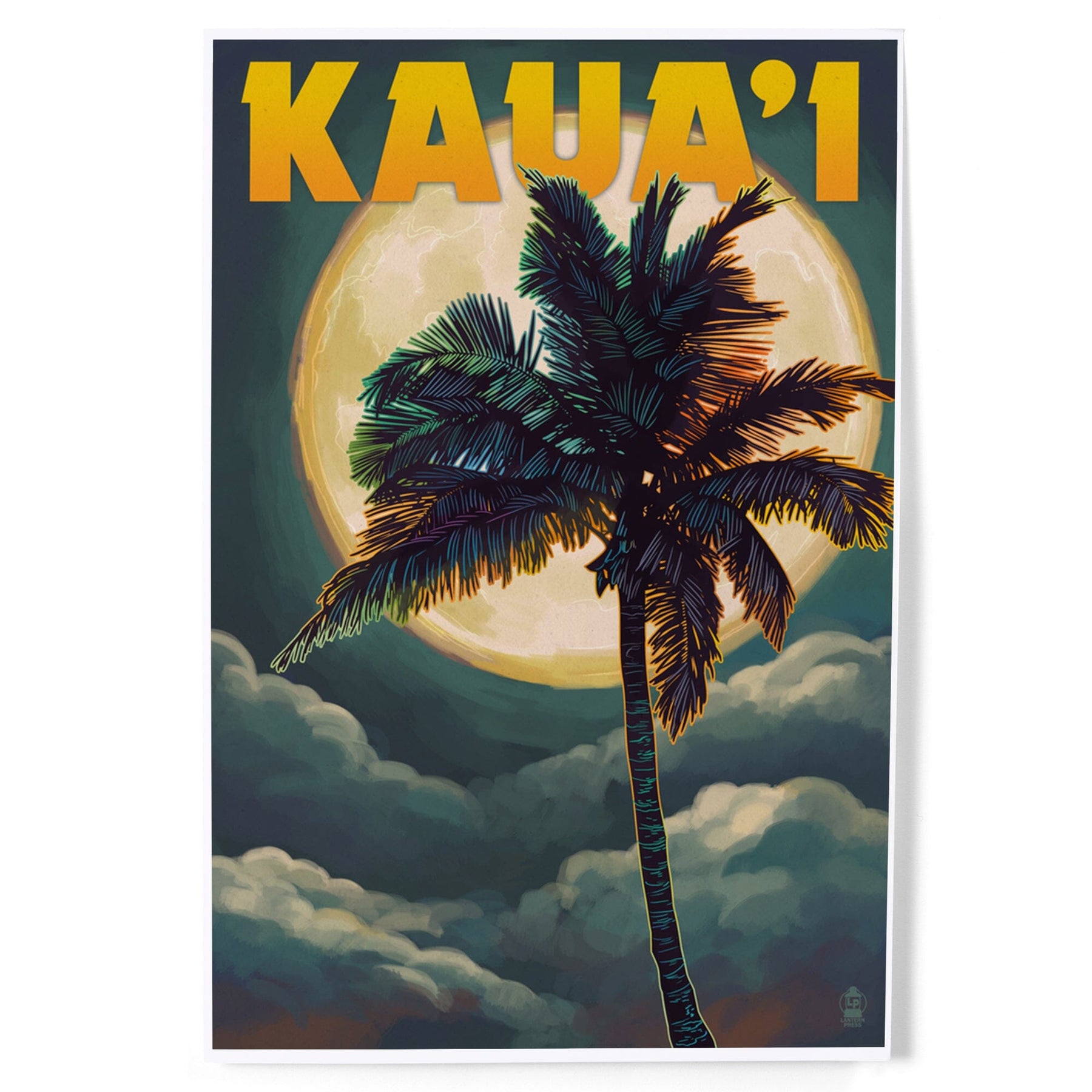Kaua'i, Hawaii, Palm and Moon, Art & Giclee Prints - Lantern Press