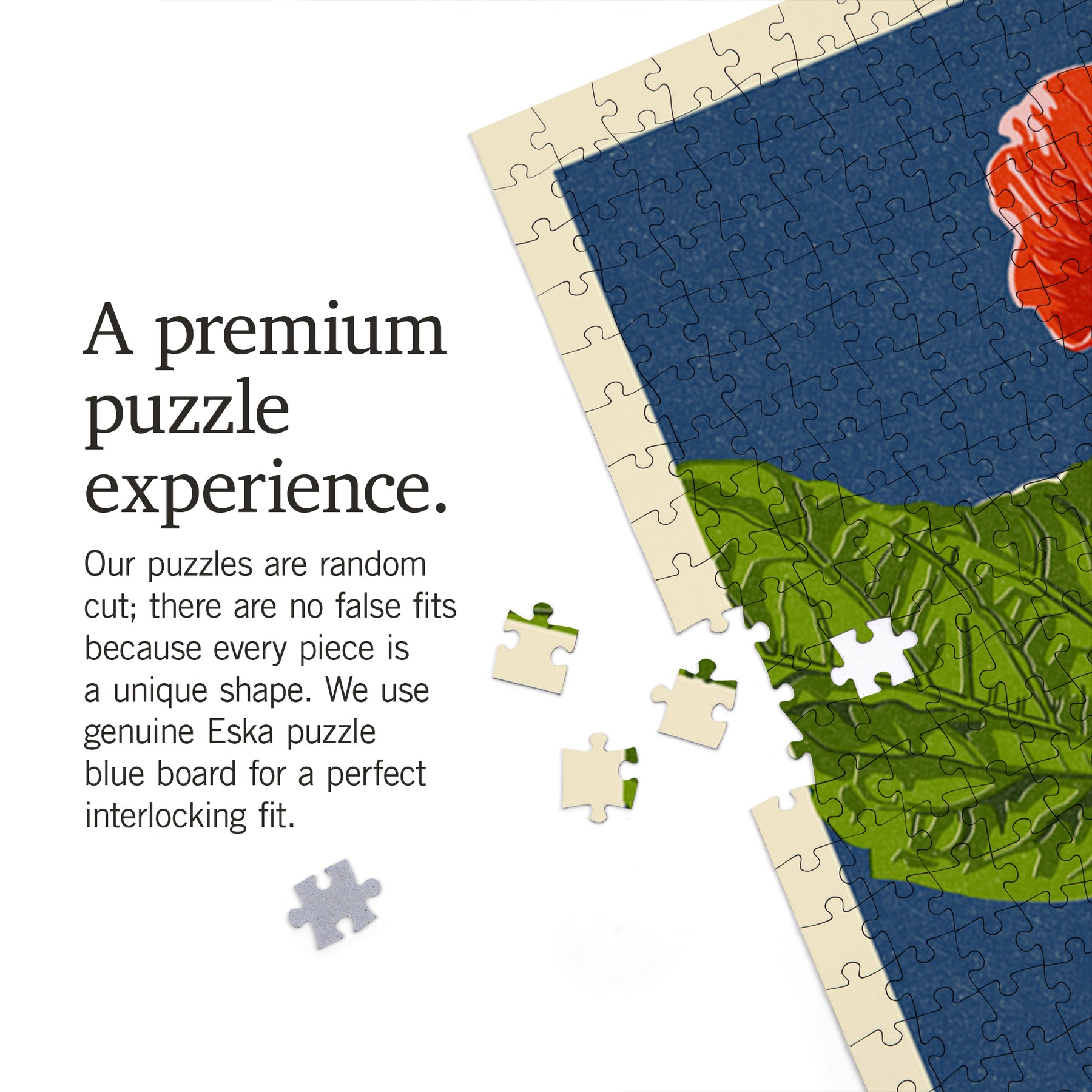 Kauai, Hawaii, Red Hibiscus, Letterpress, Jigsaw Puzzle