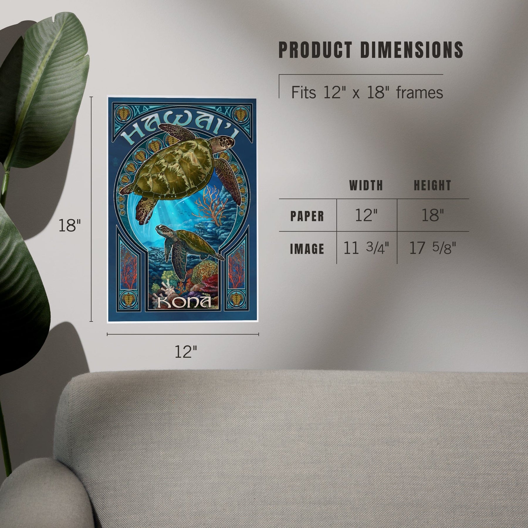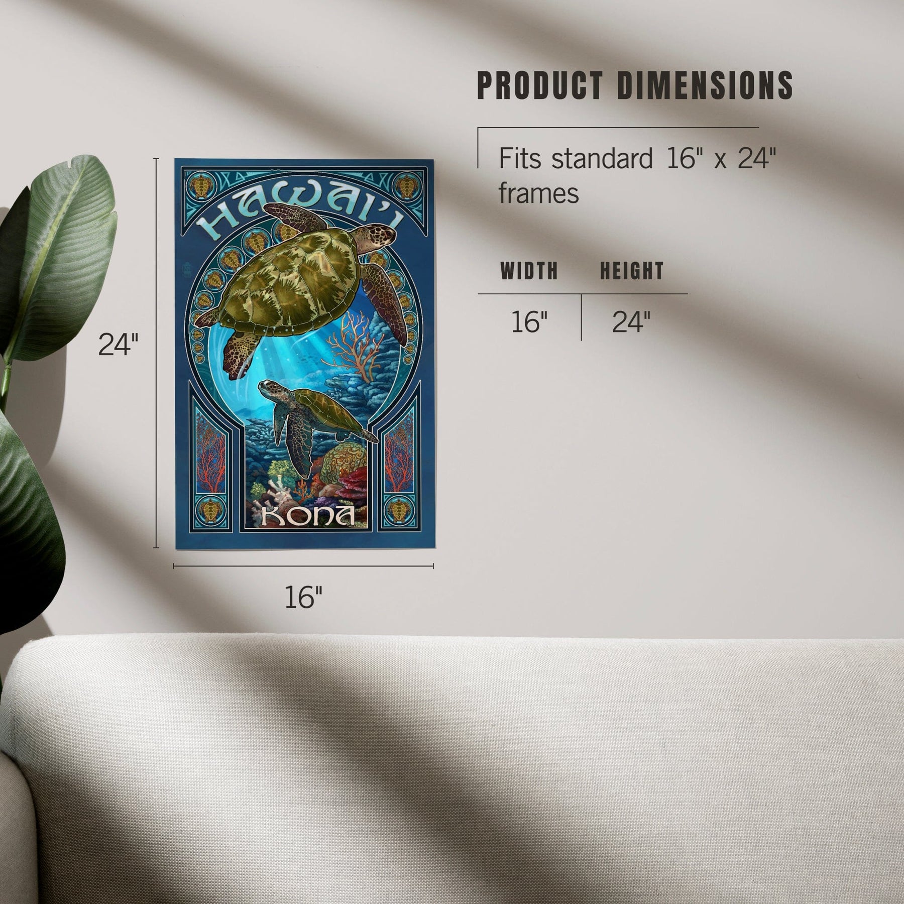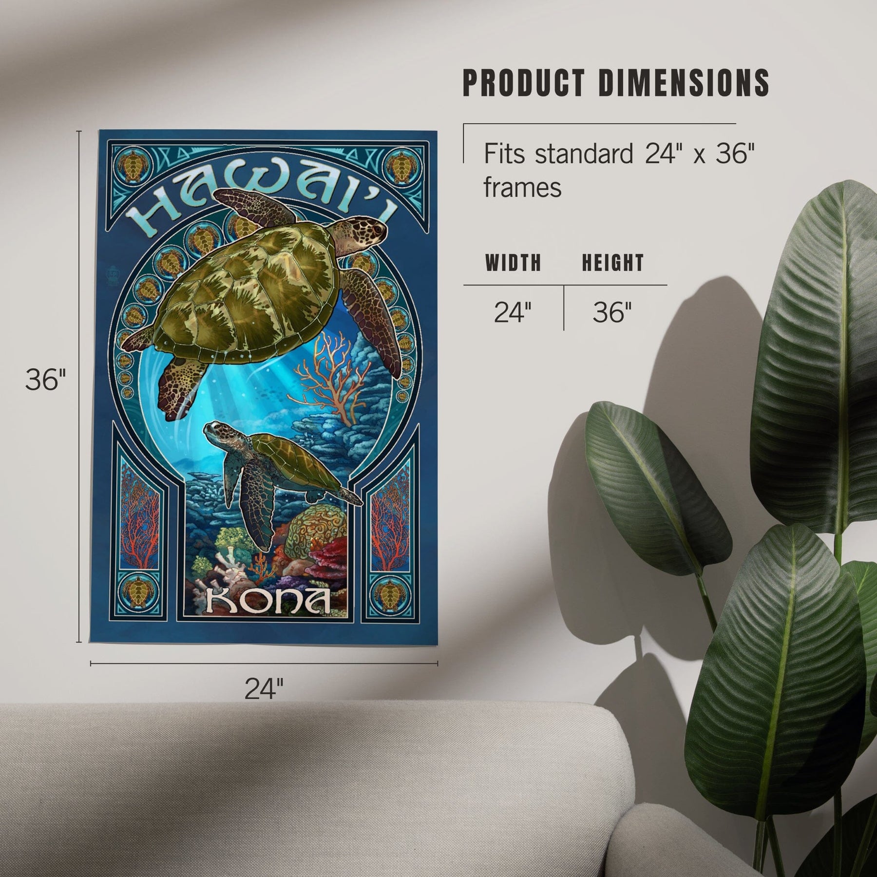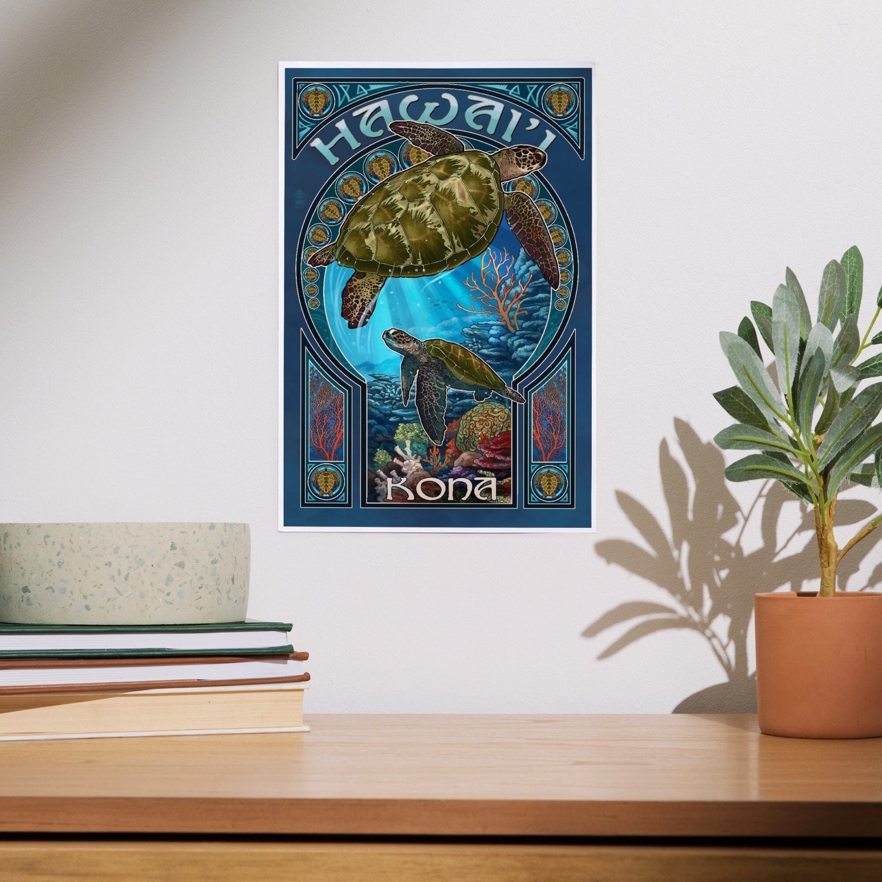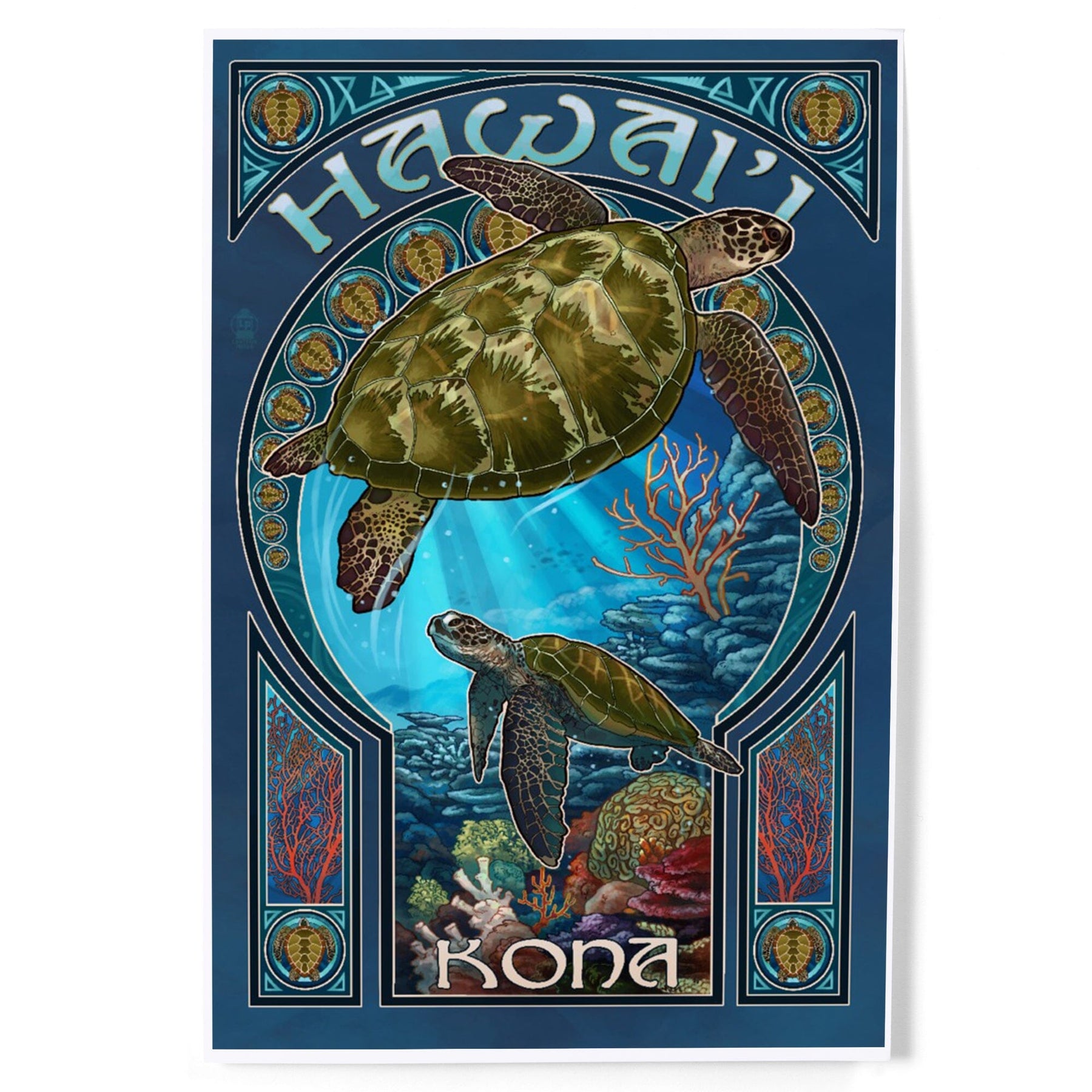 Kona, Hawaii, Sea Turtle Art Nouveau, Art & Giclee Prints