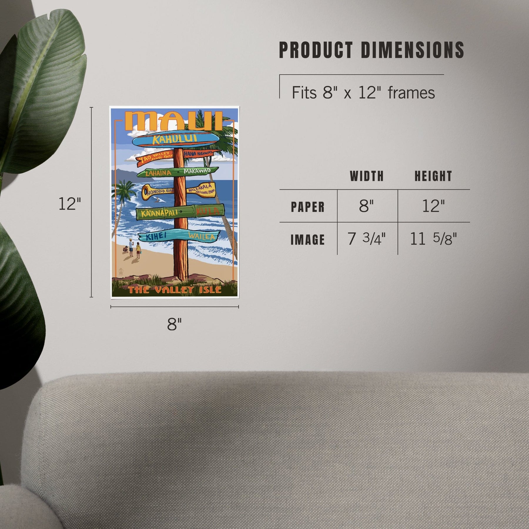 Maui, Hawaii, Destination Signpost, Art & Giclee Prints - Lantern Press