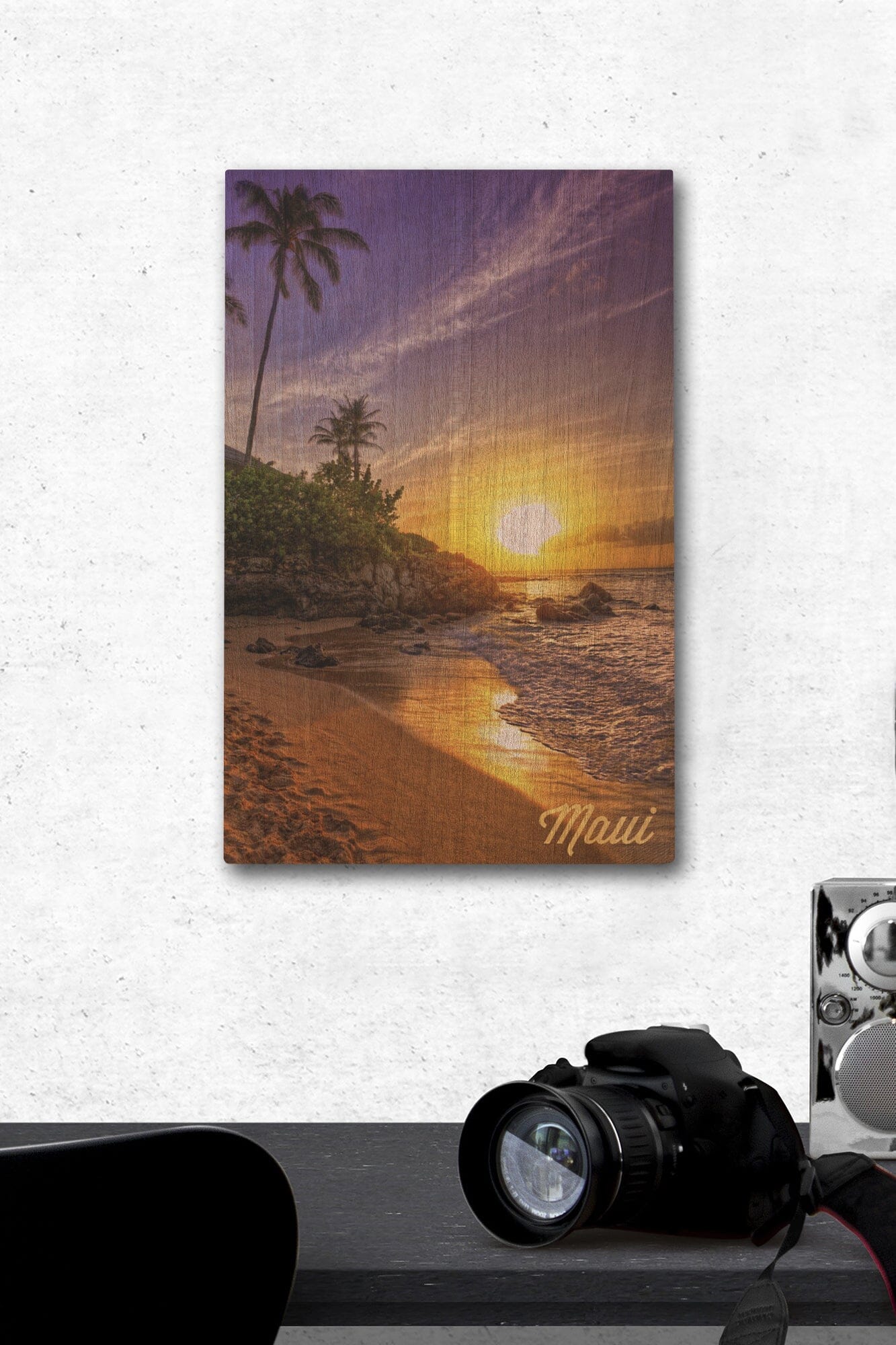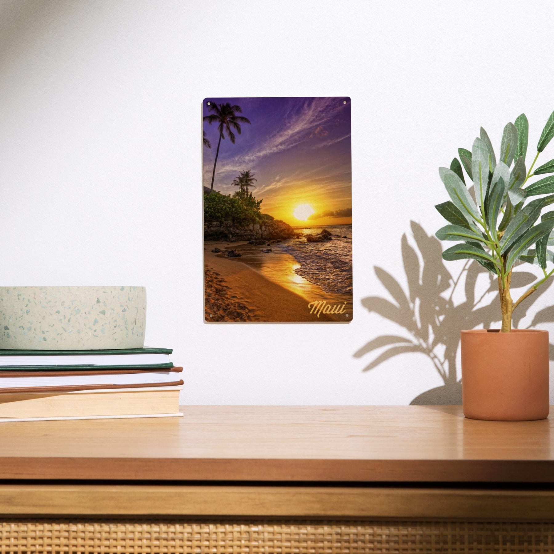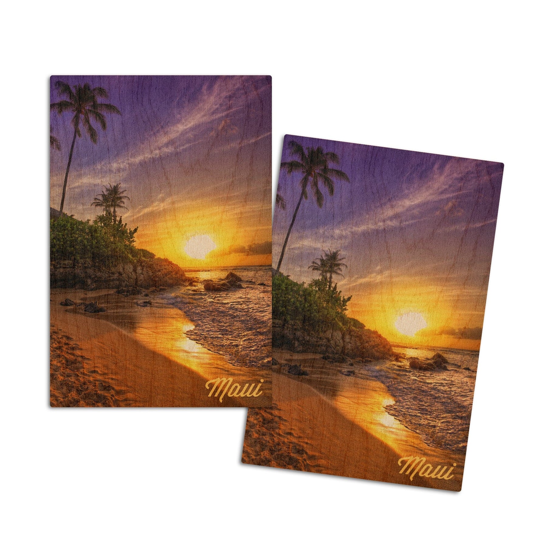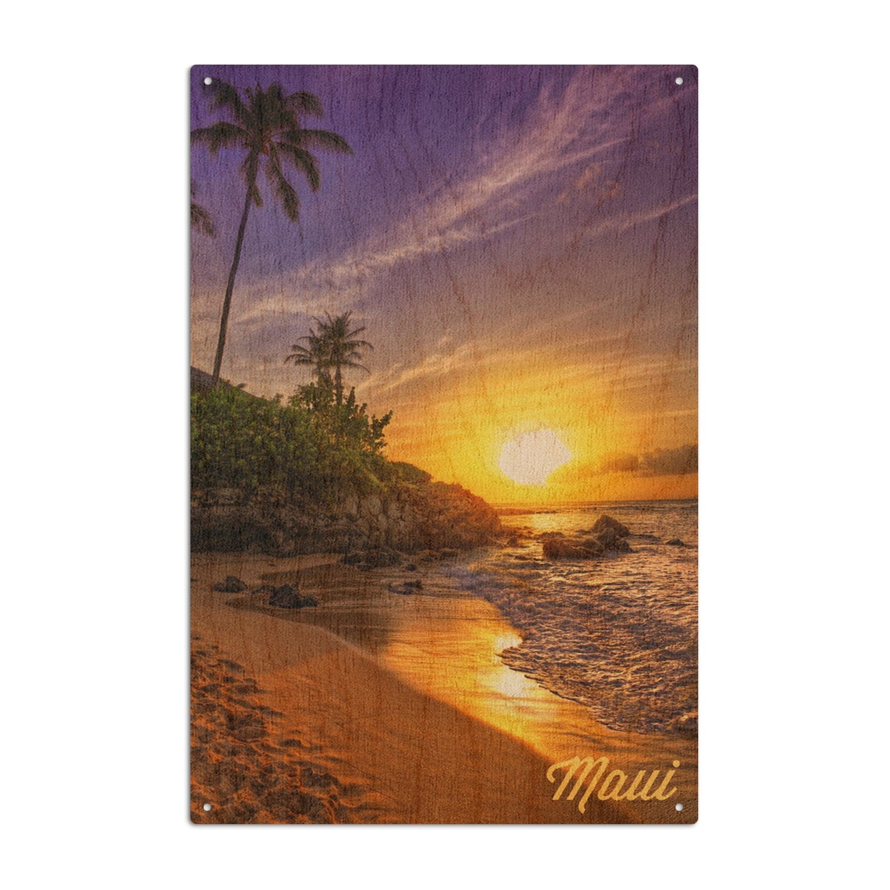 Maui, Hawaii, Sunset & Palm, Lantern Press Photography, Wood Signs and Postcards