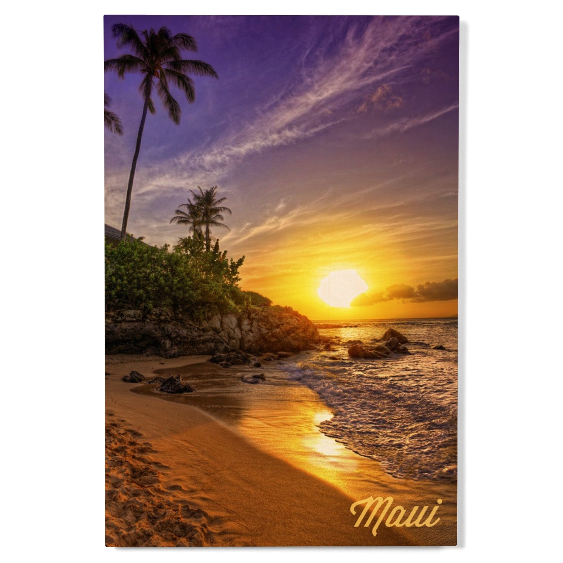 Maui, Hawaii, Sunset & Palm, Lantern Press Photography, Wood Signs and Postcards - Lantern Press