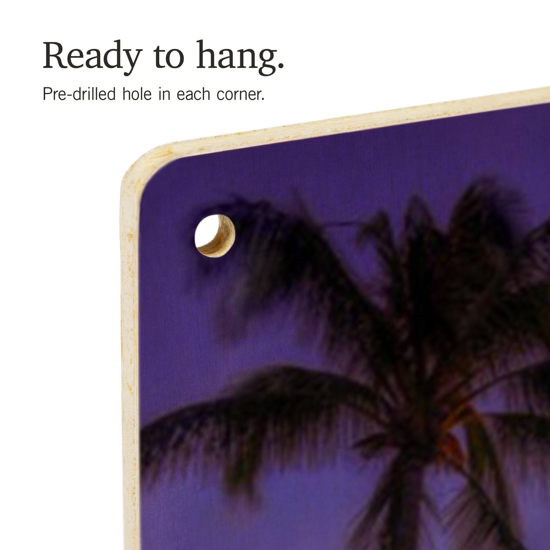• Hole in each corner, ready to hang