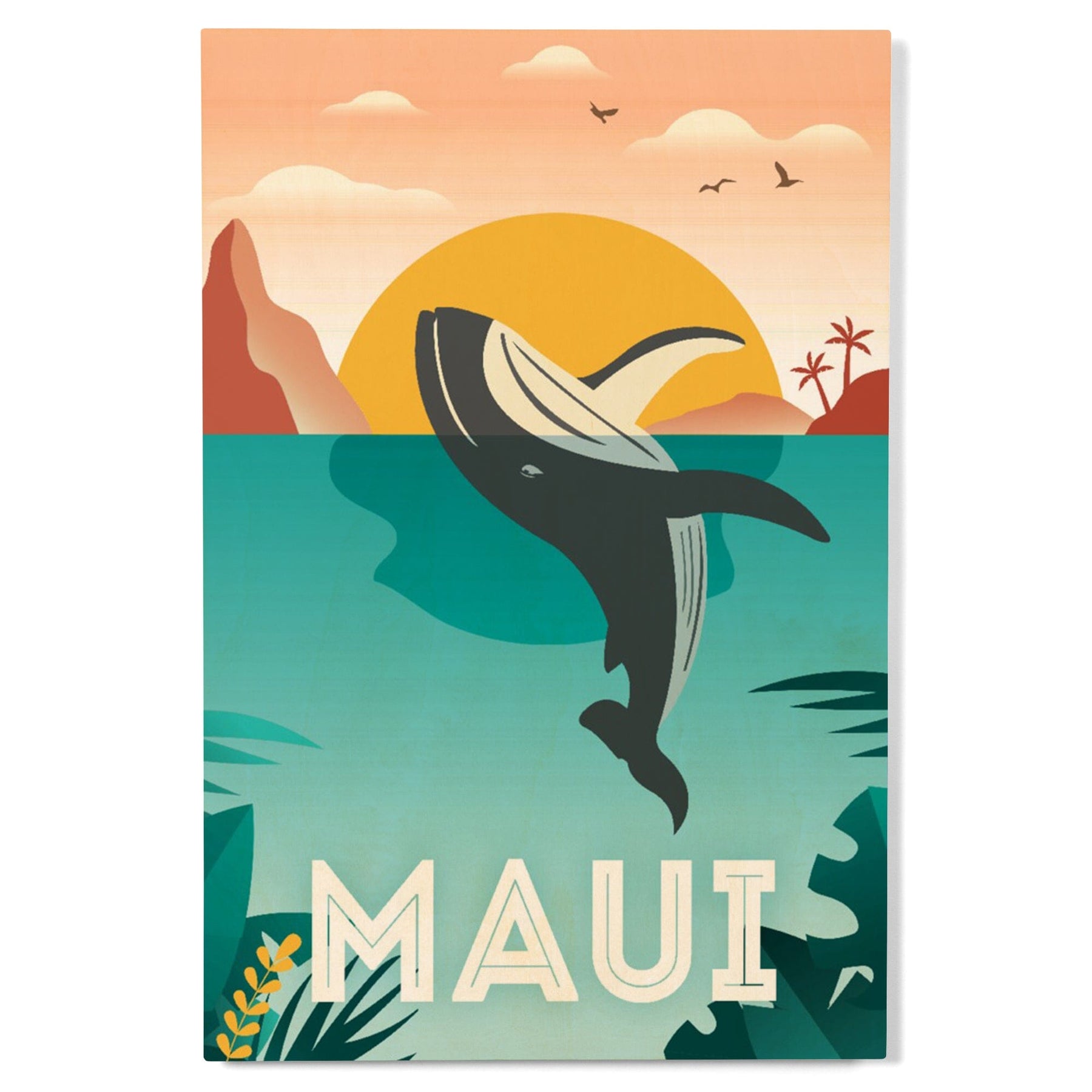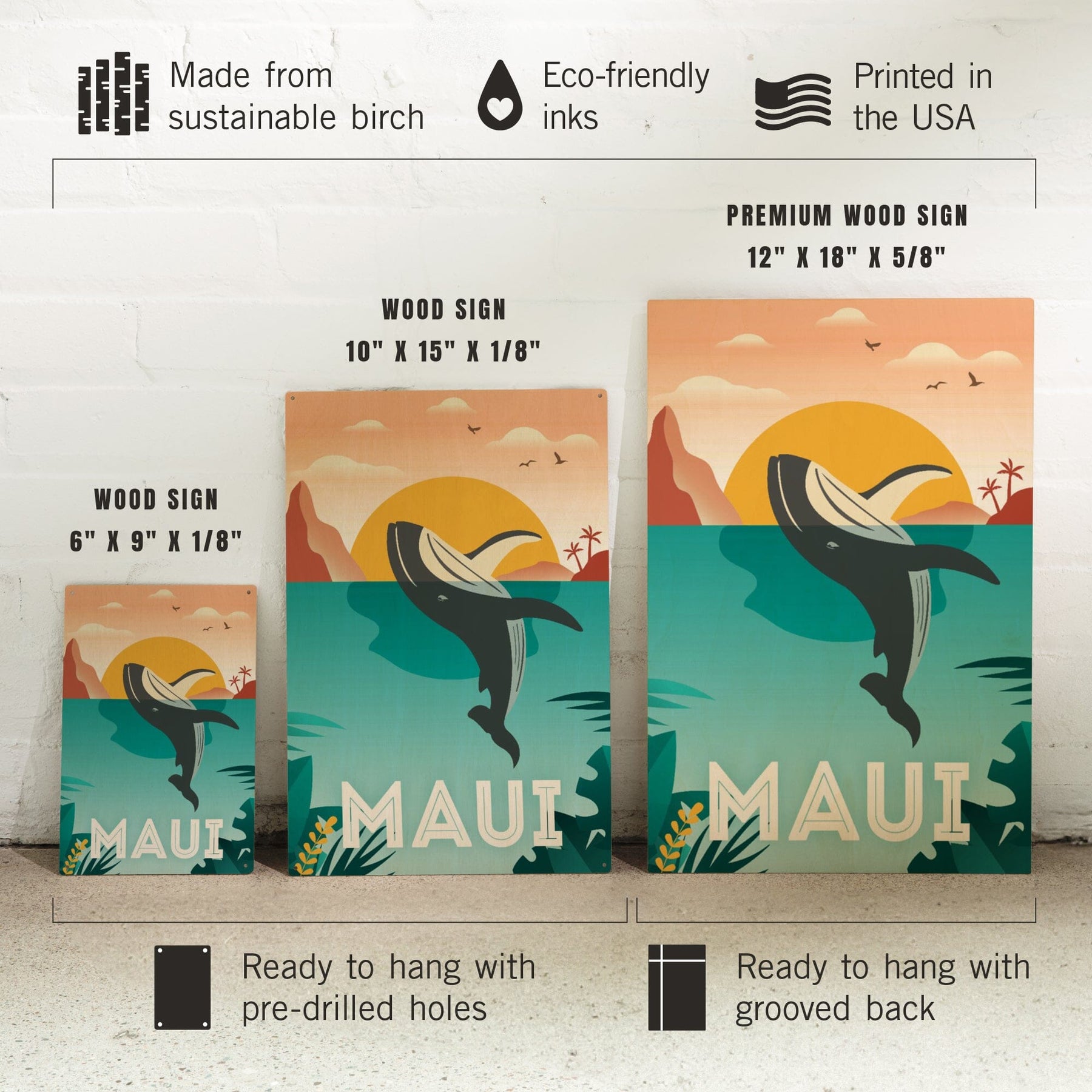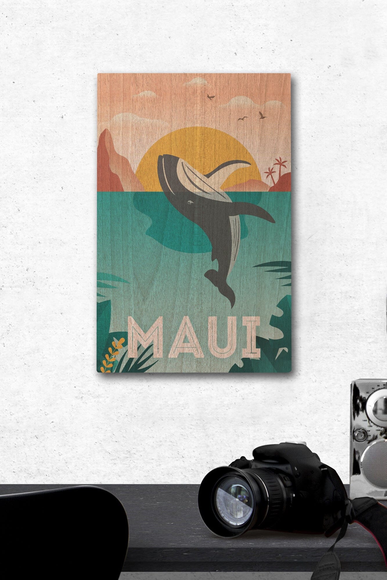 Maui, Hawaii, Whale & Tropical Sunset, Vector, Lantern Press Artwork, Wood Signs and Postcards