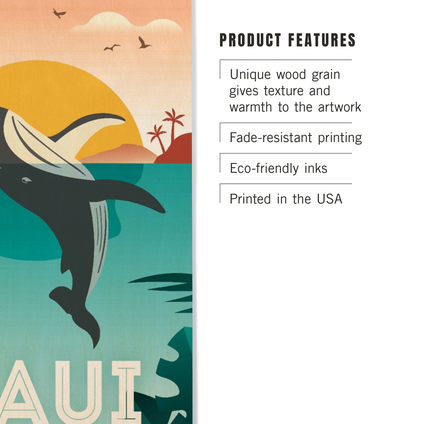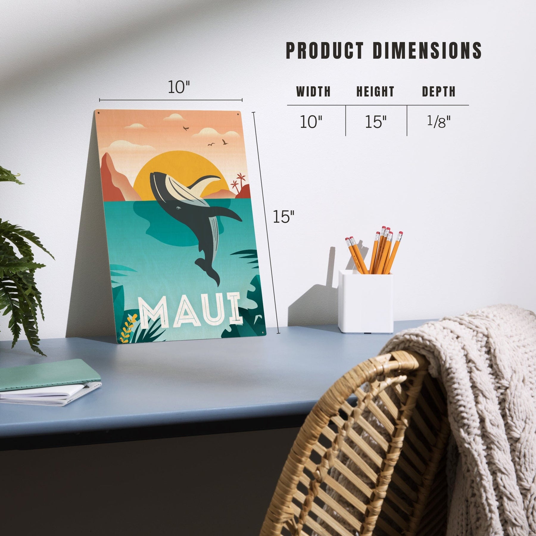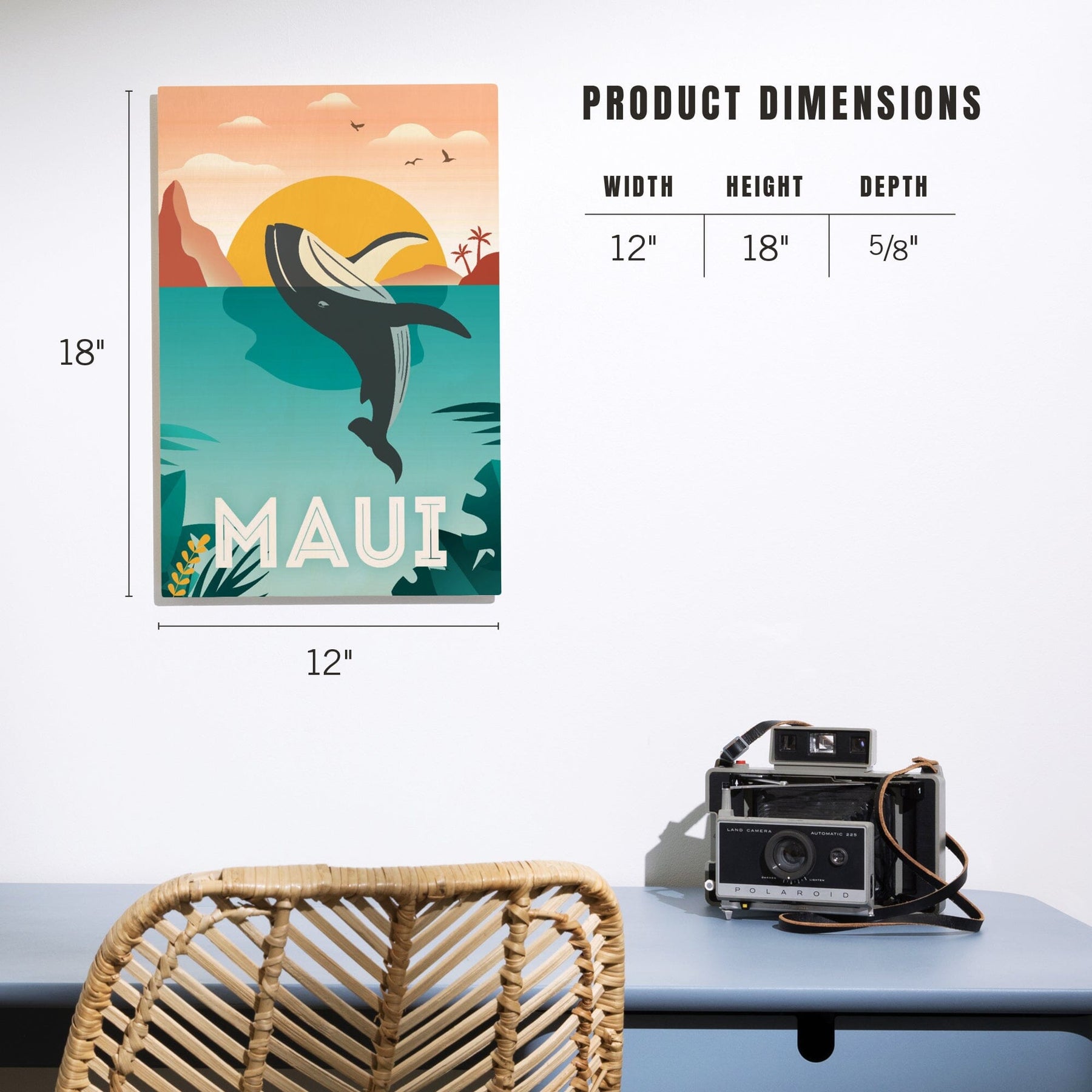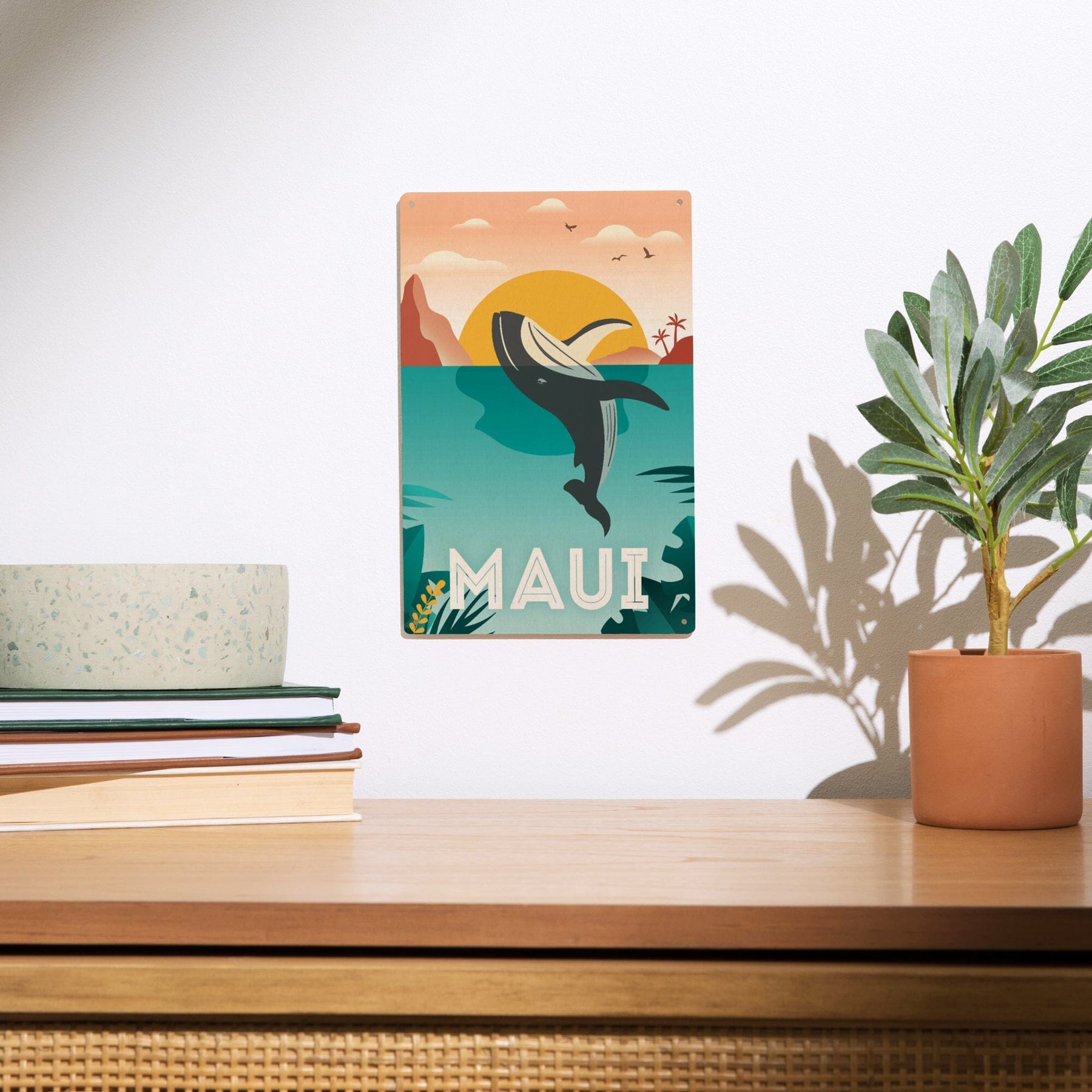 Maui, Hawaii, Whale & Tropical Sunset, Vector, Lantern Press Artwork, Wood Signs and Postcards