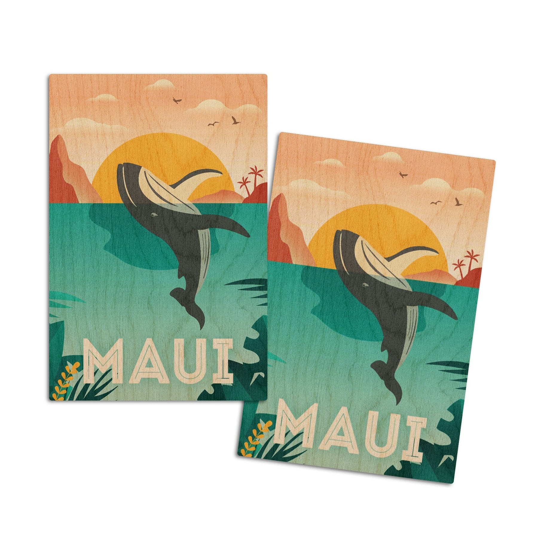 Maui, Hawaii, Whale & Tropical Sunset, Vector, Lantern Press Artwork, Wood Signs and Postcards - Lantern Press