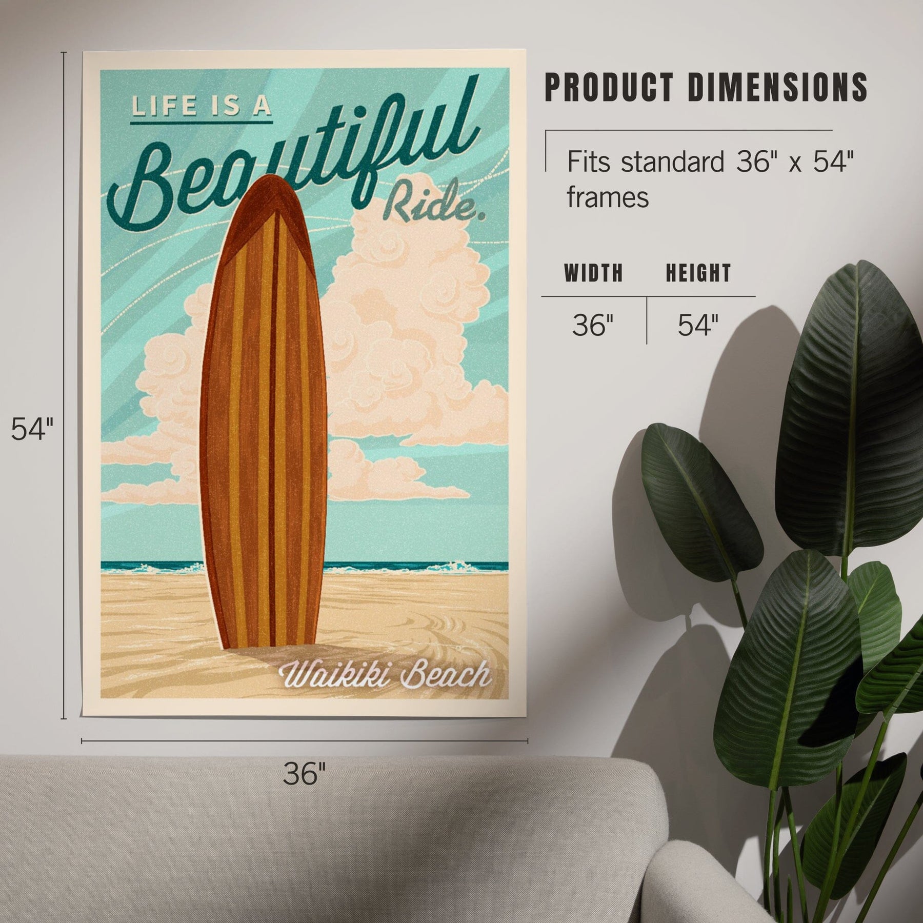 Waikiki, Hawaii, Life is a Beautiful Ride, Surfboard, Letterpress, Art & Giclee Prints Art Lantern Press