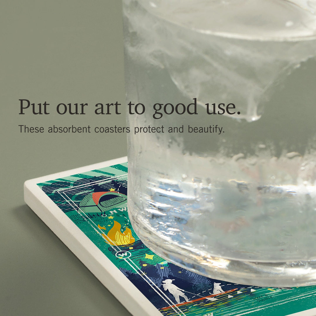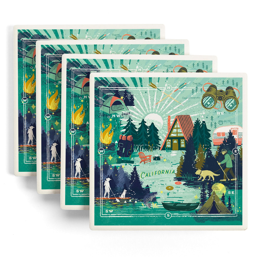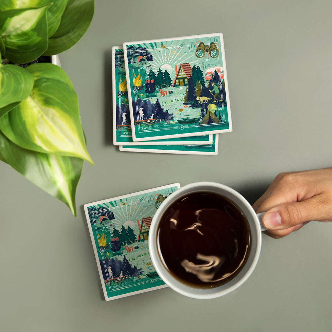 California, Lake Life Series, Collage, Landscape with Trees, Coasters Coasters Lantern Press