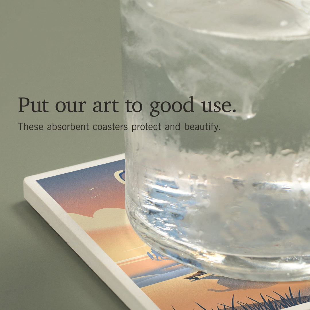 California, Lithograph, Enjoy the Ride, Longboards and Scooters, Coasters