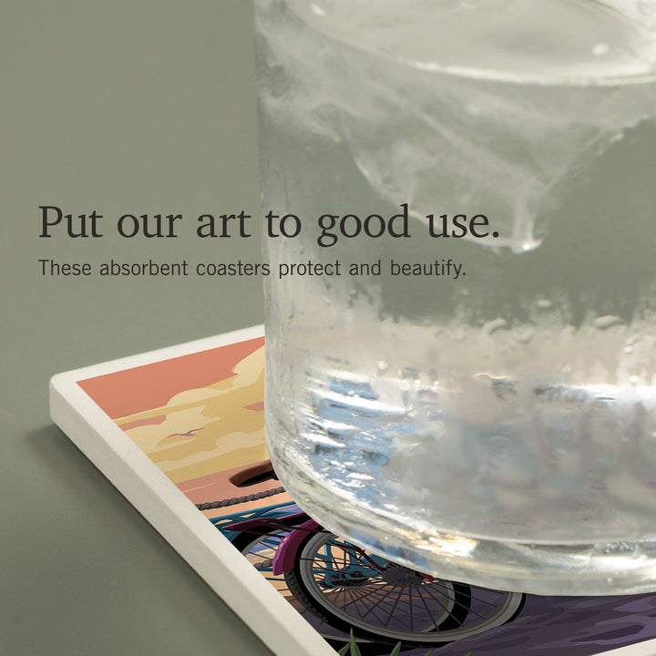 California, Painterly, The Beach Is Calling, Beach Bikes, Coasters Coasters Lantern Press