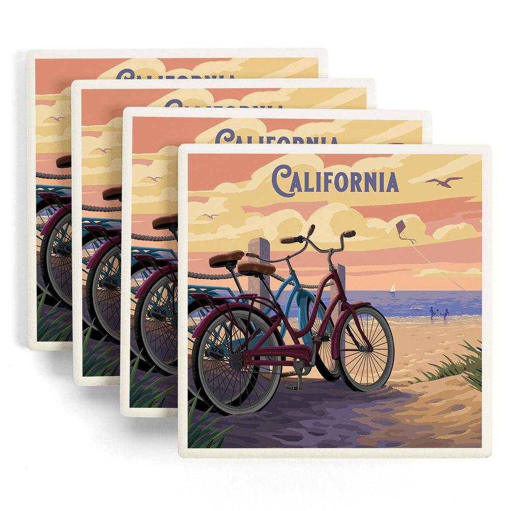 California, Painterly, The Beach Is Calling, Beach Bikes, Coasters